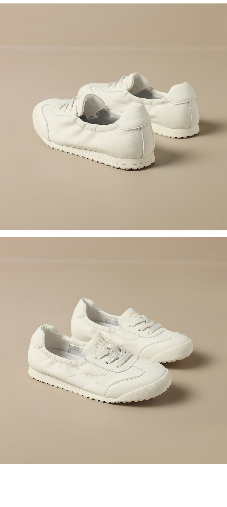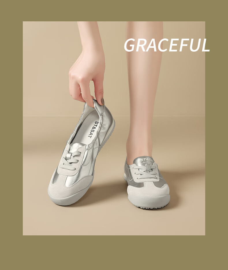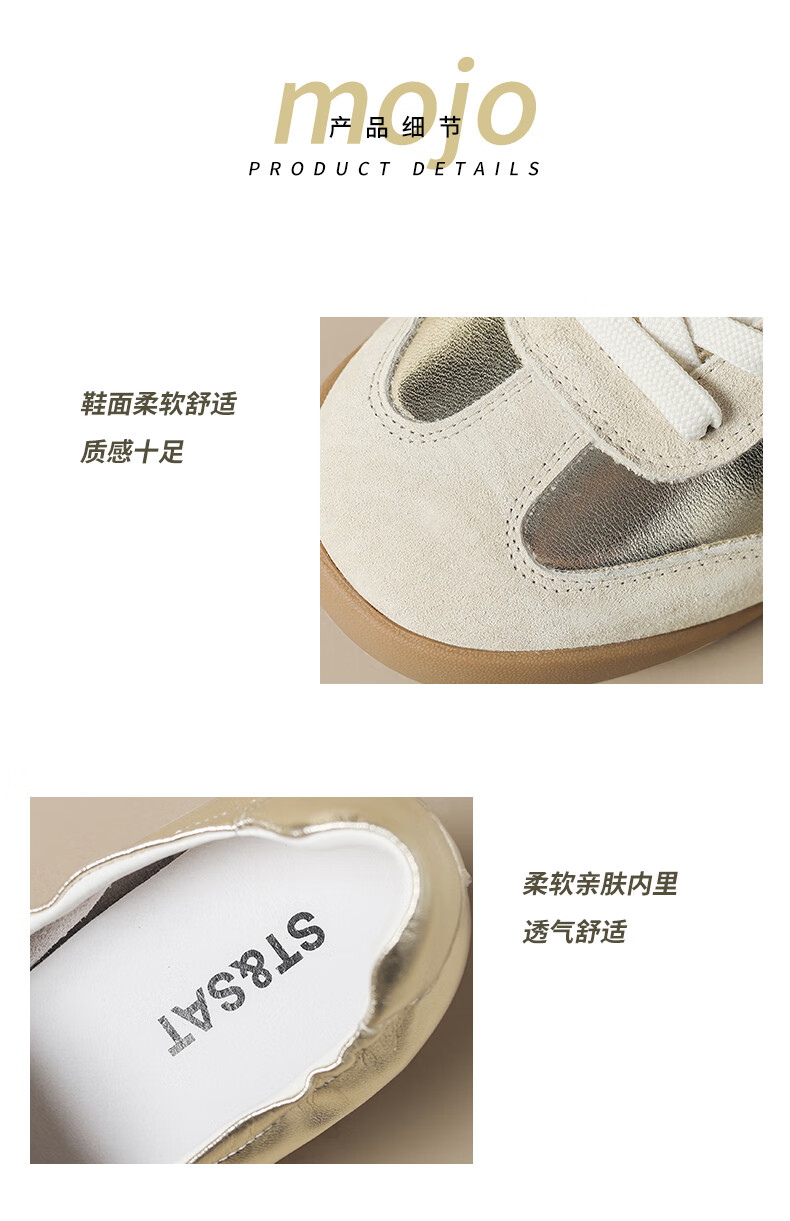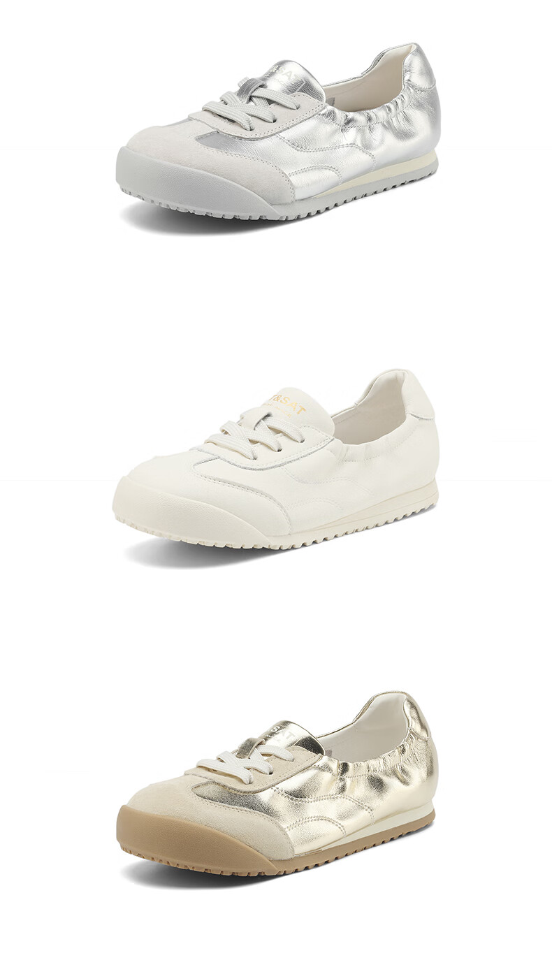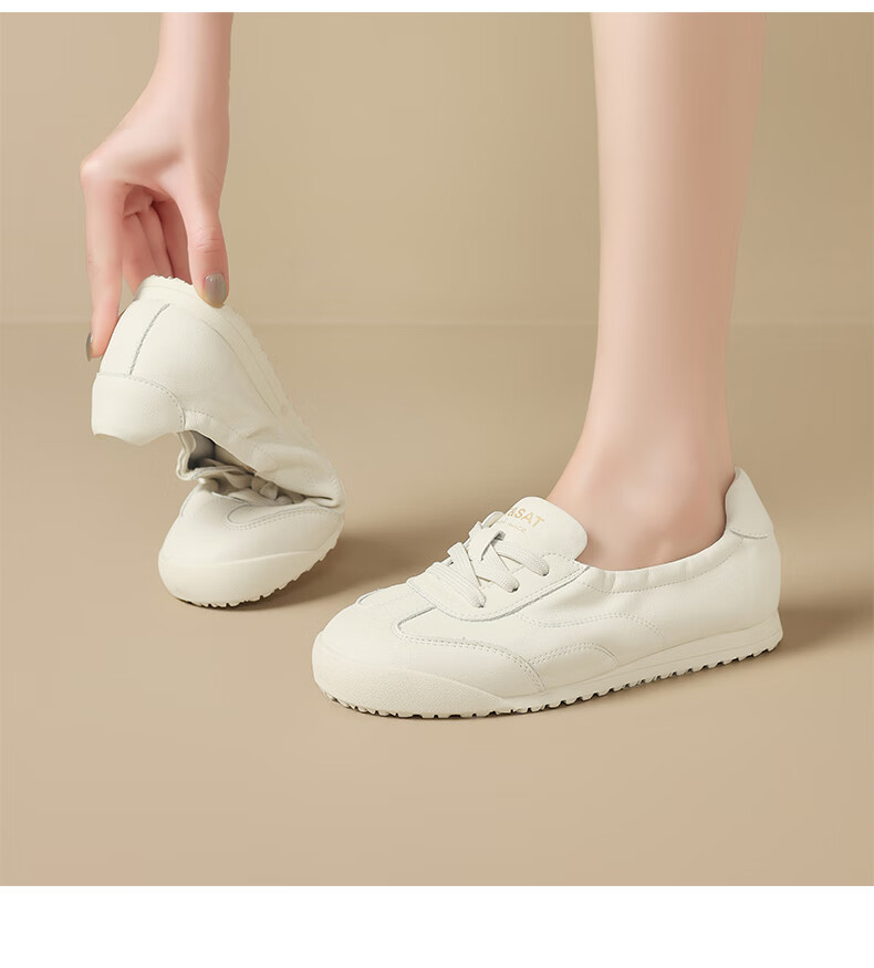 星期六(St&Sat)时尚软底撞色浅口德训鞋女友芭蕾鞋运动休闲轻奢鞋子SZSSD3111PGJ 米白色 36