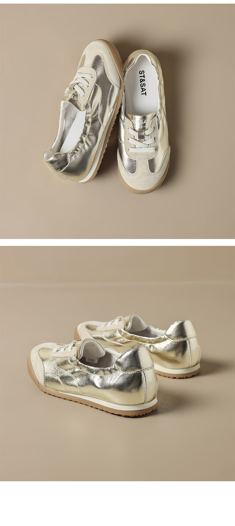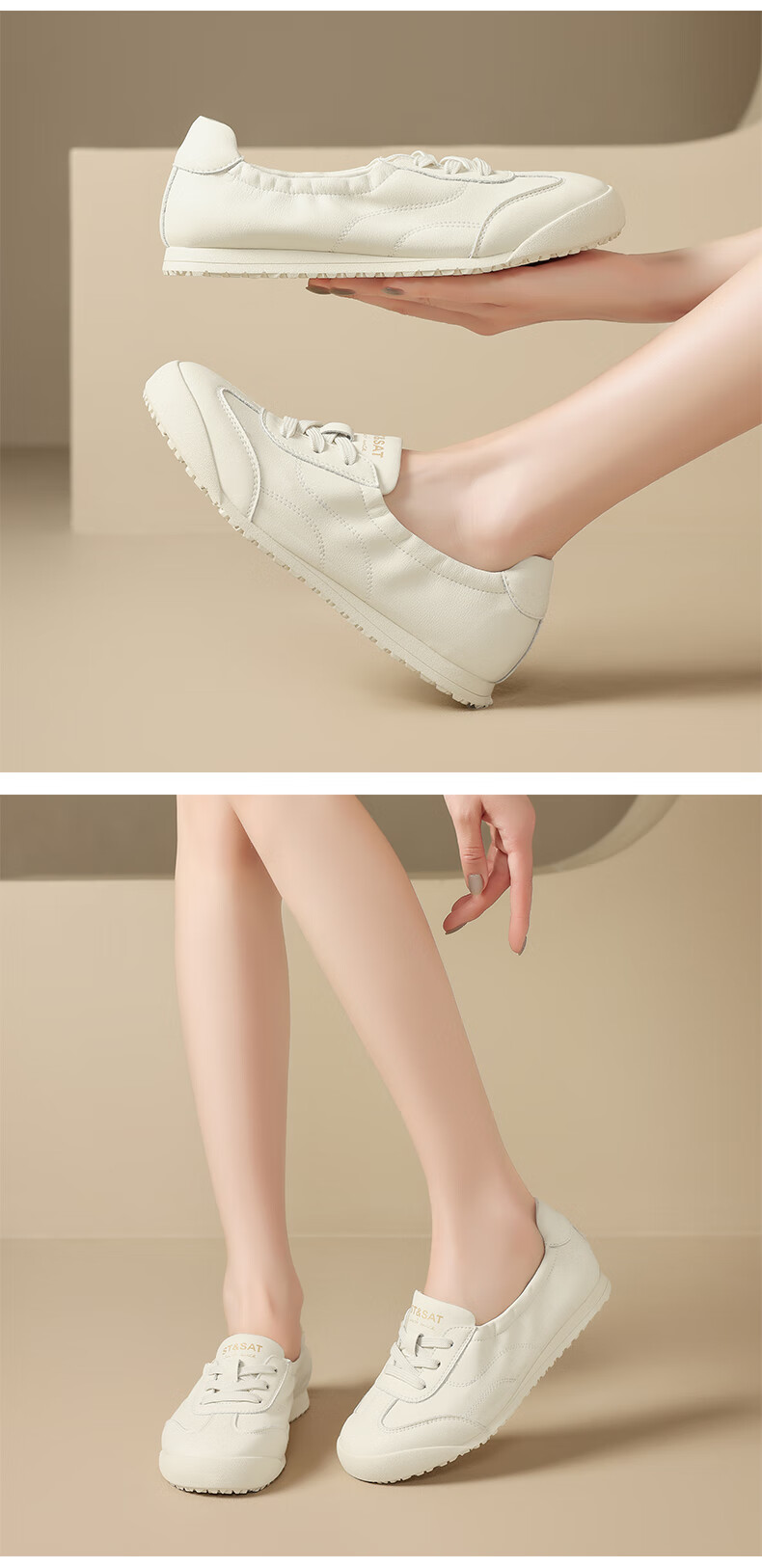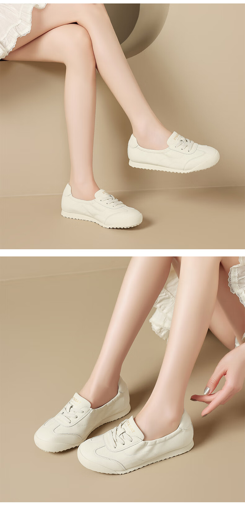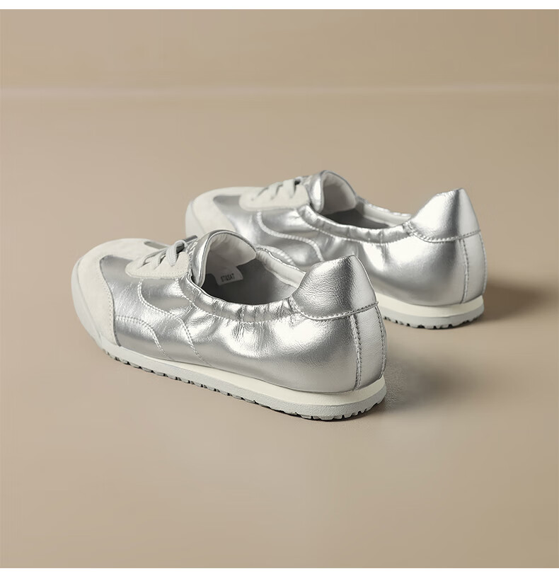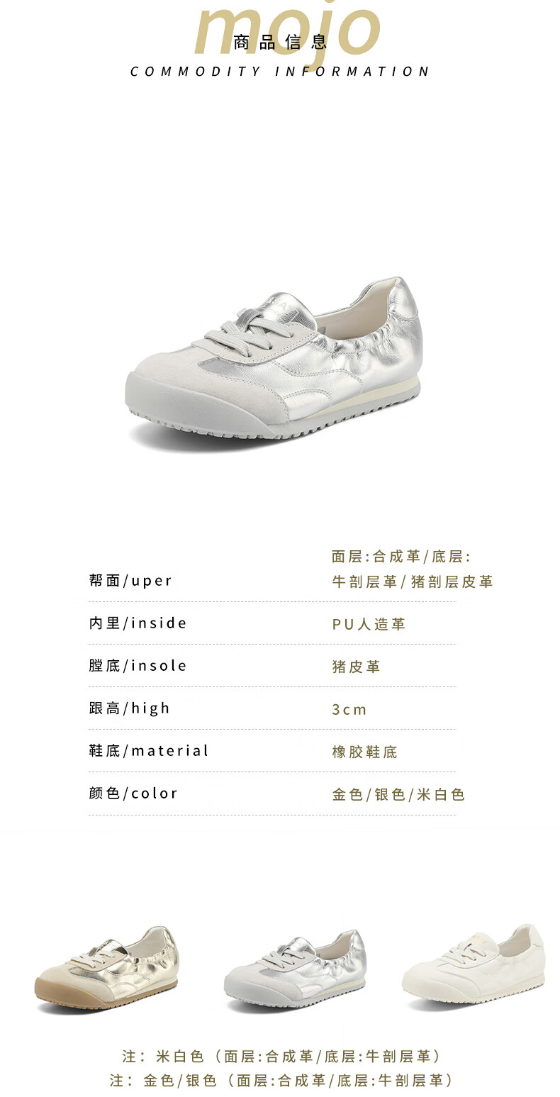 星期六(St&Sat)时尚软底撞色浅口德训鞋女友芭蕾鞋运动休闲轻奢鞋子SZSSD3111PGJ 米白色 36