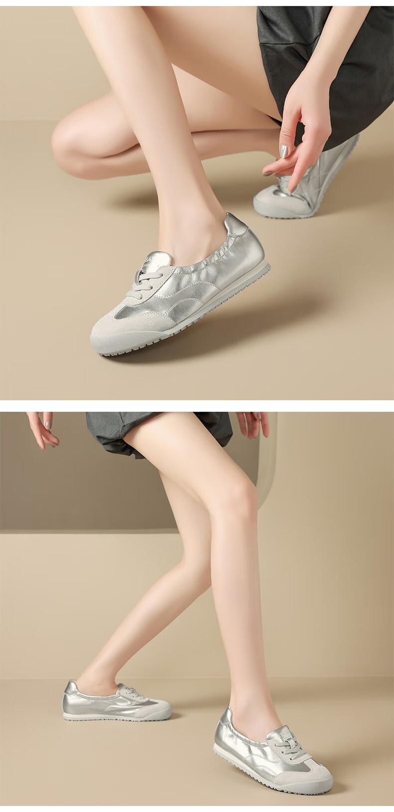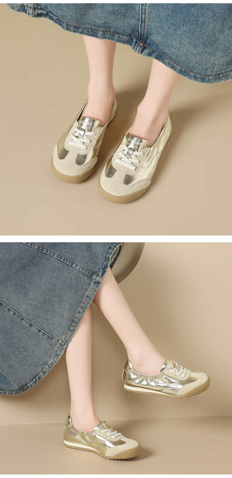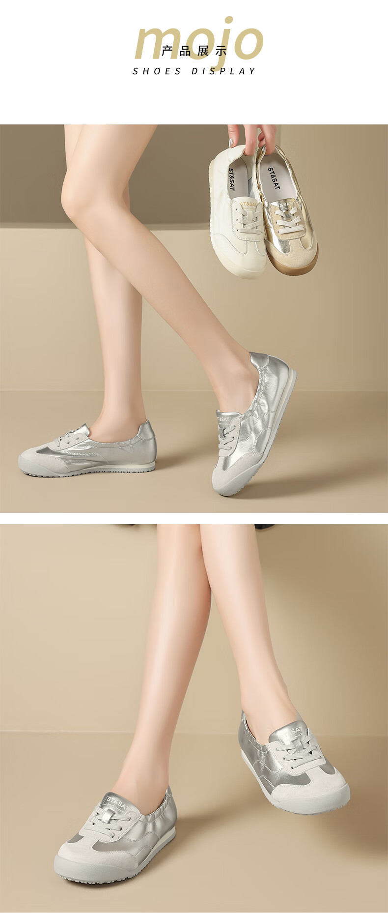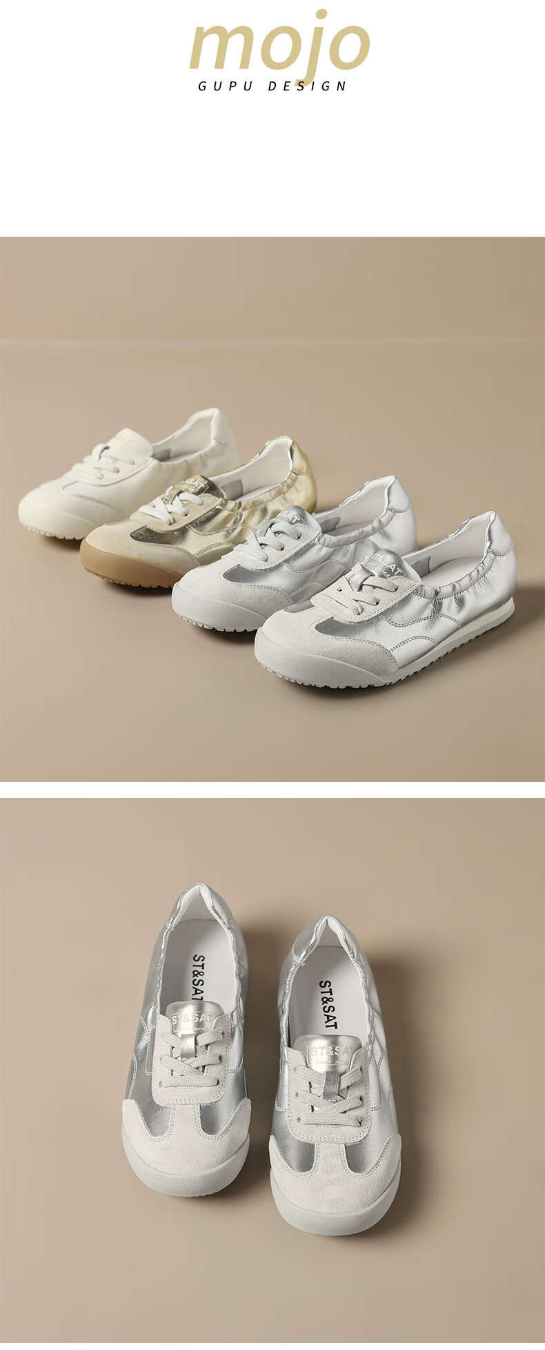 星期六(St&Sat)时尚软底撞色浅口德训鞋女友芭蕾鞋运动休闲轻奢鞋子SZSSD3111PGJ 米白色 36