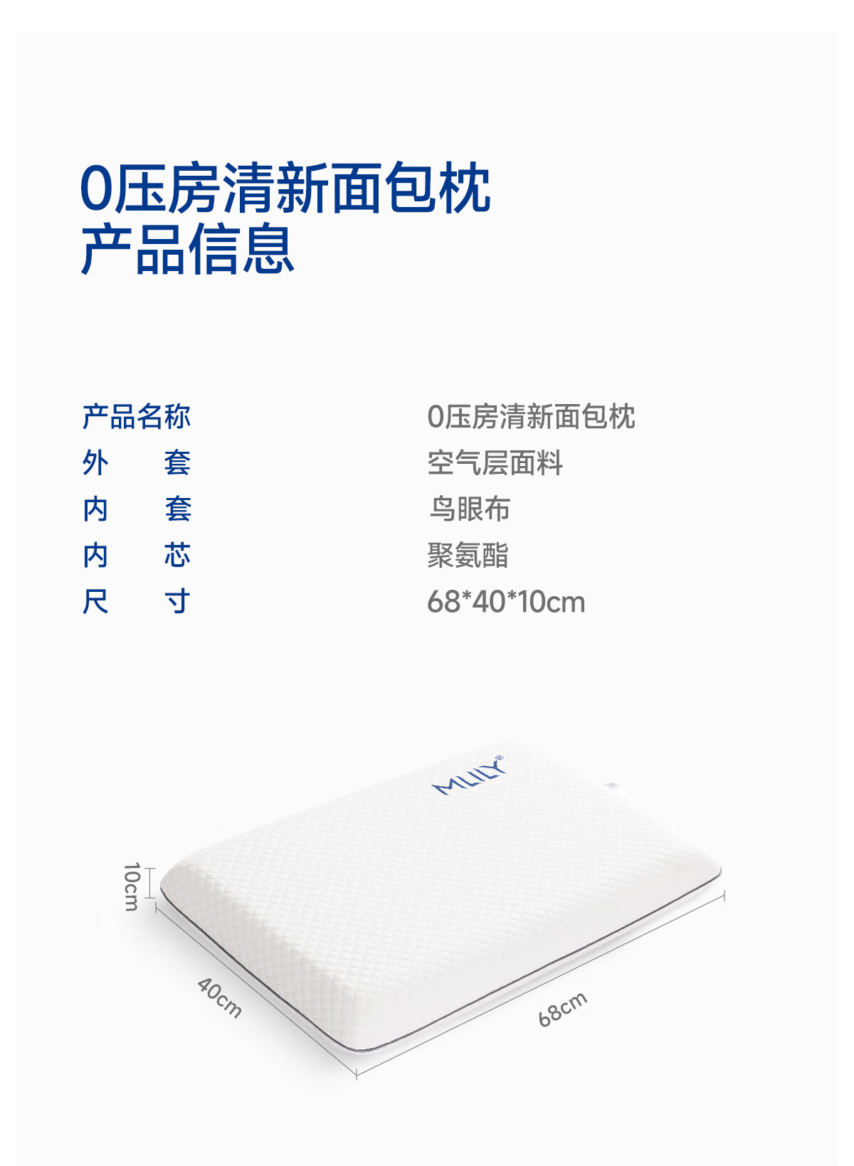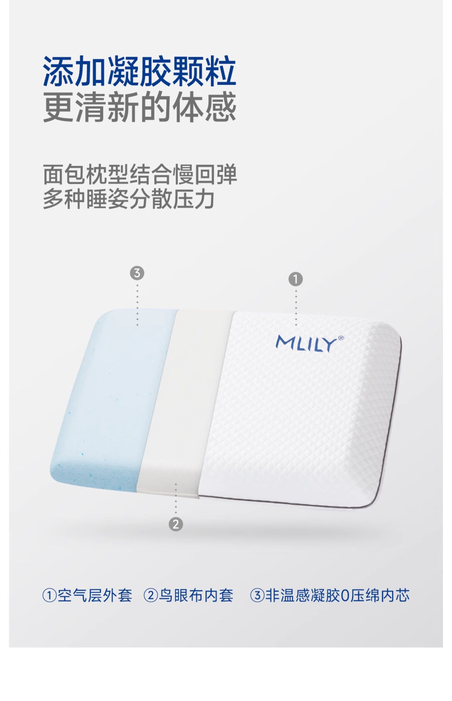梦百合(MLILY)慢回弹凝胶记忆棉颈椎枕头护颈枕芯酒店面包枕成人记忆枕高10cm