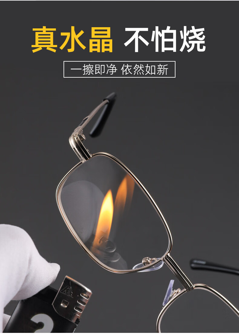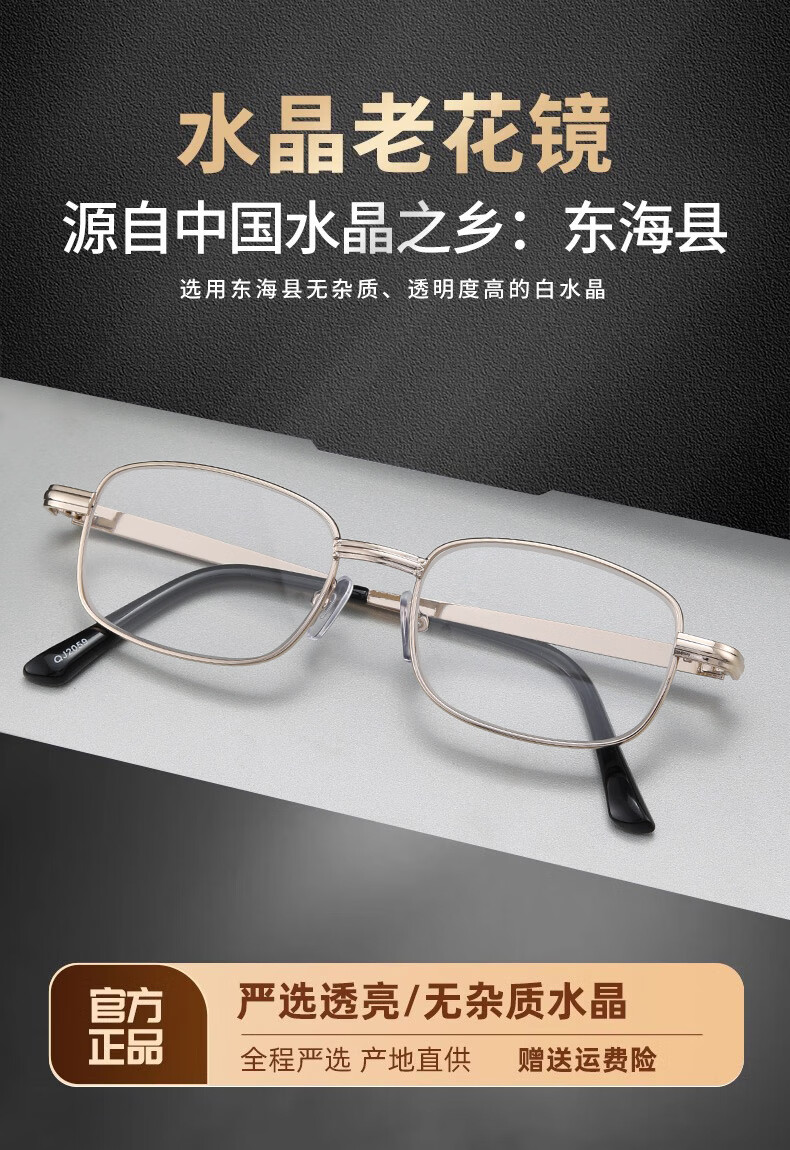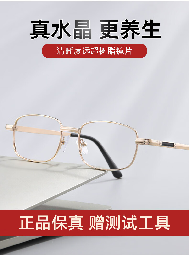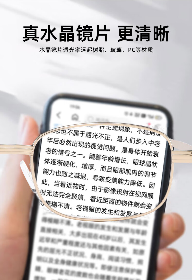 GOGOSOON高档天然真水晶镜片老花镜男老人高清晰护目中老年女防刮耐磨眼镜