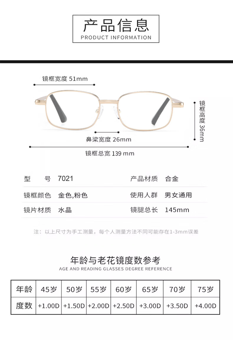 HB防蓝光无框老花镜 时尚耐磨点漆 高清舒适 开学