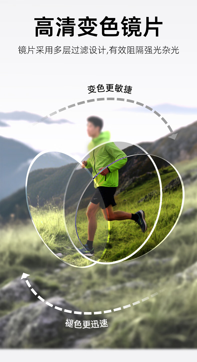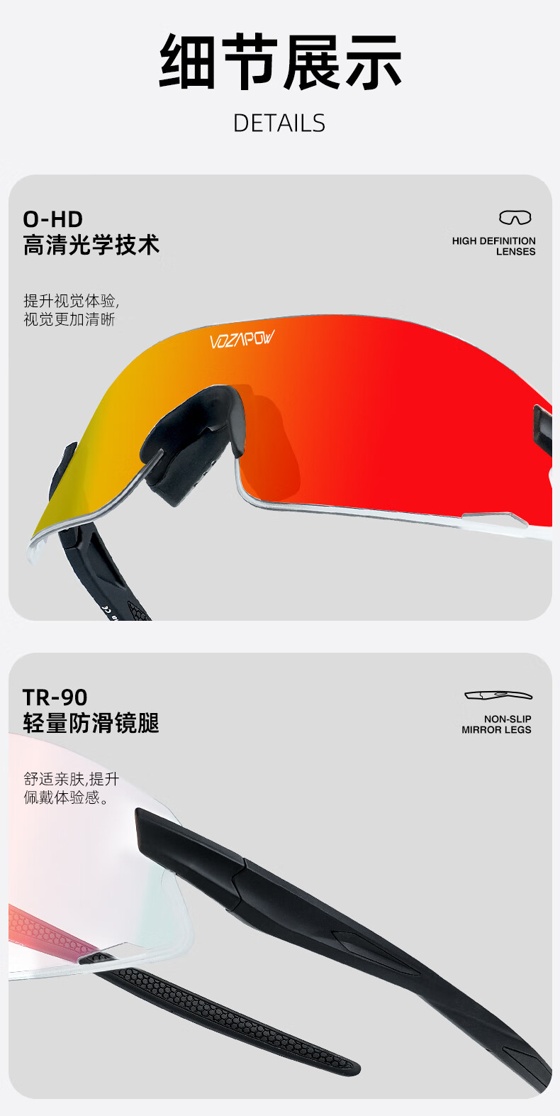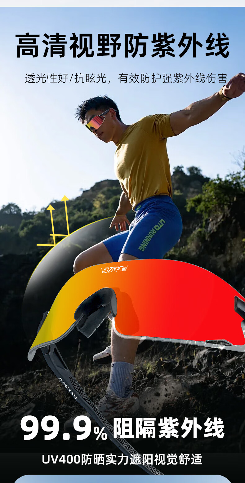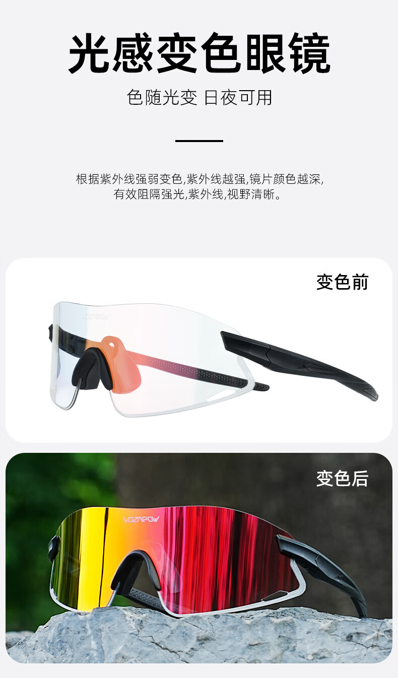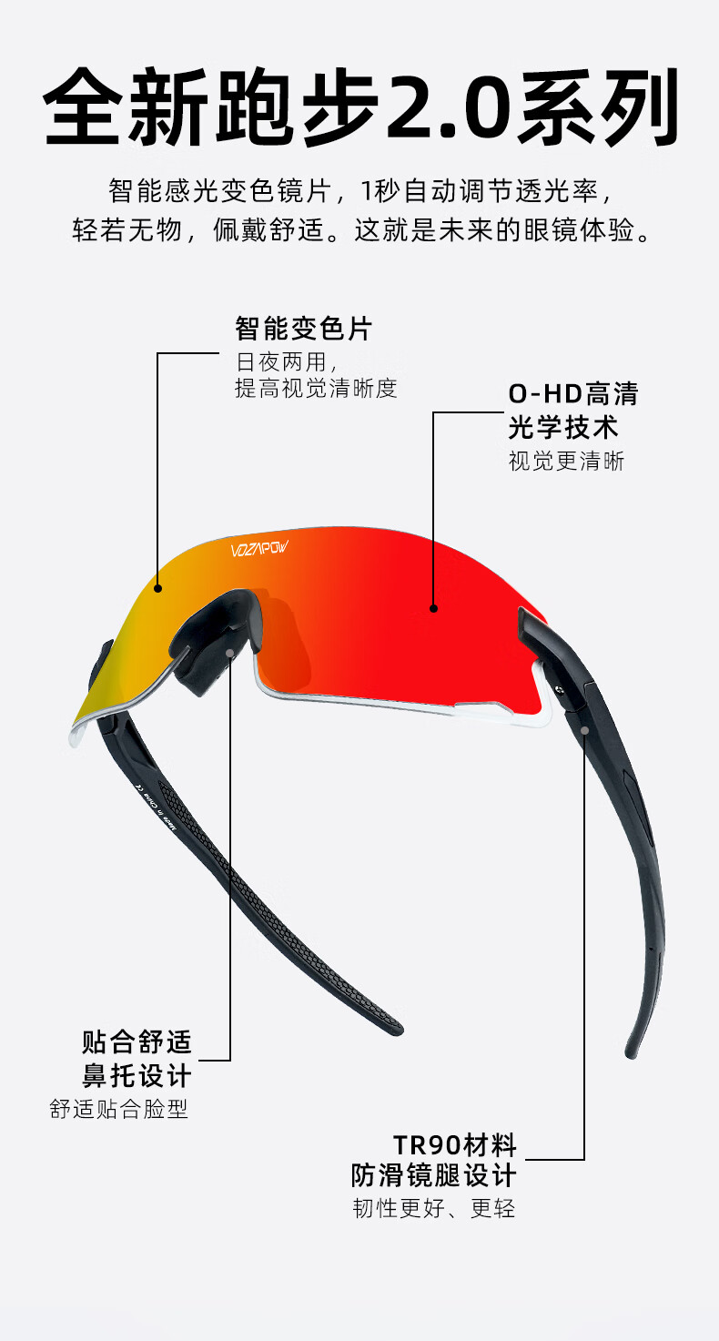 VOZAPOW沃飒跑步眼镜变色专业马拉松运动护目镜日夜两用户外太阳镜男女款
