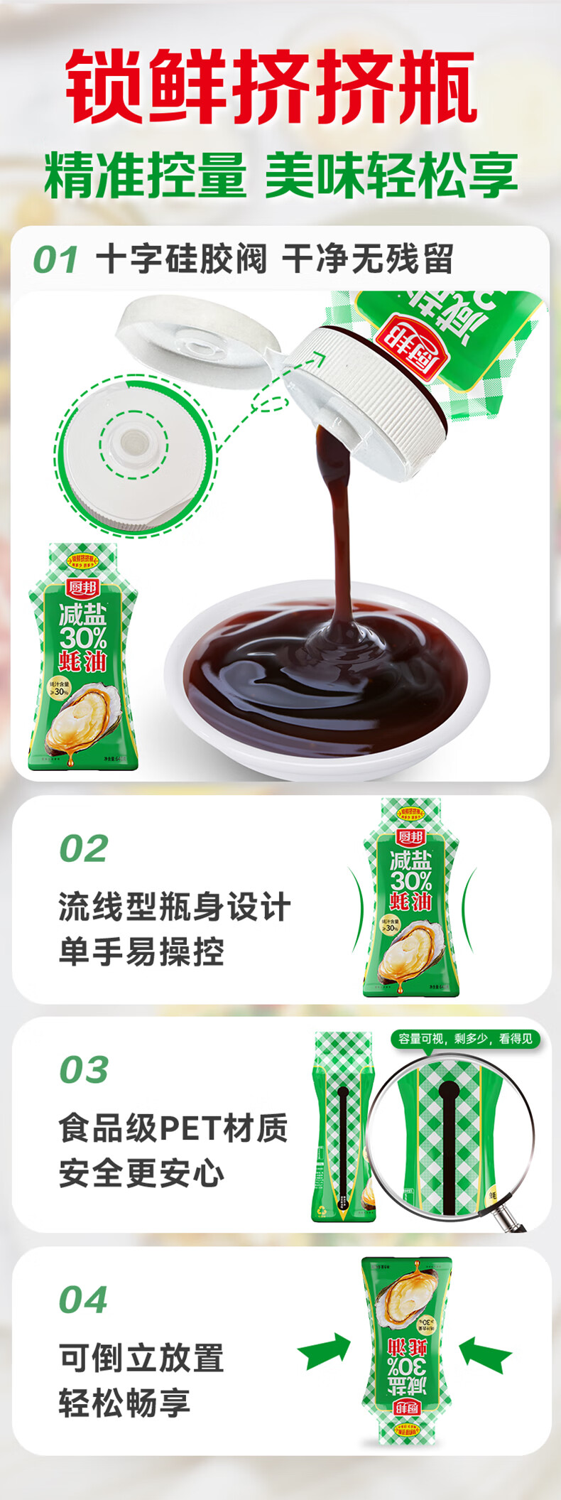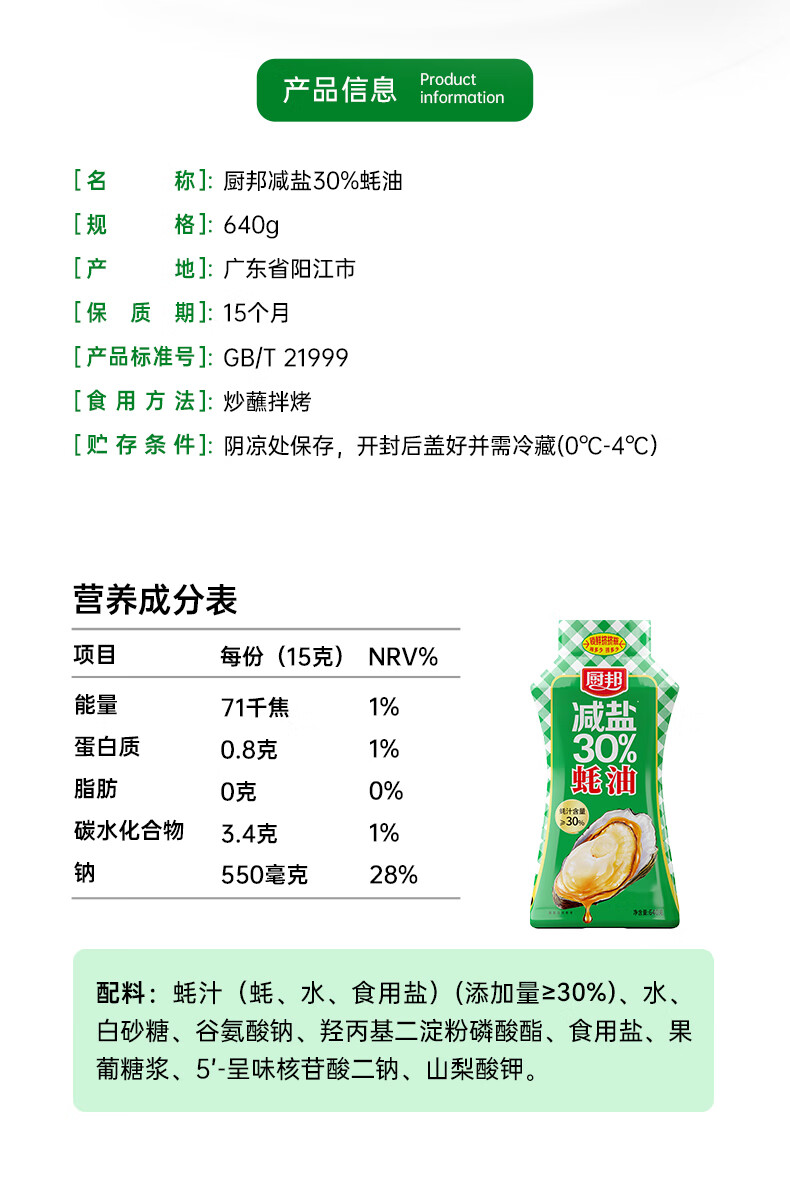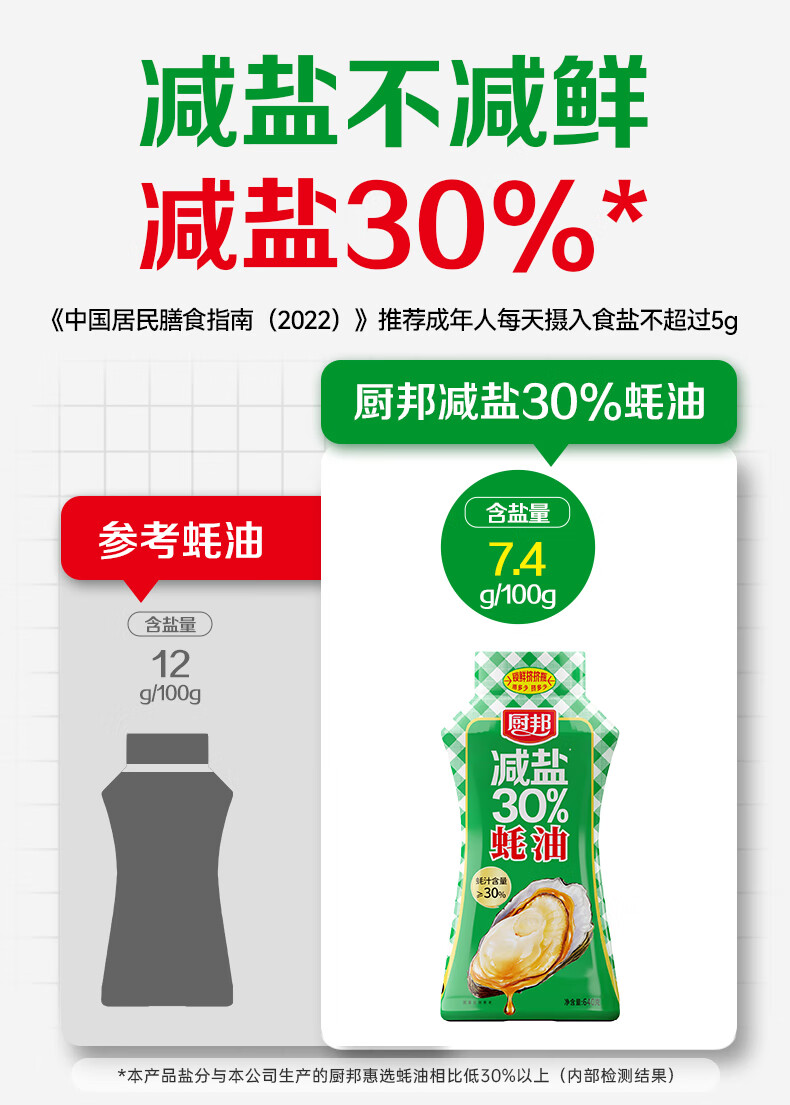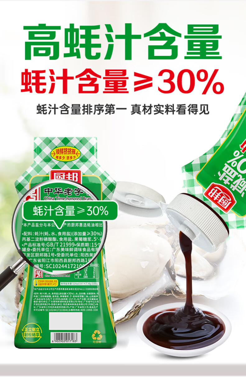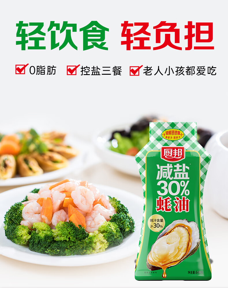 厨邦减盐蚝油 640g 【30%蚝汁 减盐30% 0脂肪】挤挤装 调味调料自营