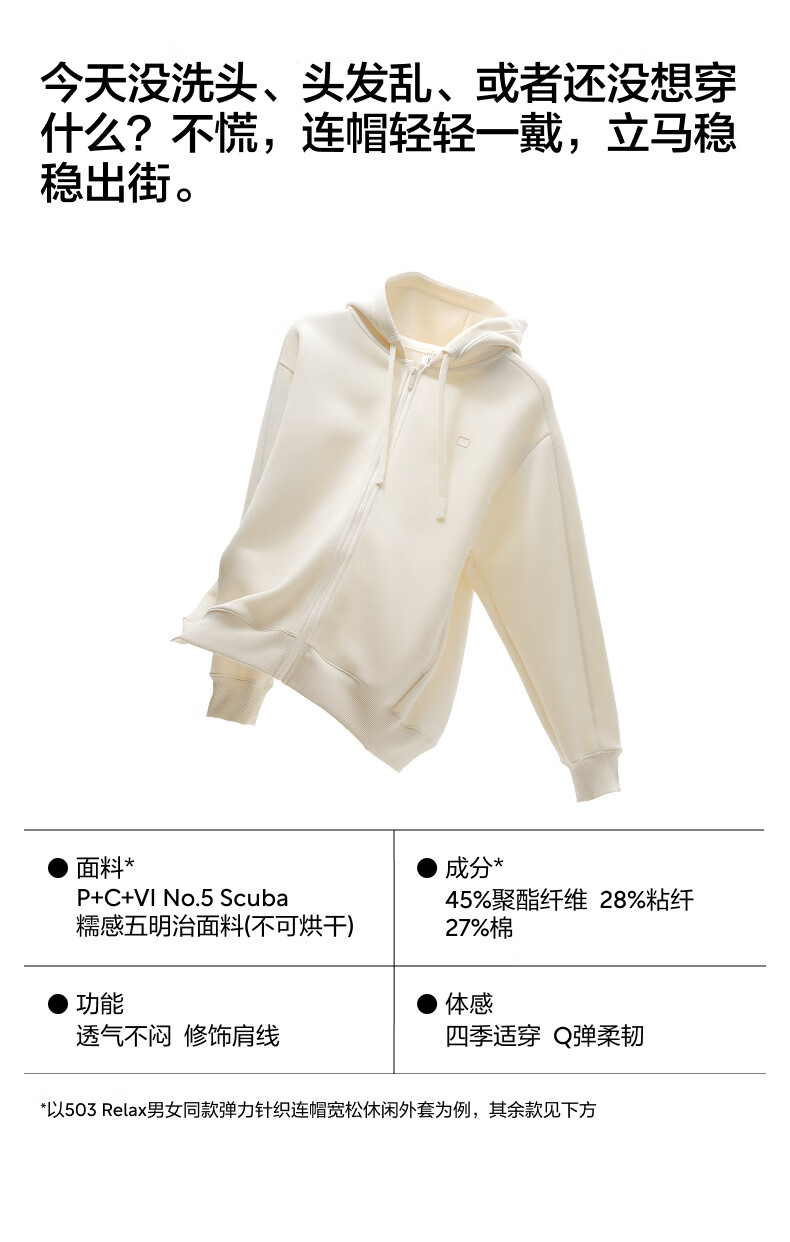 蕉内【王一博同款】非常服503Relax男女针织连帽休闲外套百搭显瘦卫衣