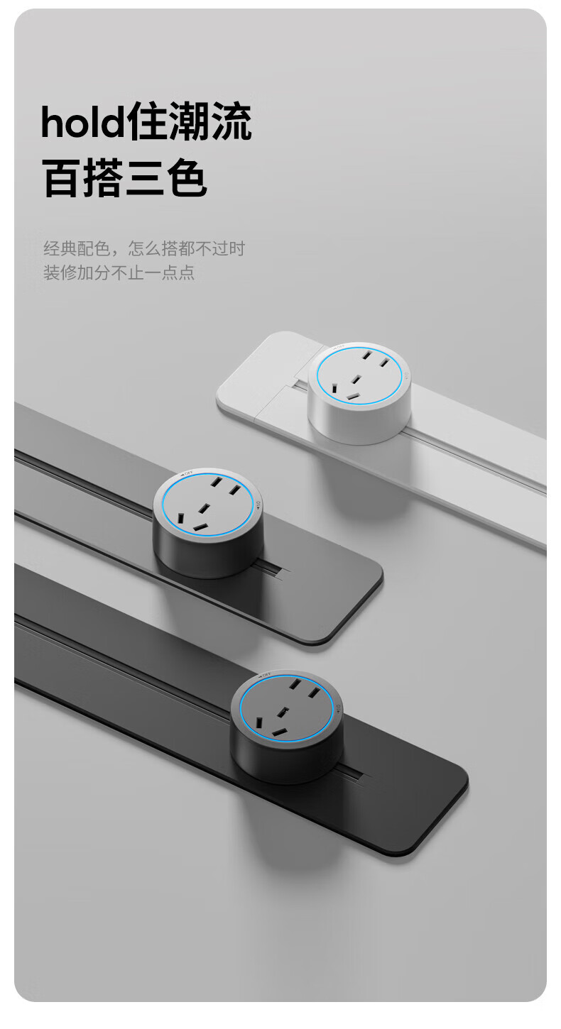 国际电工(FDD)超薄轨道插座可移动嵌入式滑轨轨道插排家用岛台电力导轨插板 暗装轨道30cm+3个大五孔(蓝灯)