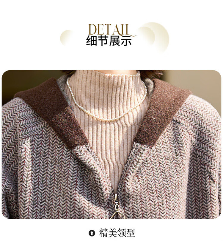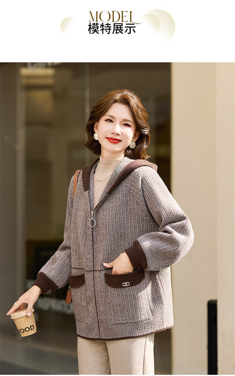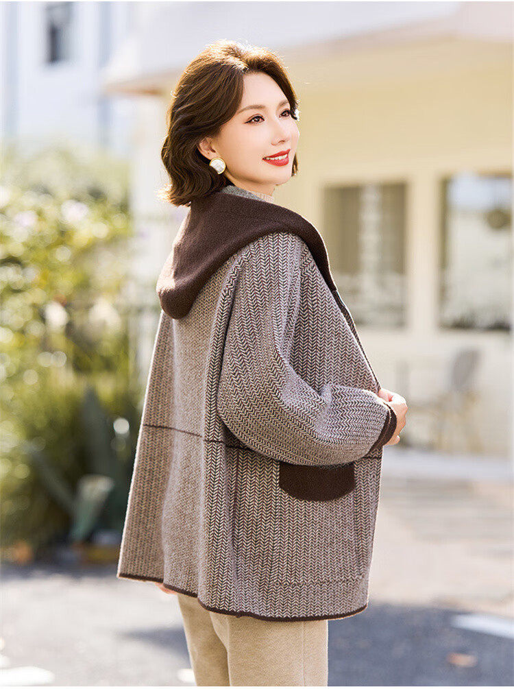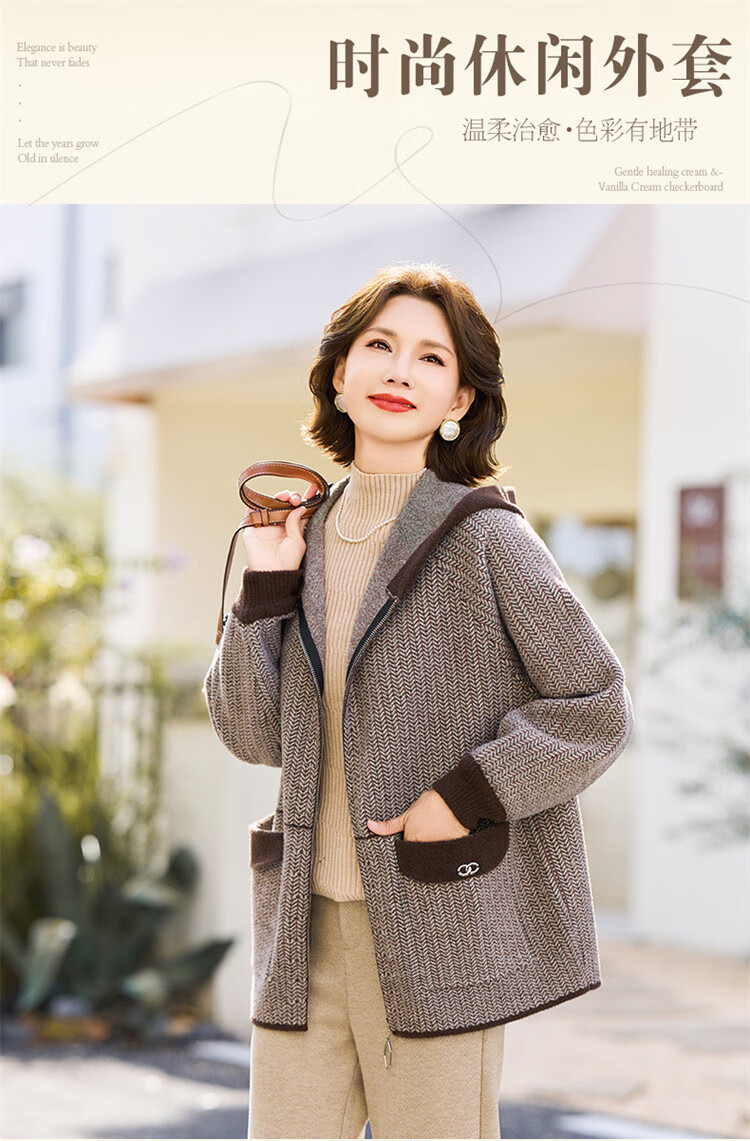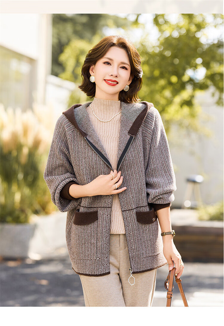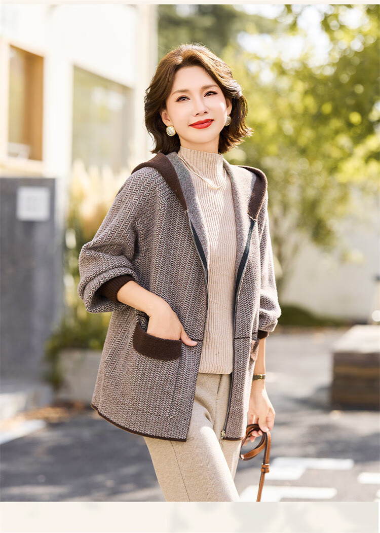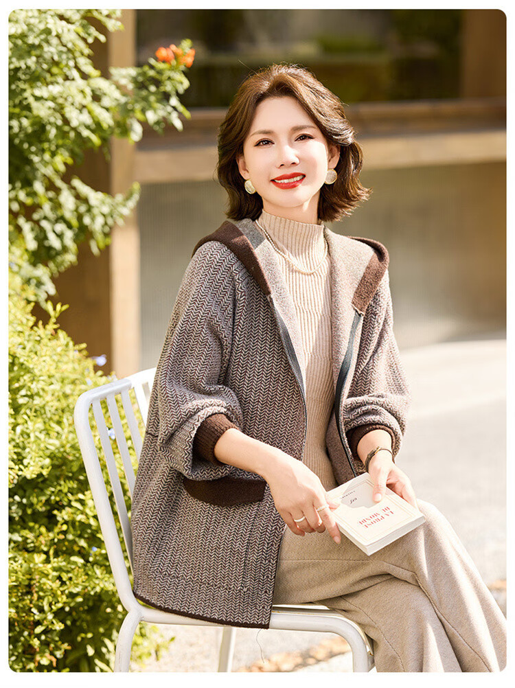 简狐妈妈装秋装中老年女装时尚连帽上衣春秋季50-60岁针织衫洋气外套