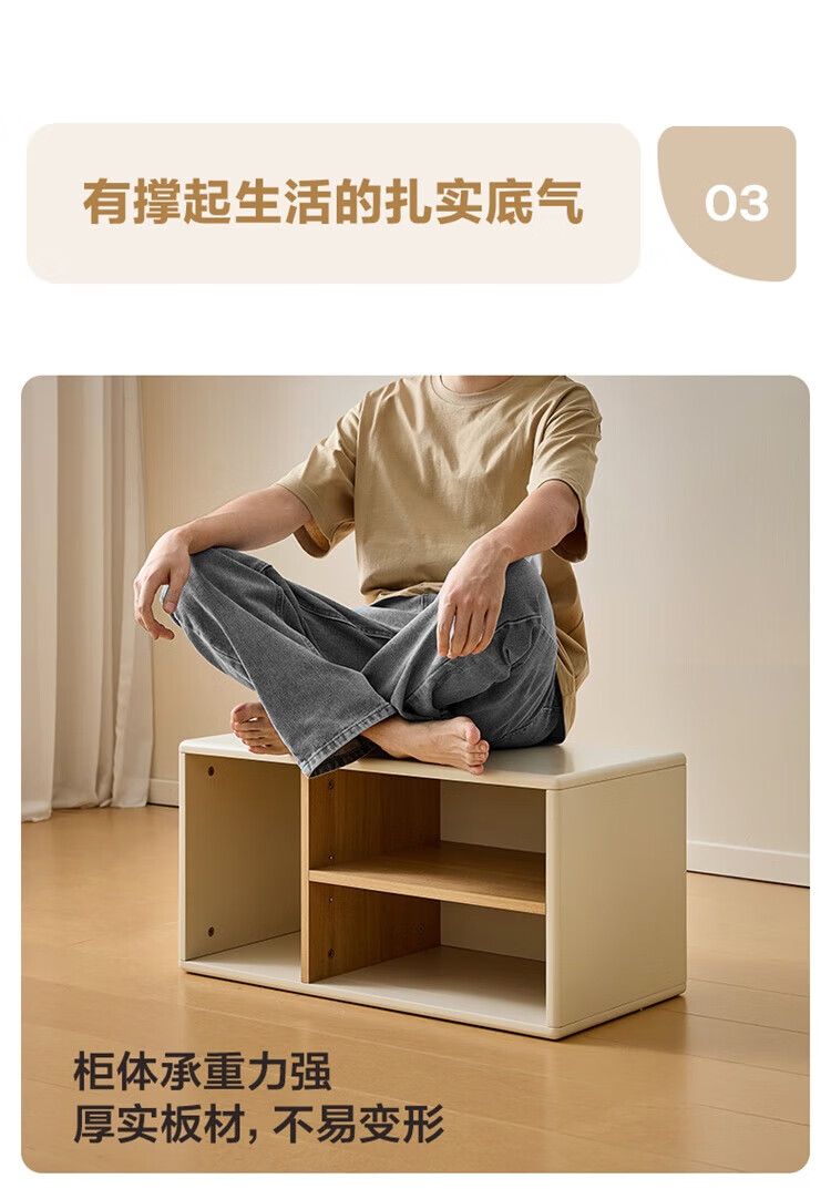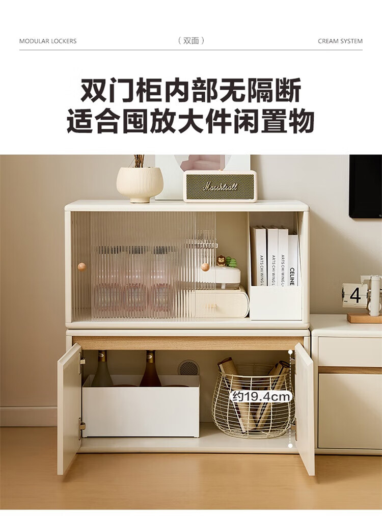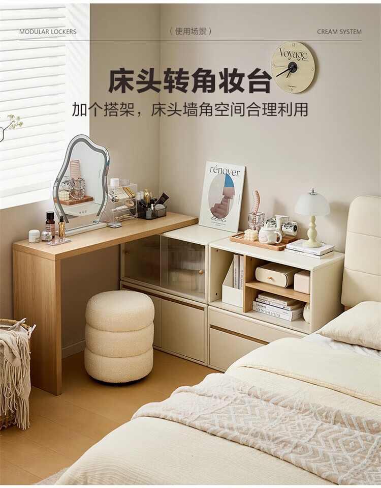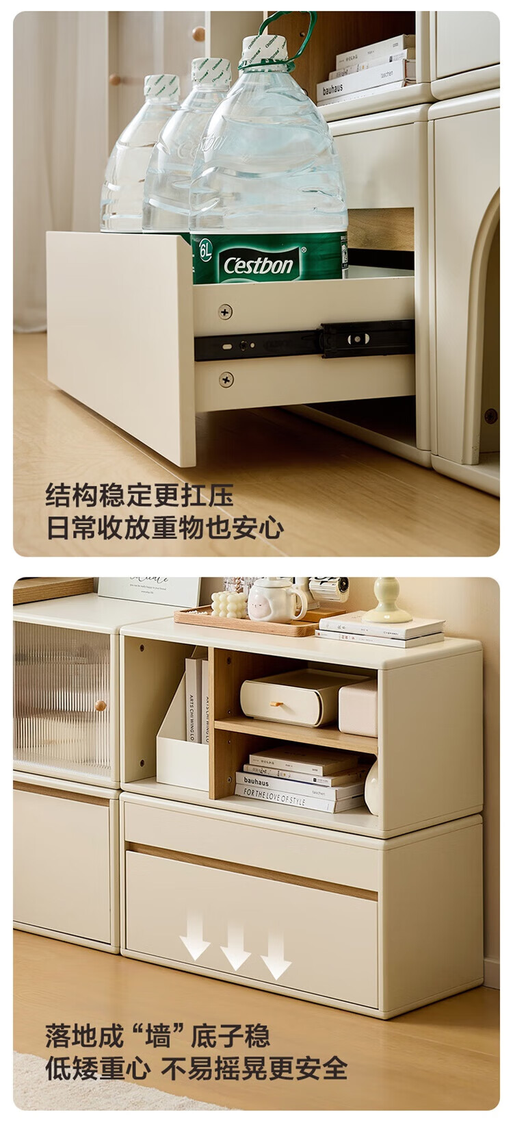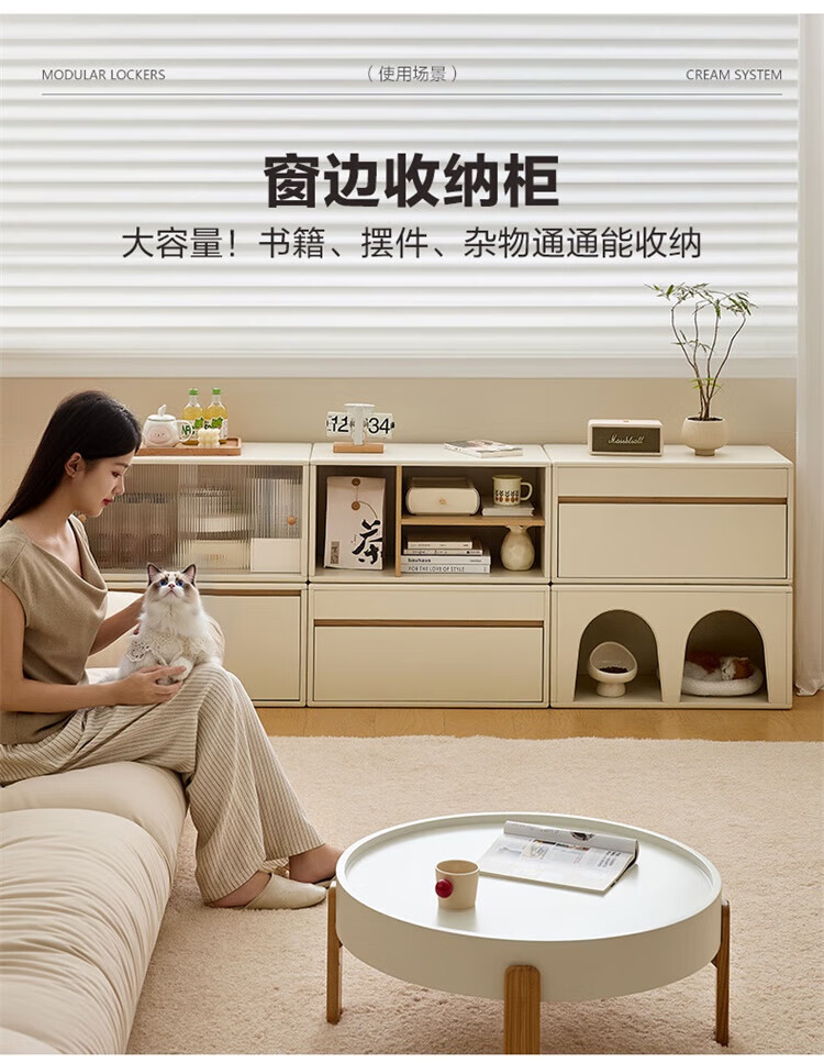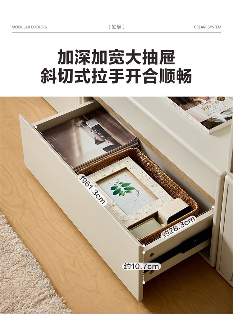 全友家居奶油风电视柜客厅收纳储物柜矮柜沙发边柜床头转角梳妆台家具 三格款储物柜