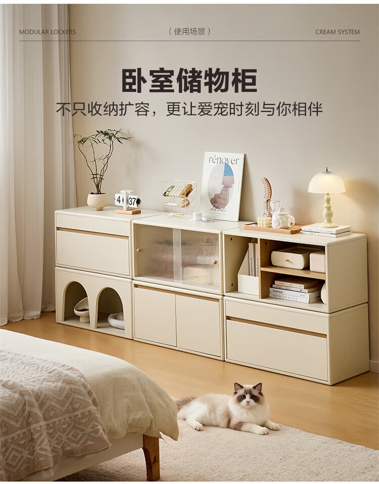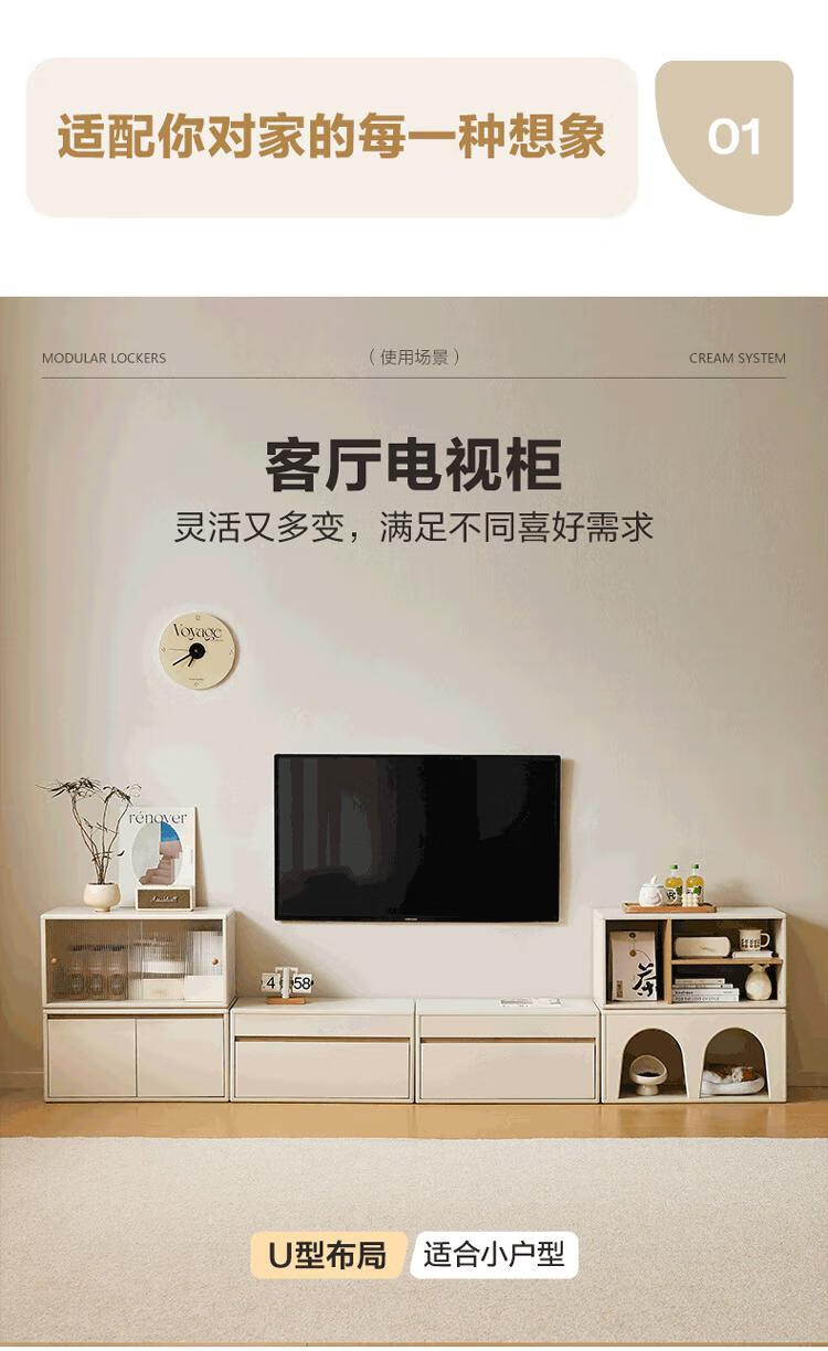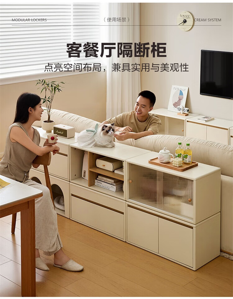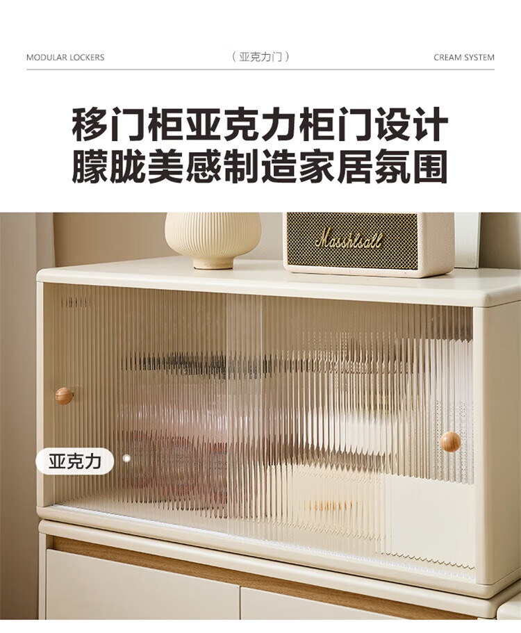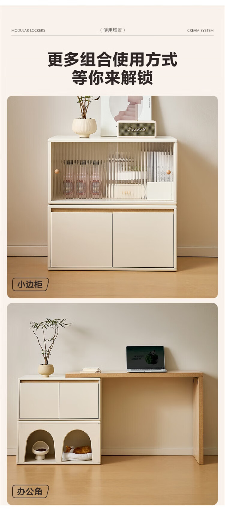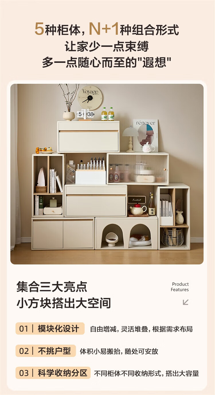 全友家居奶油风电视柜客厅收纳储物柜矮柜沙发边柜床头转角梳妆台家具 三格款储物柜