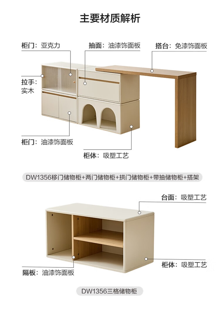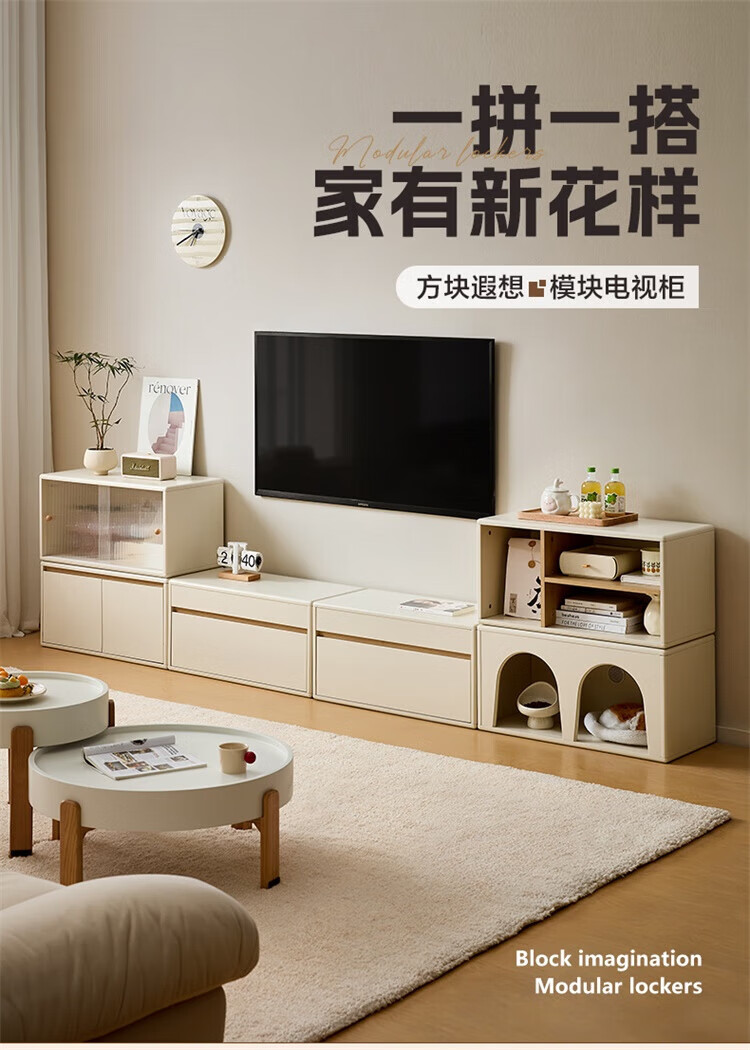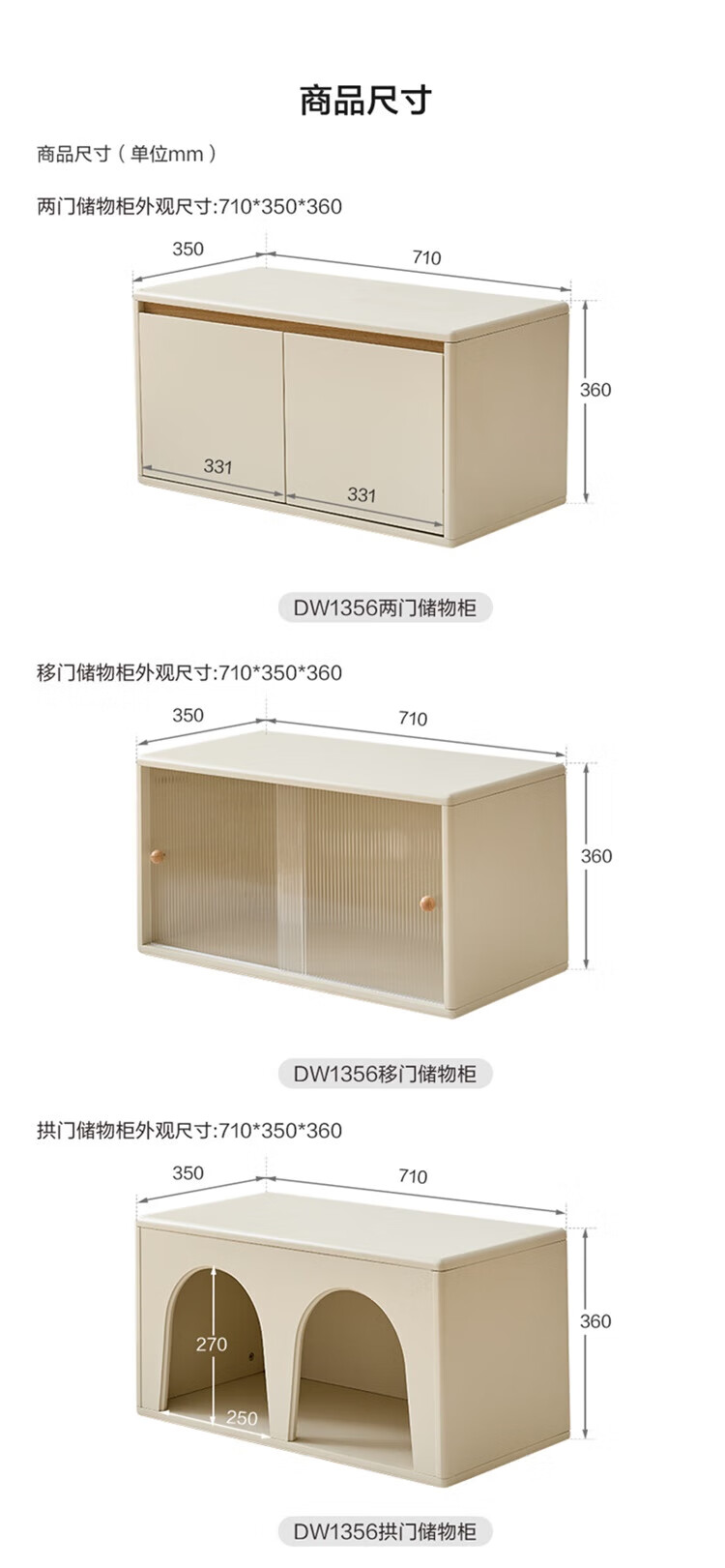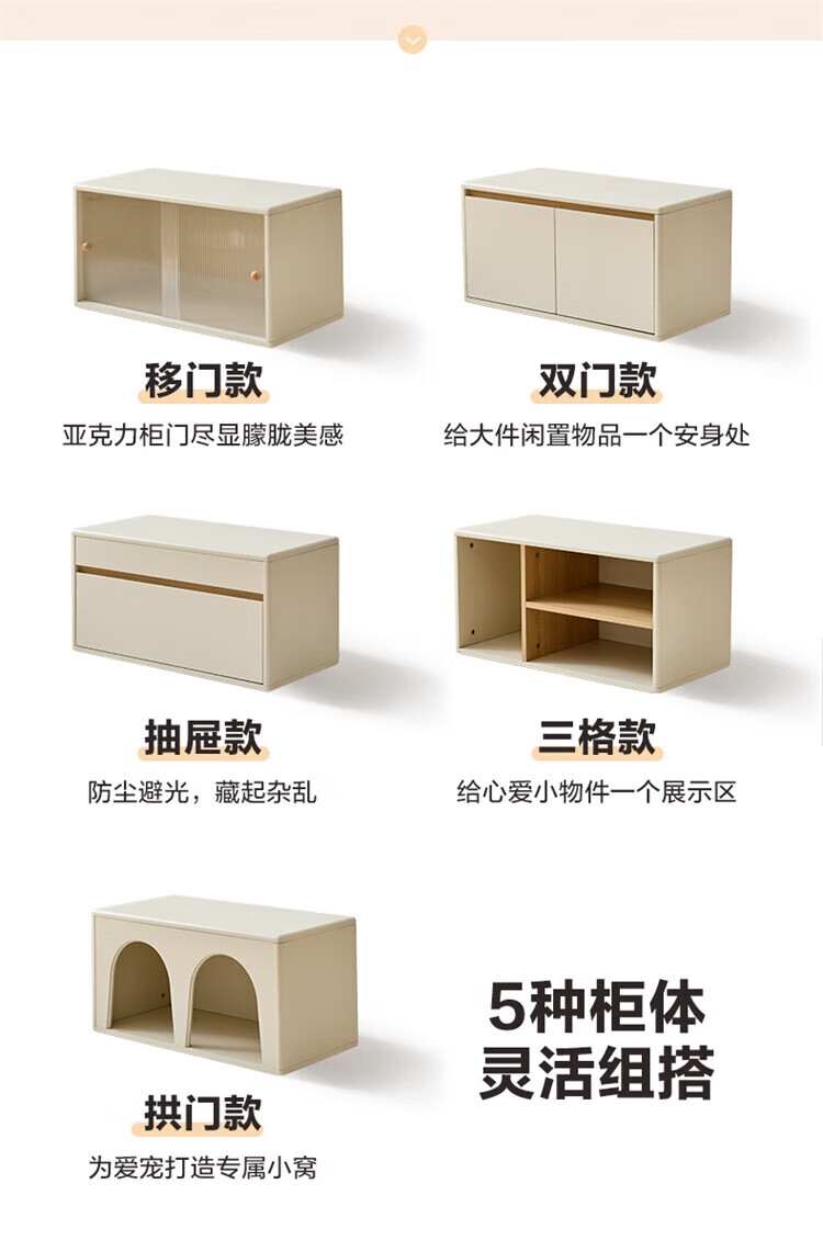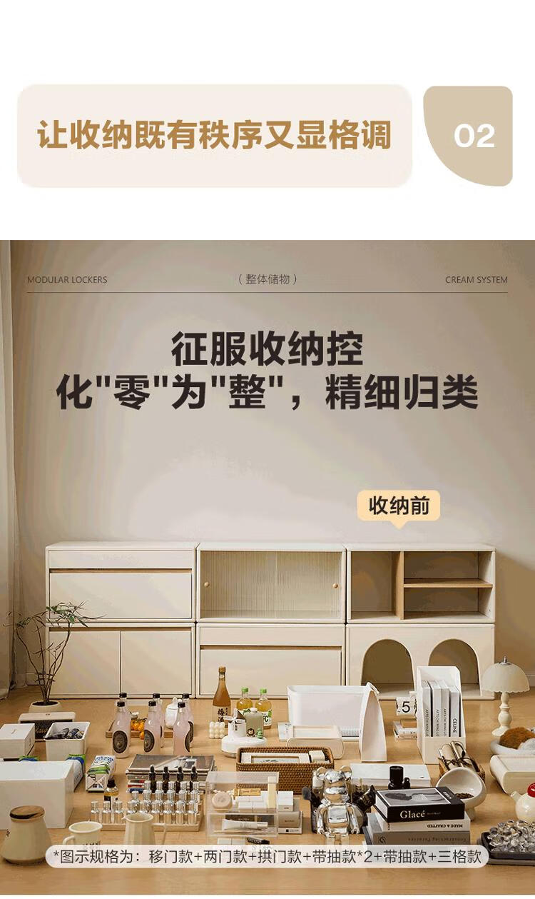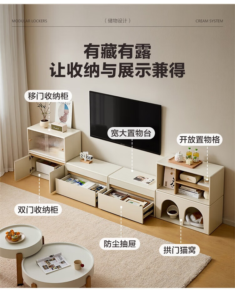 全友家居奶油风电视柜客厅收纳储物柜矮柜沙发边柜床头转角梳妆台家具 三格款储物柜