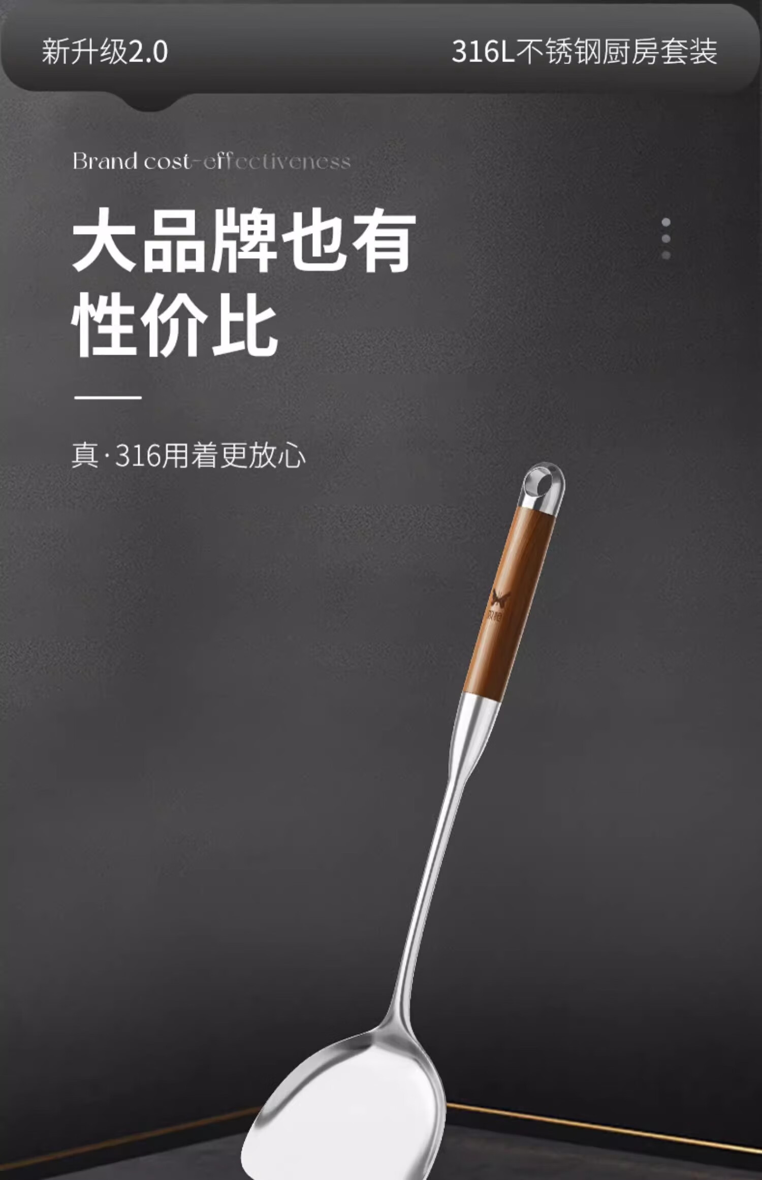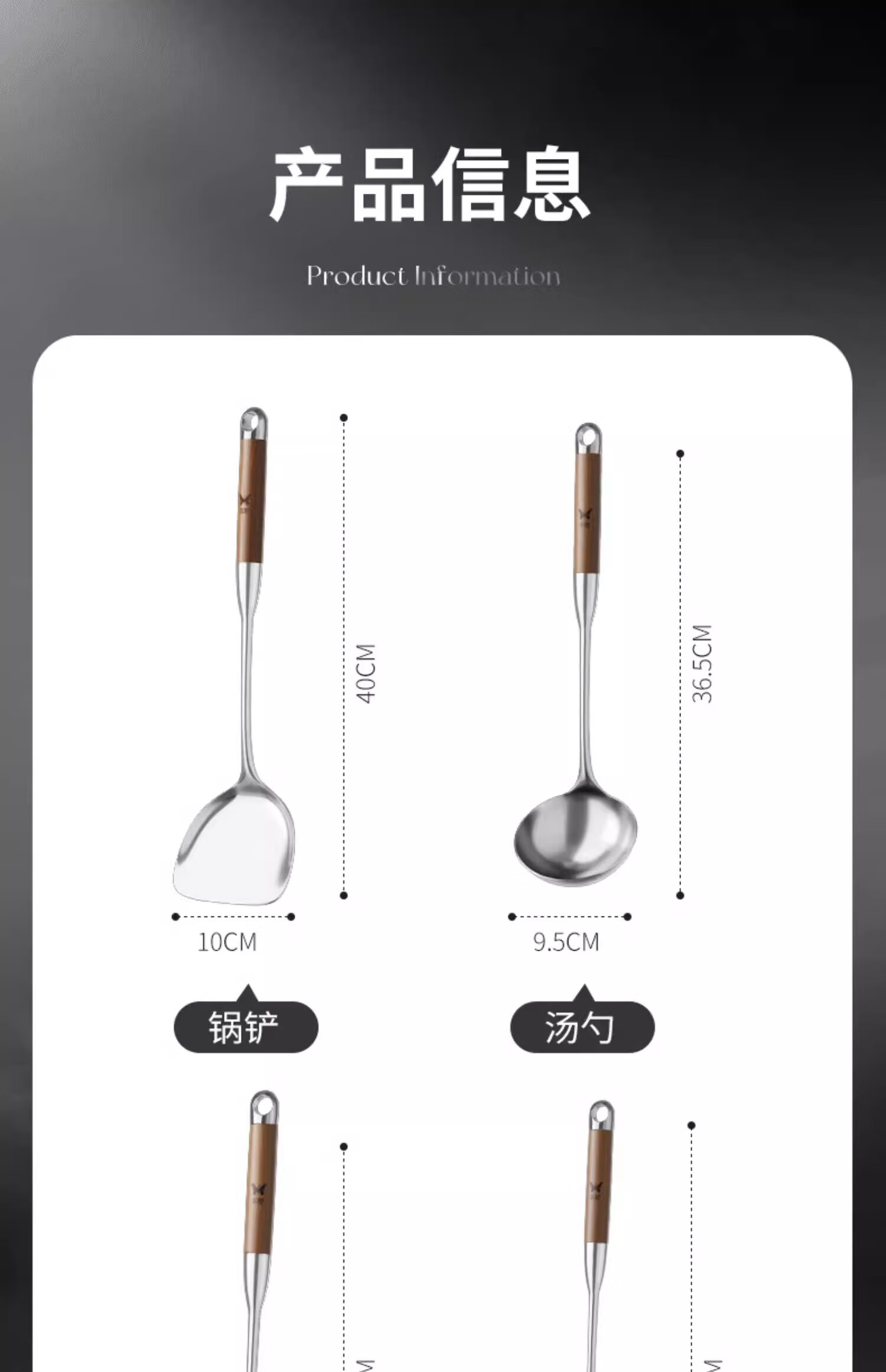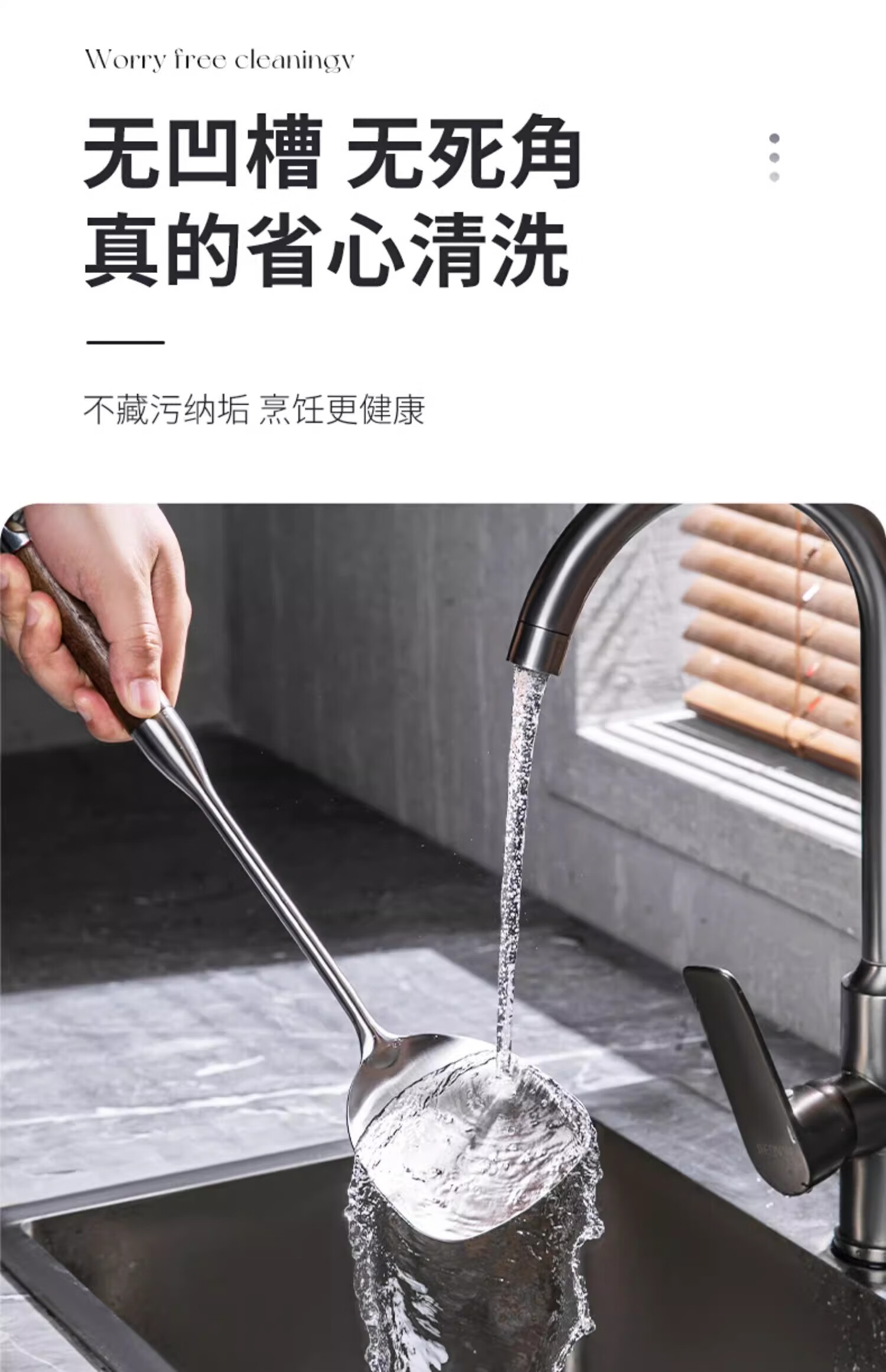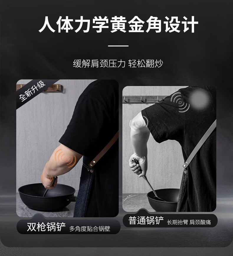 双枪316L锅铲三件套家用炒菜铁锅铲子 胡桃木手柄锅铲+汤勺+漏勺套装
