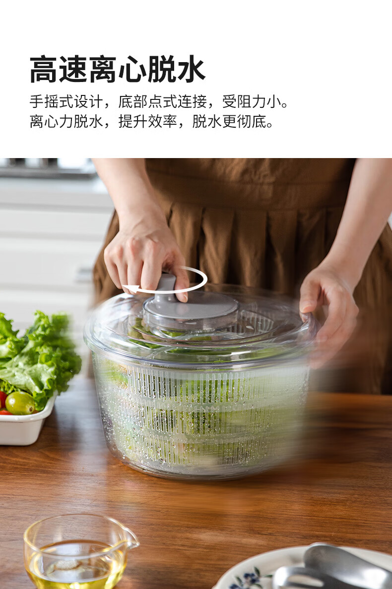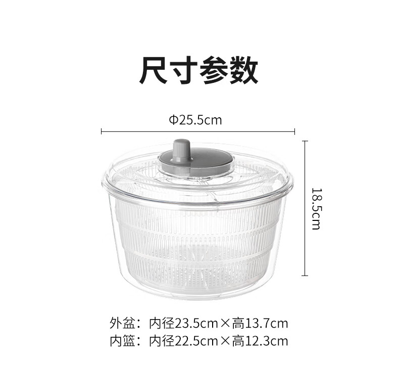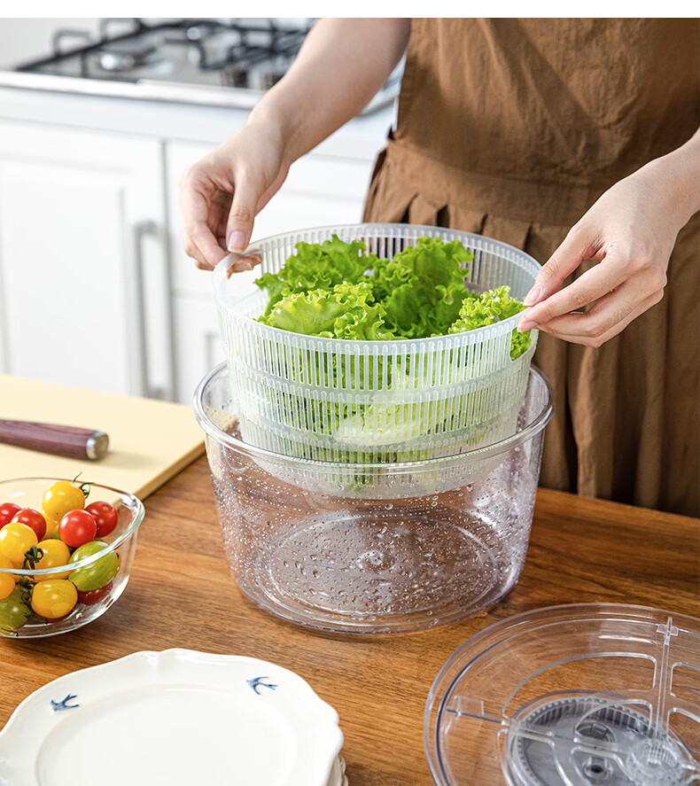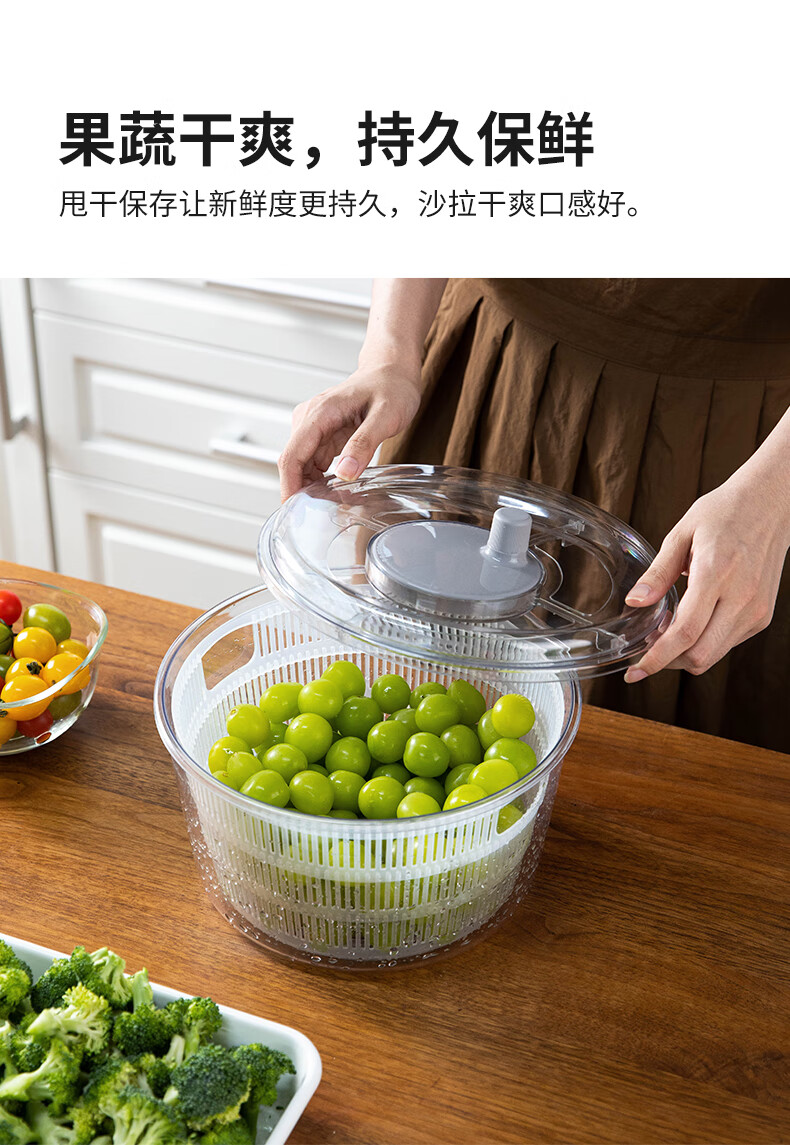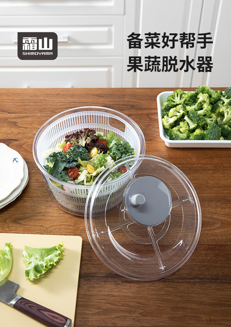 霜山蔬菜脱水器家用水果沙拉甩水器手动果蔬甩干机分体沥水洗菜篮 【5L】直径25.5*高18.5cm