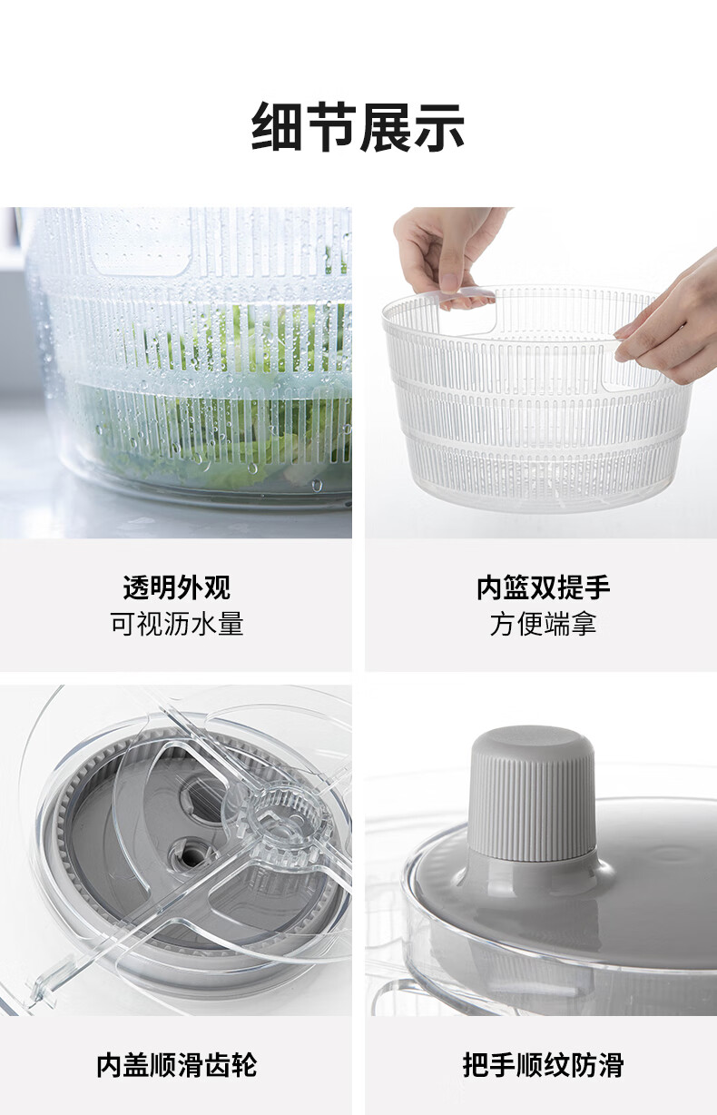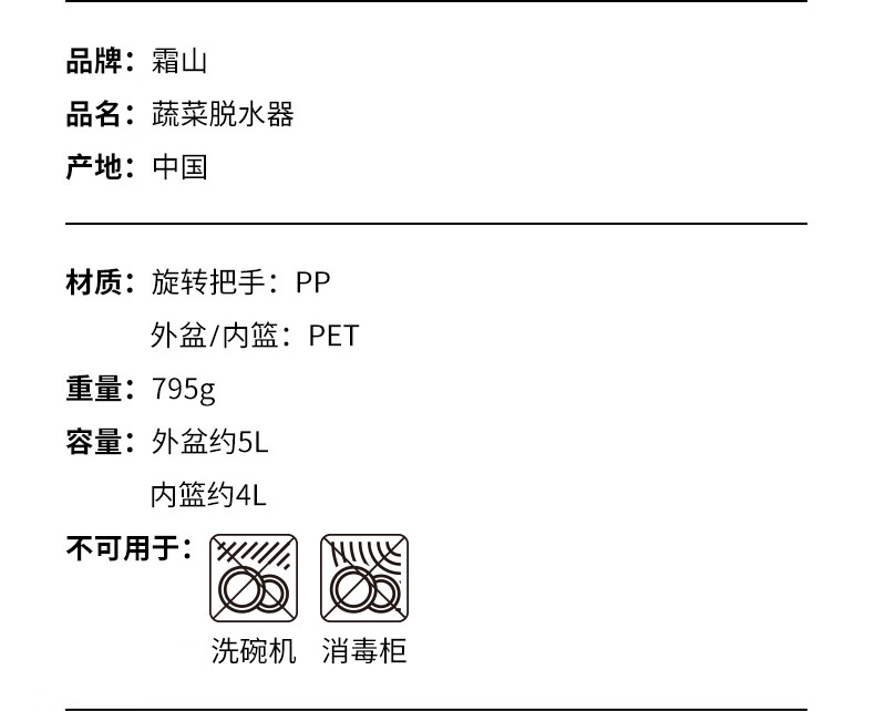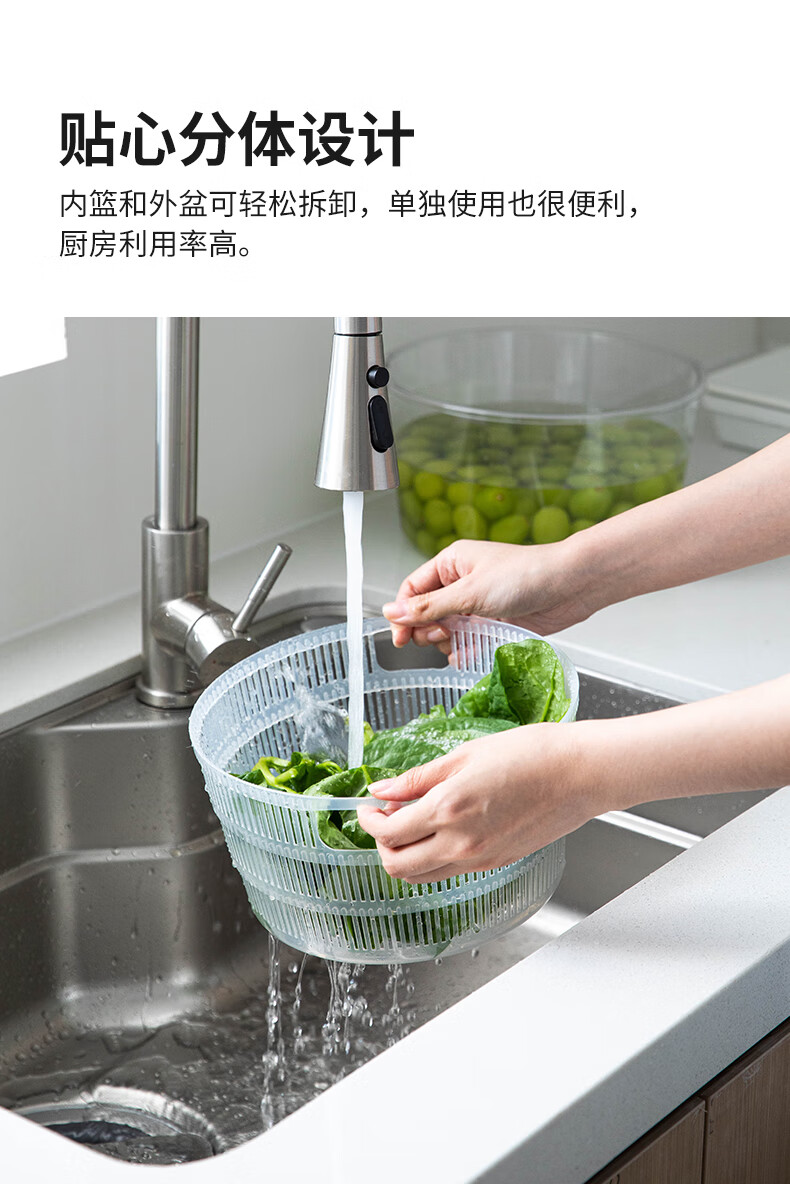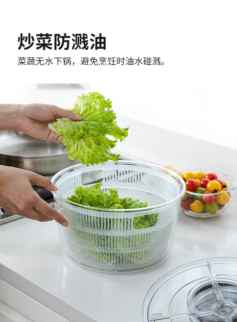 霜山蔬菜脱水器家用水果沙拉甩水器手动果蔬甩干机分体沥水洗菜篮 【5L】直径25.5*高18.5cm