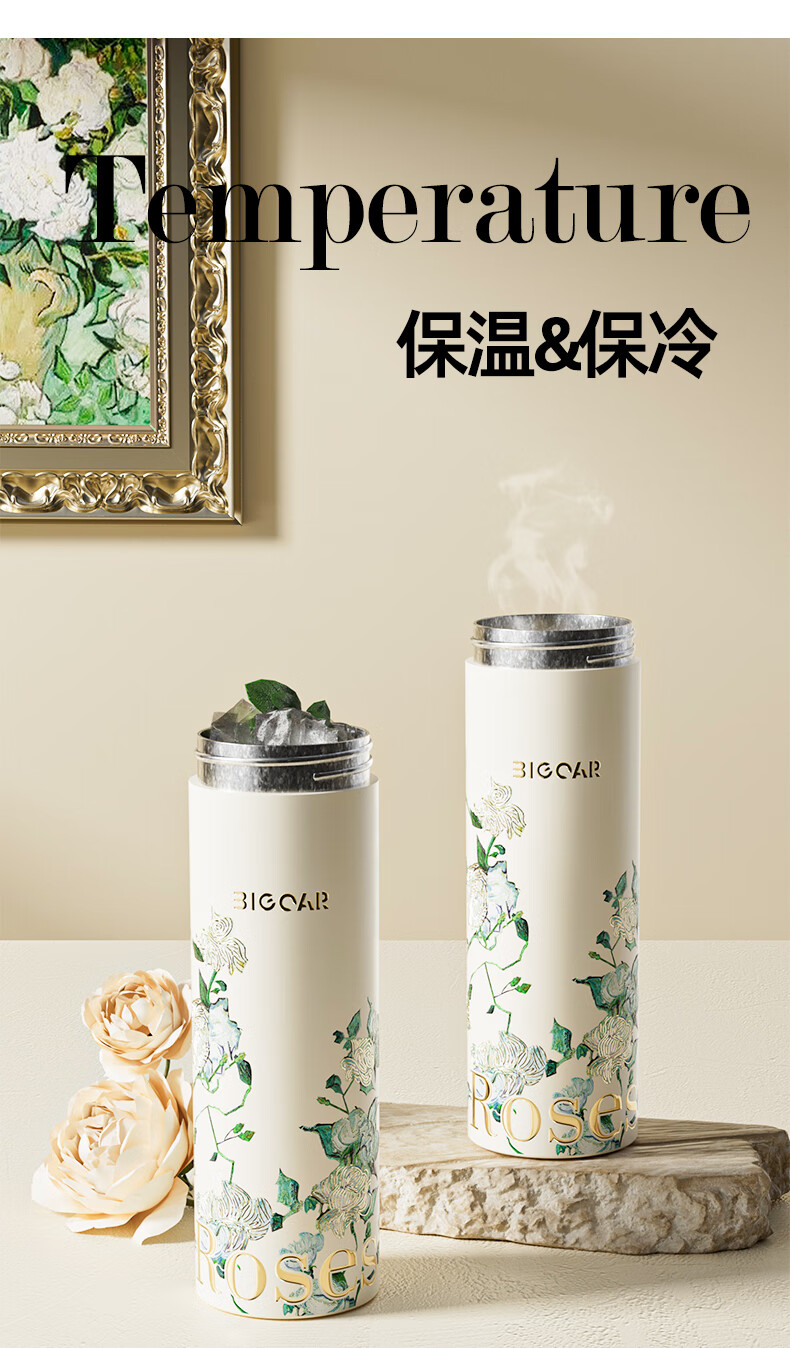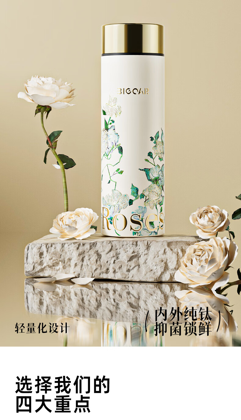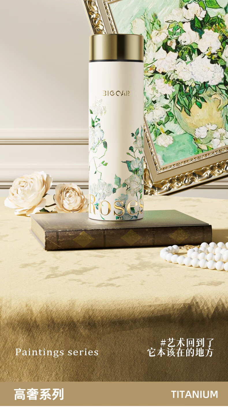 AILUKI日本梵高纯钛保温杯2025新款高颜值钛杯便捷泡茶水杯子高档送礼 【内外纯钛】梵高白玫瑰300ml