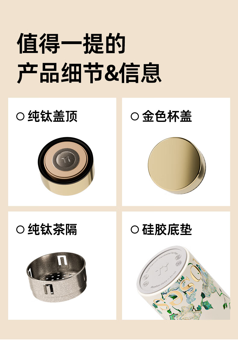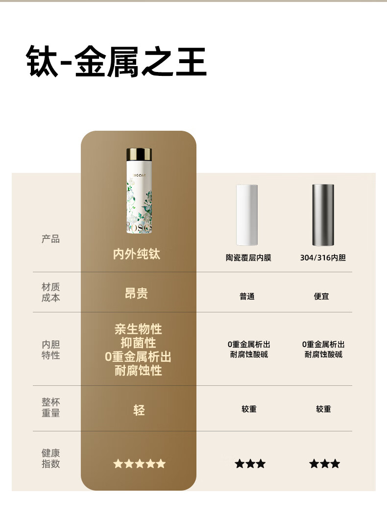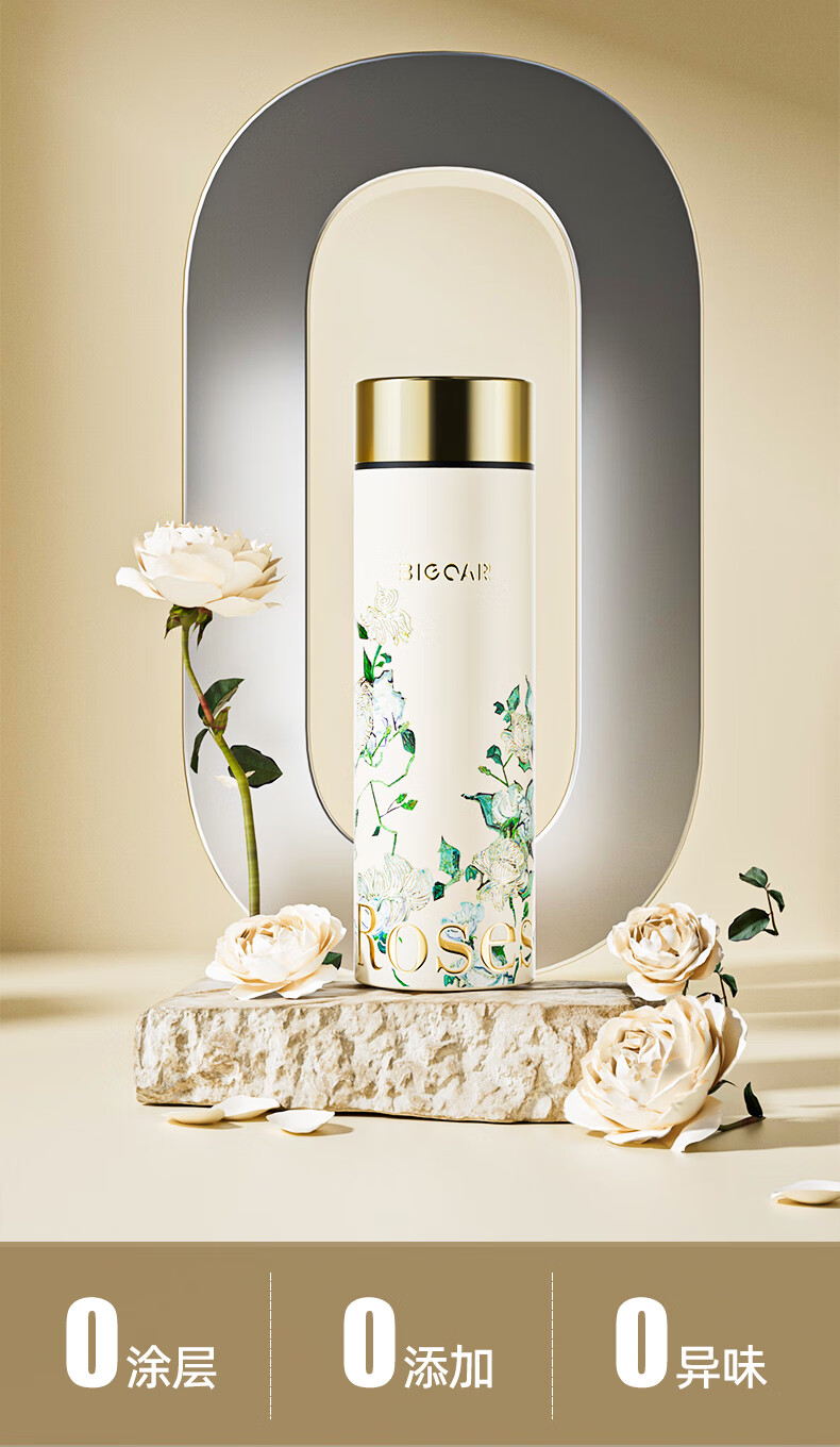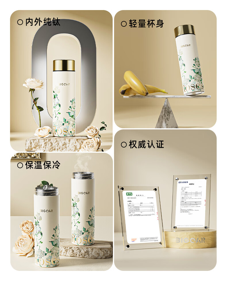 AILUKI日本梵高纯钛保温杯2025新款高颜值钛杯便捷泡茶水杯子高档送礼 【内外纯钛】梵高白玫瑰300ml