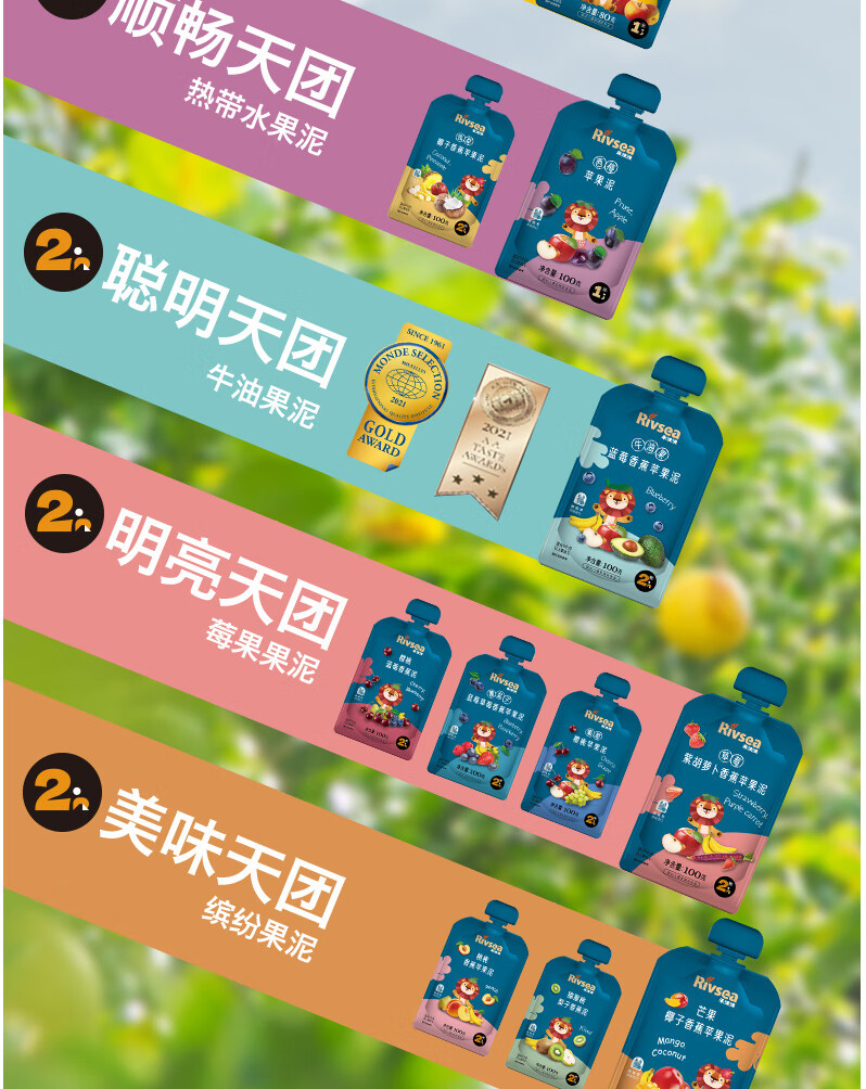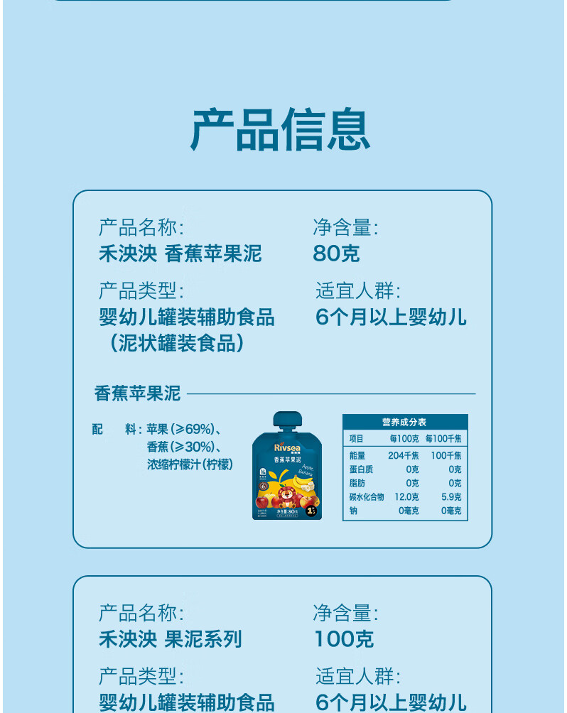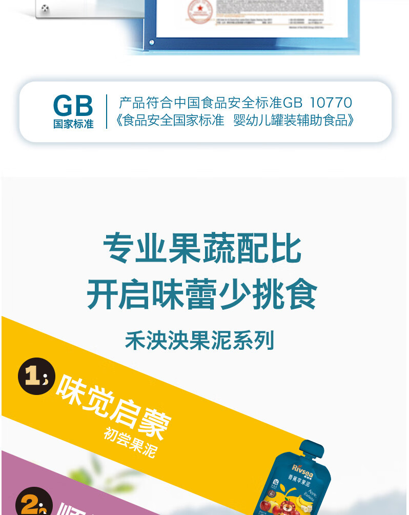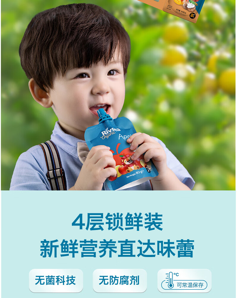 禾泱泱进口果泥 欧洲有机 婴幼儿6个月以上辅食水果泥泥 不添加白砂糖 2阶果泥推荐组合 100g*10袋