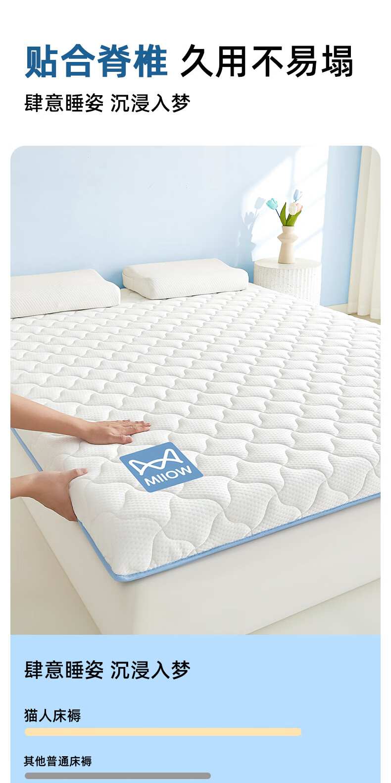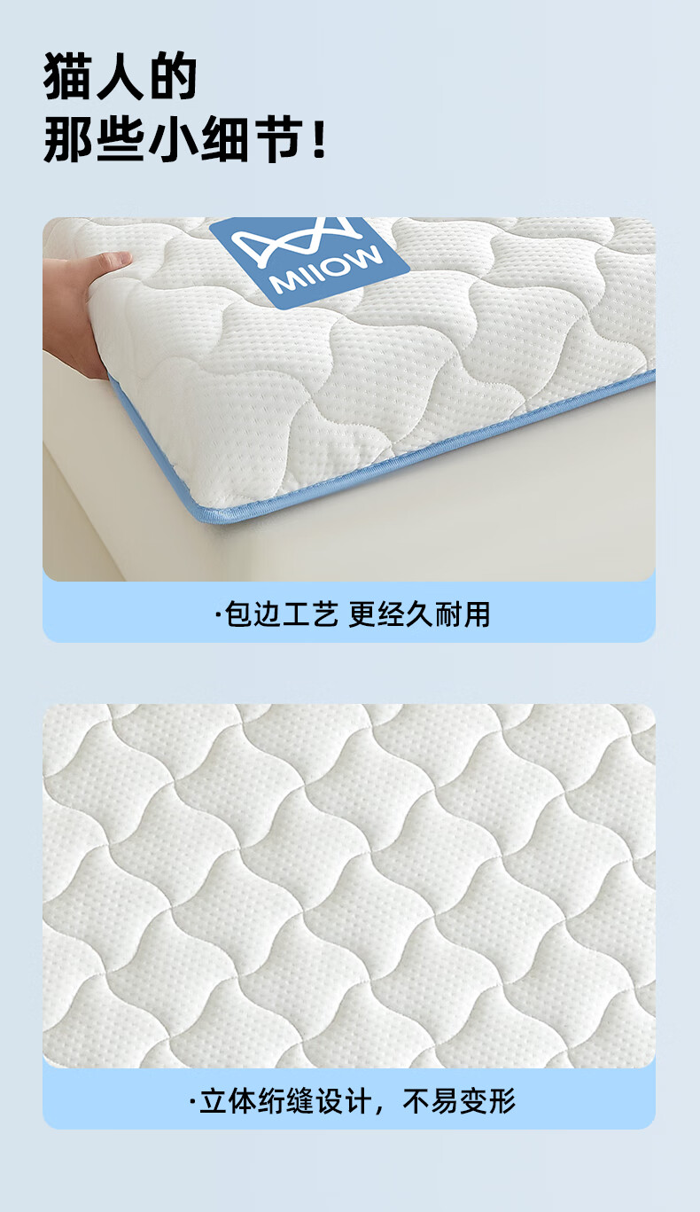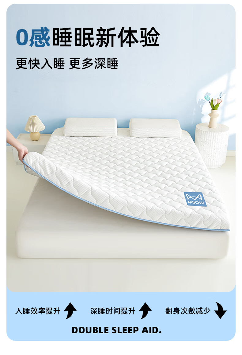猫人(MiiOW)乳胶记忆棉床垫遮盖物家用软垫180x200cm卧室单双人垫子宿舍住宿 猫猫风车白-蓝边【厚约9cm】 180x200cm【A类面料 久睡不塌】