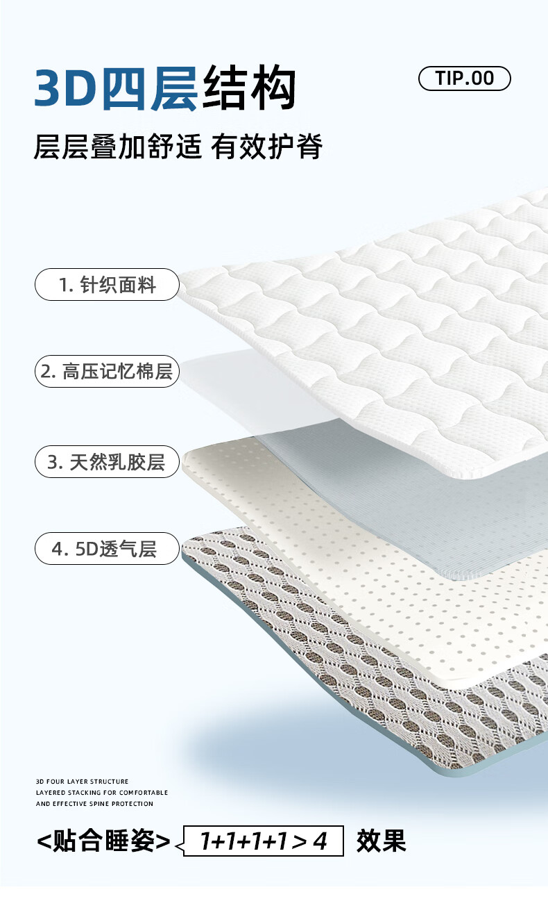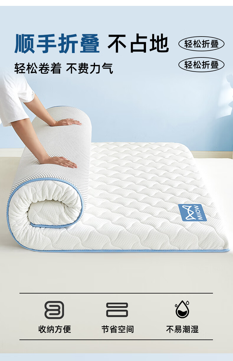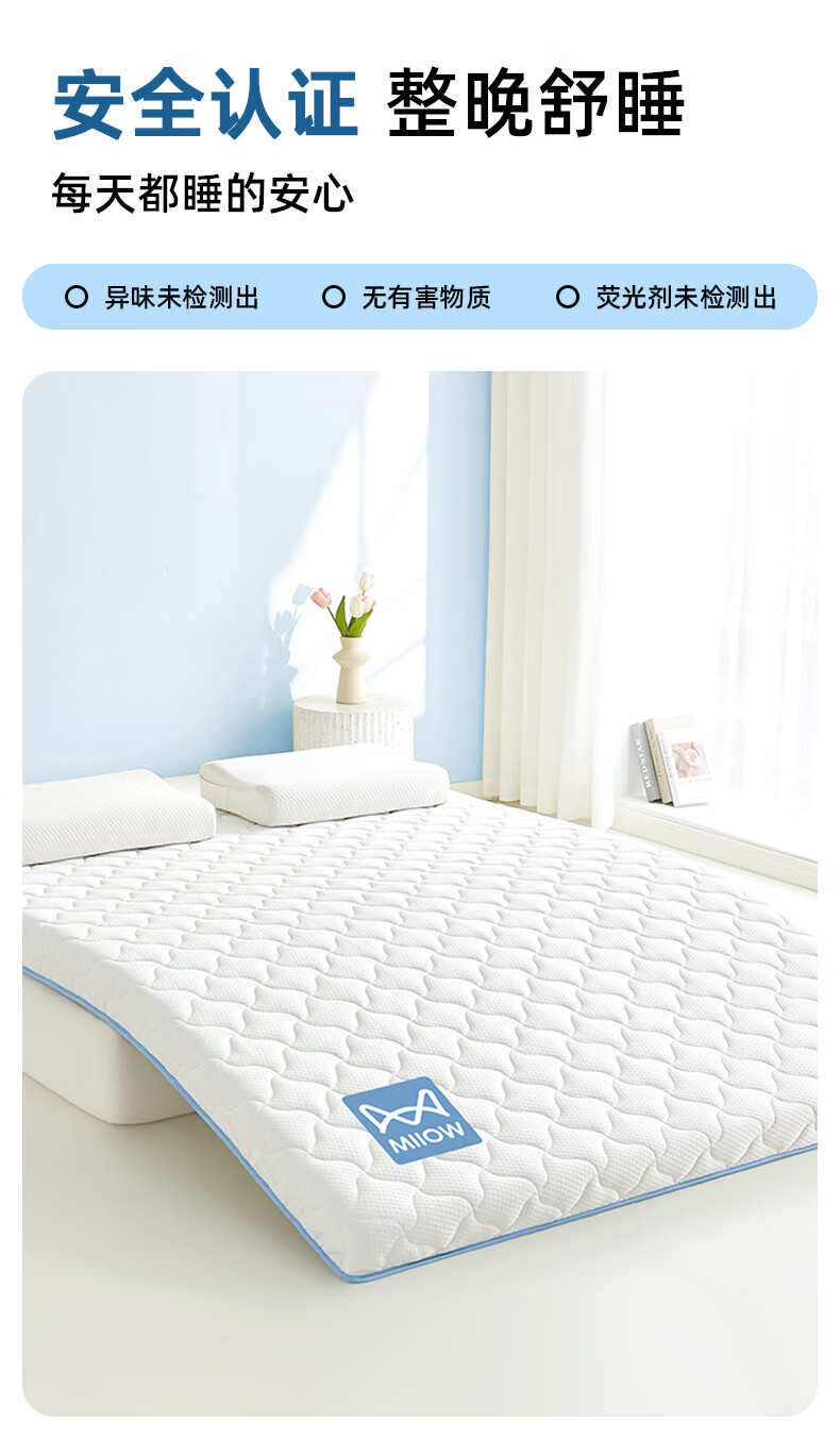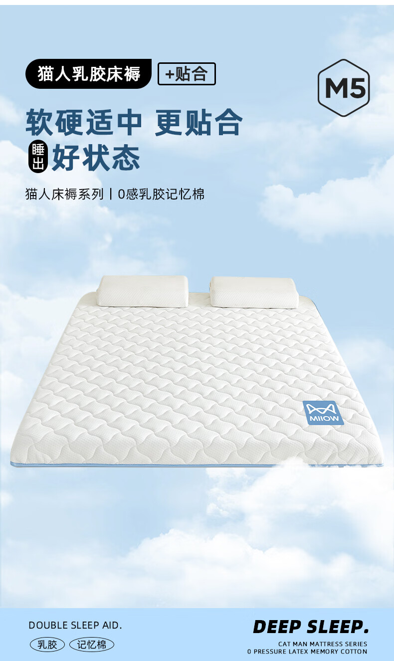 猫人(MiiOW)乳胶记忆棉床垫遮盖物家用软垫180x200cm卧室单双人垫子宿舍住宿 猫猫风车白-蓝边【厚约9cm】 180x200cm【A类面料 久睡不塌】