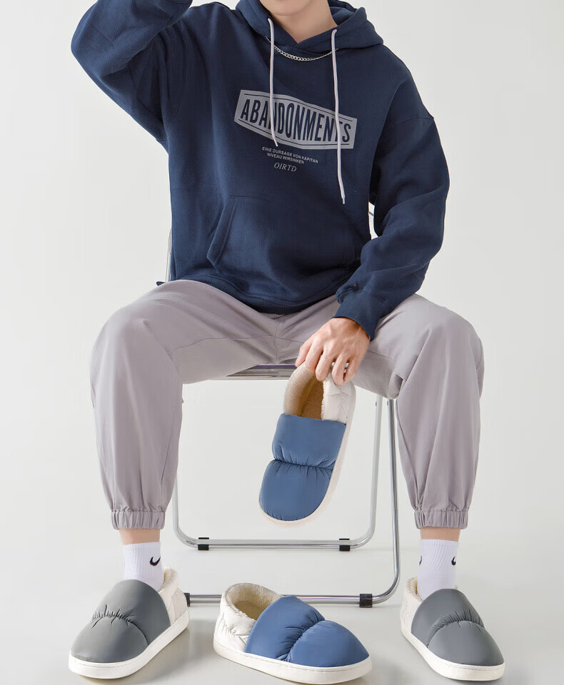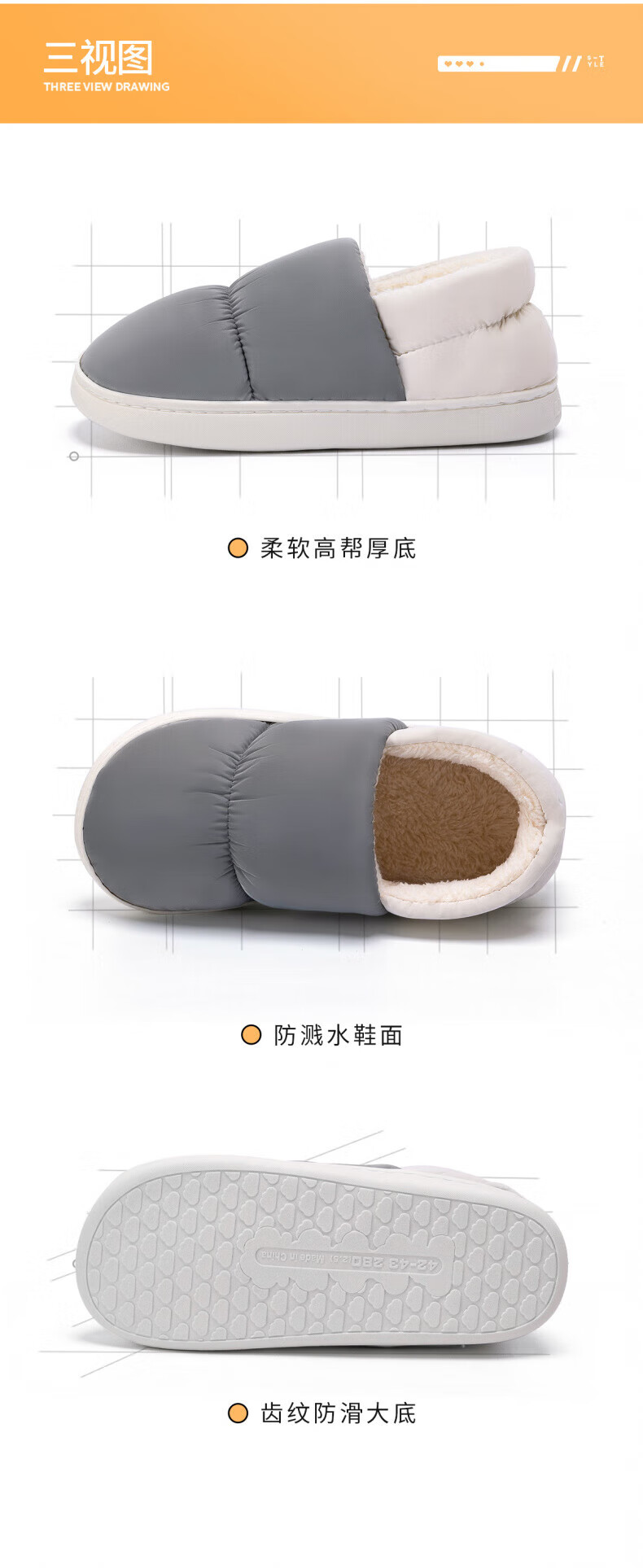 AILUKI日本防水棉拖鞋男士新款冬季包头防滑加绒包跟布棉鞋男款外穿 冷墨灰【防滑保暖】 41-42 42_-43【适合】