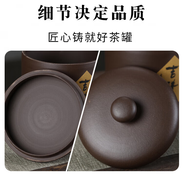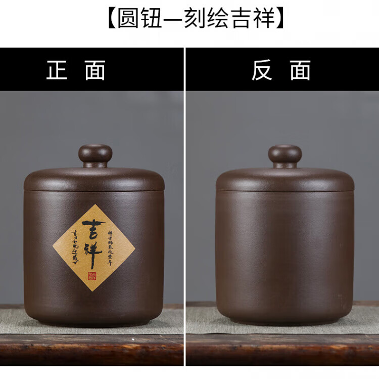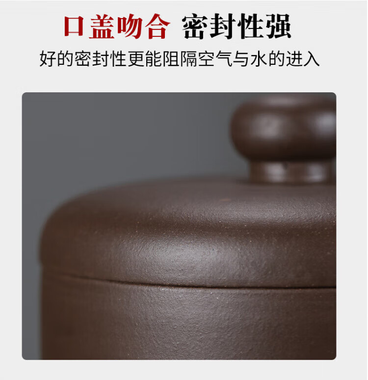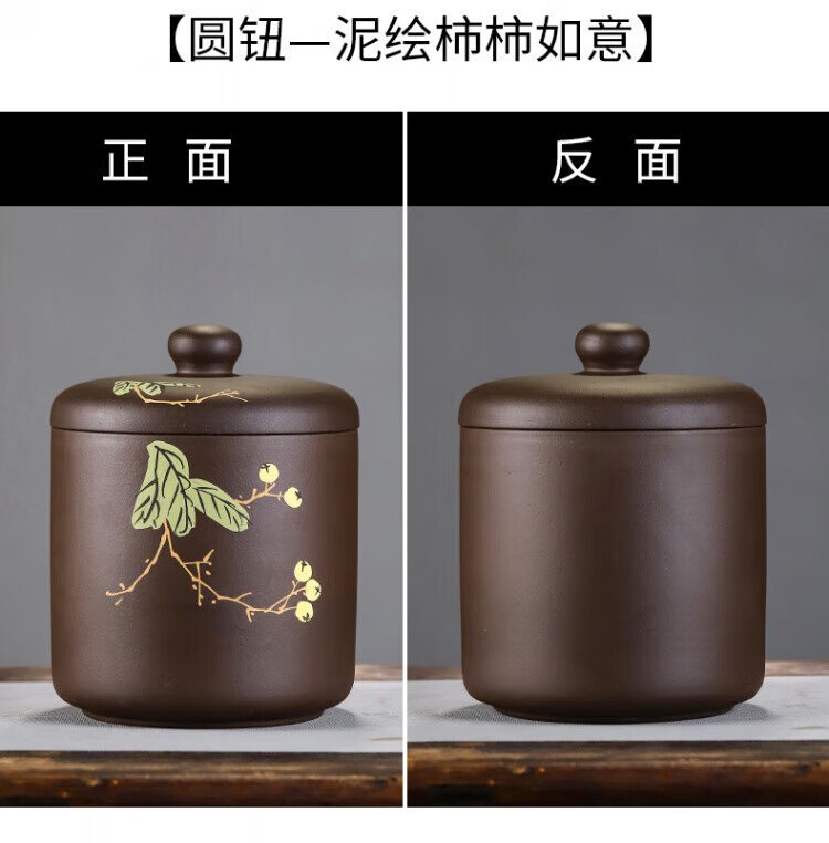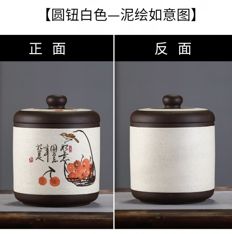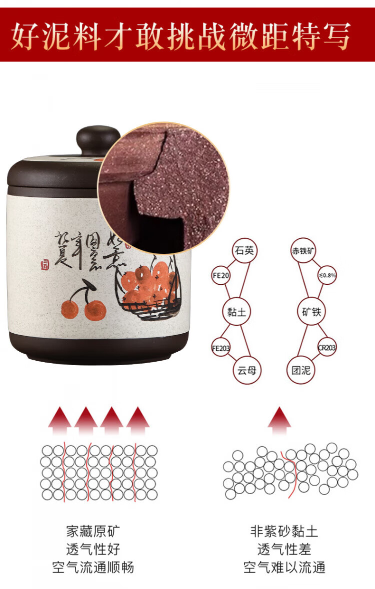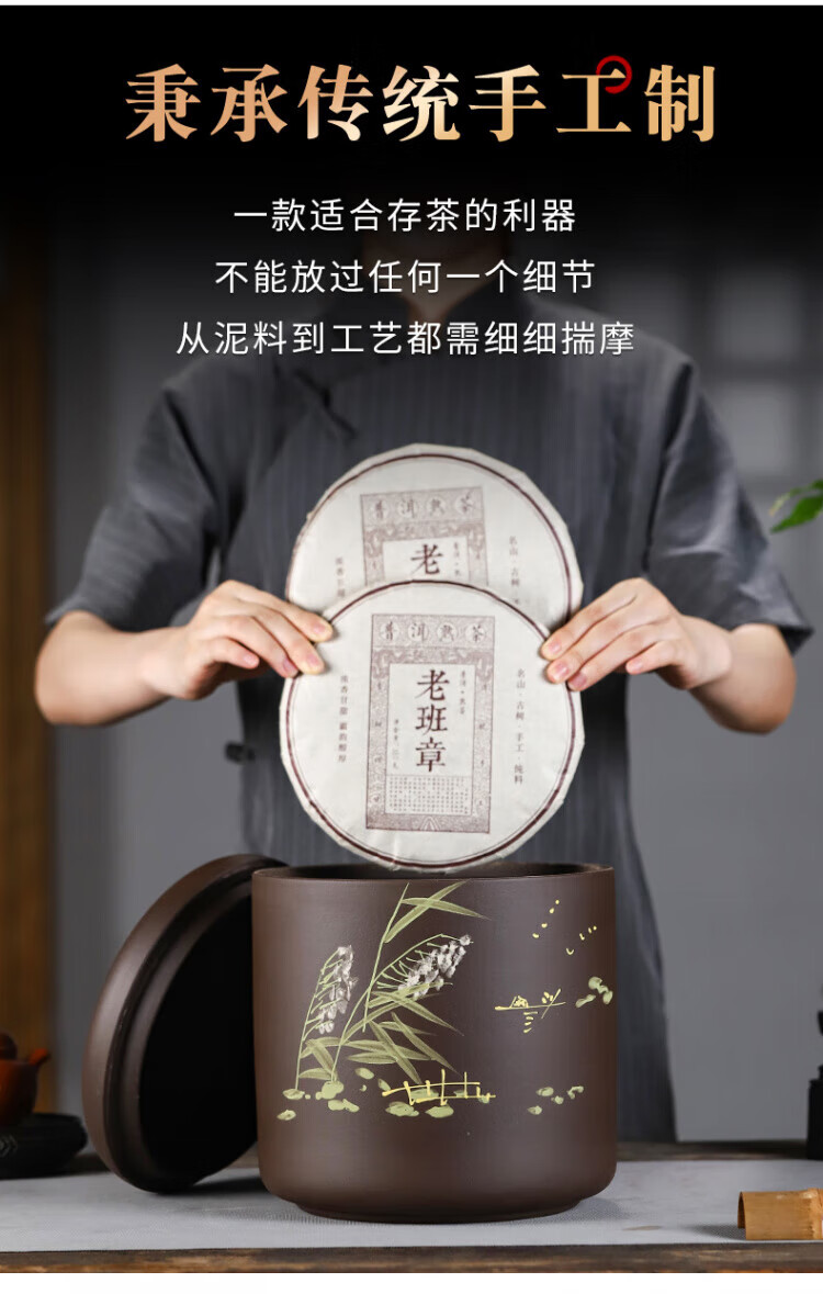 DEATKN德国宜兴紫砂茶叶罐七饼大号码普洱密封罐存储茶缸家用粗陶瓷茶叶 【7-圆钮红色】泥绘福禄双全 9饼