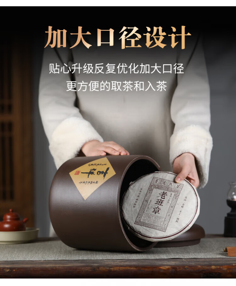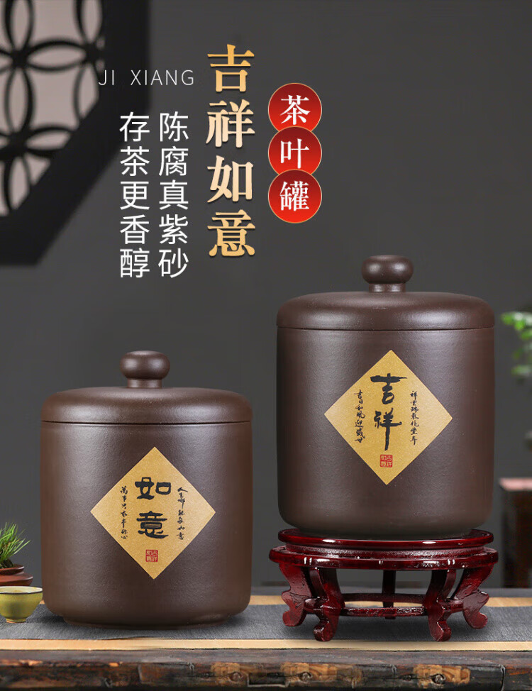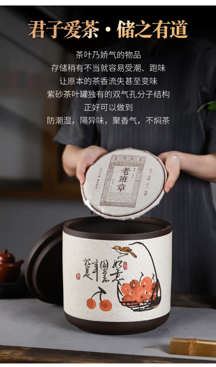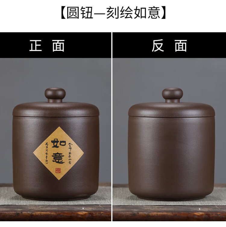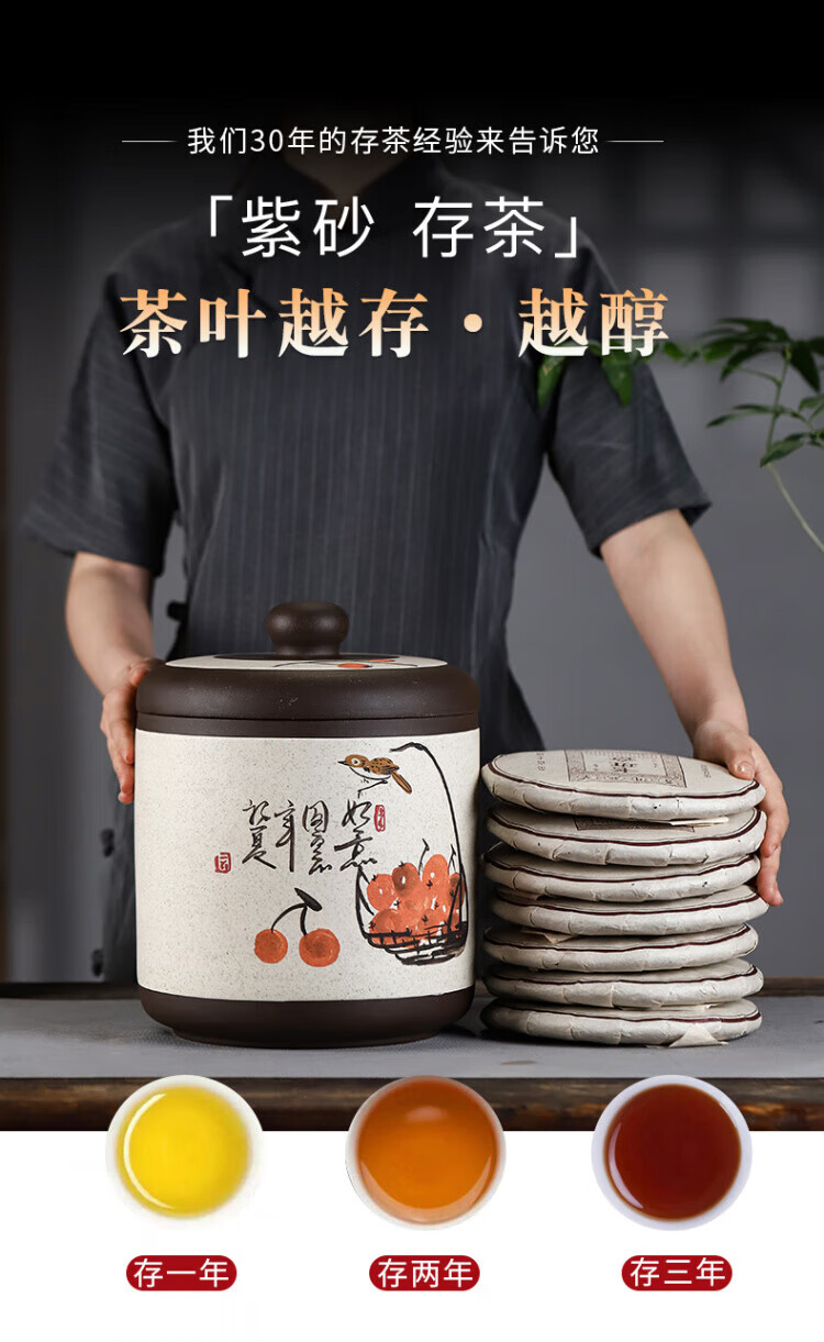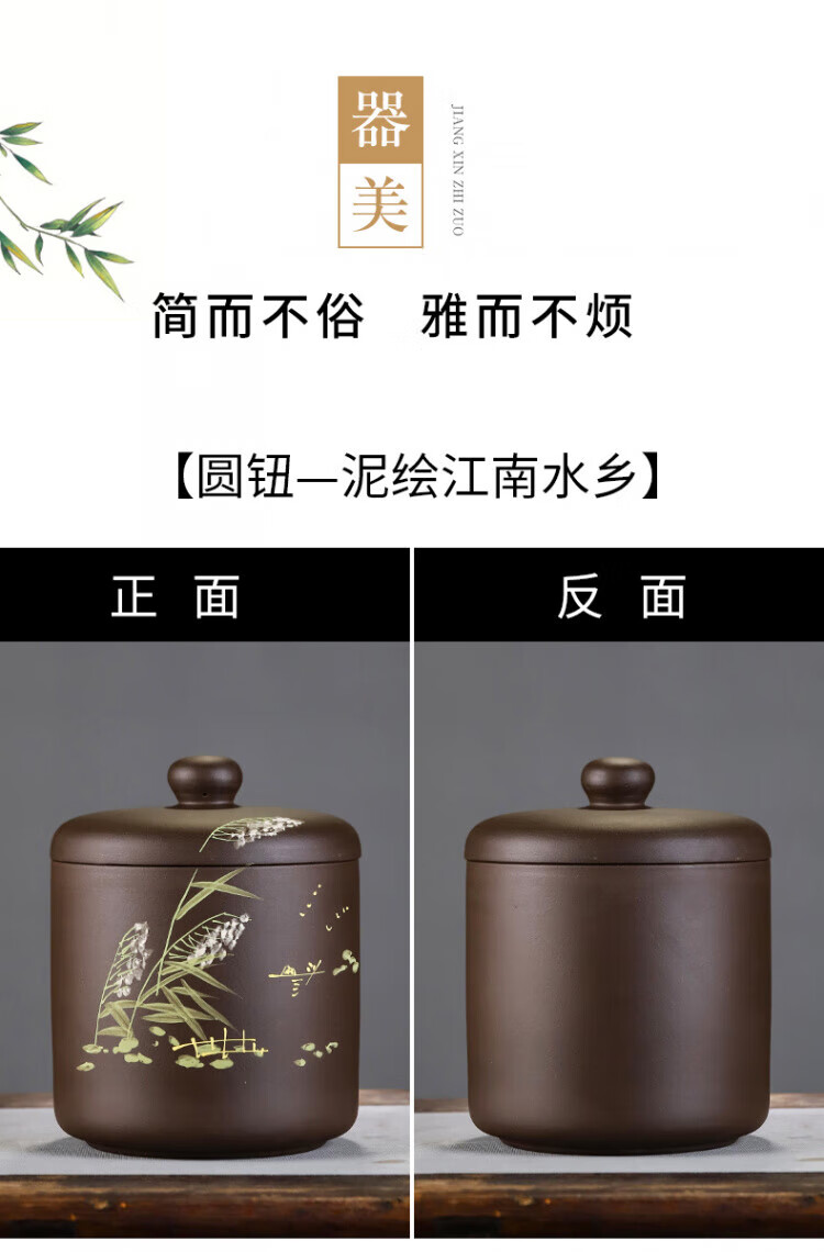 DEATKN德国宜兴紫砂茶叶罐七饼大号码普洱密封罐存储茶缸家用粗陶瓷茶叶 【7-圆钮红色】泥绘福禄双全 9饼