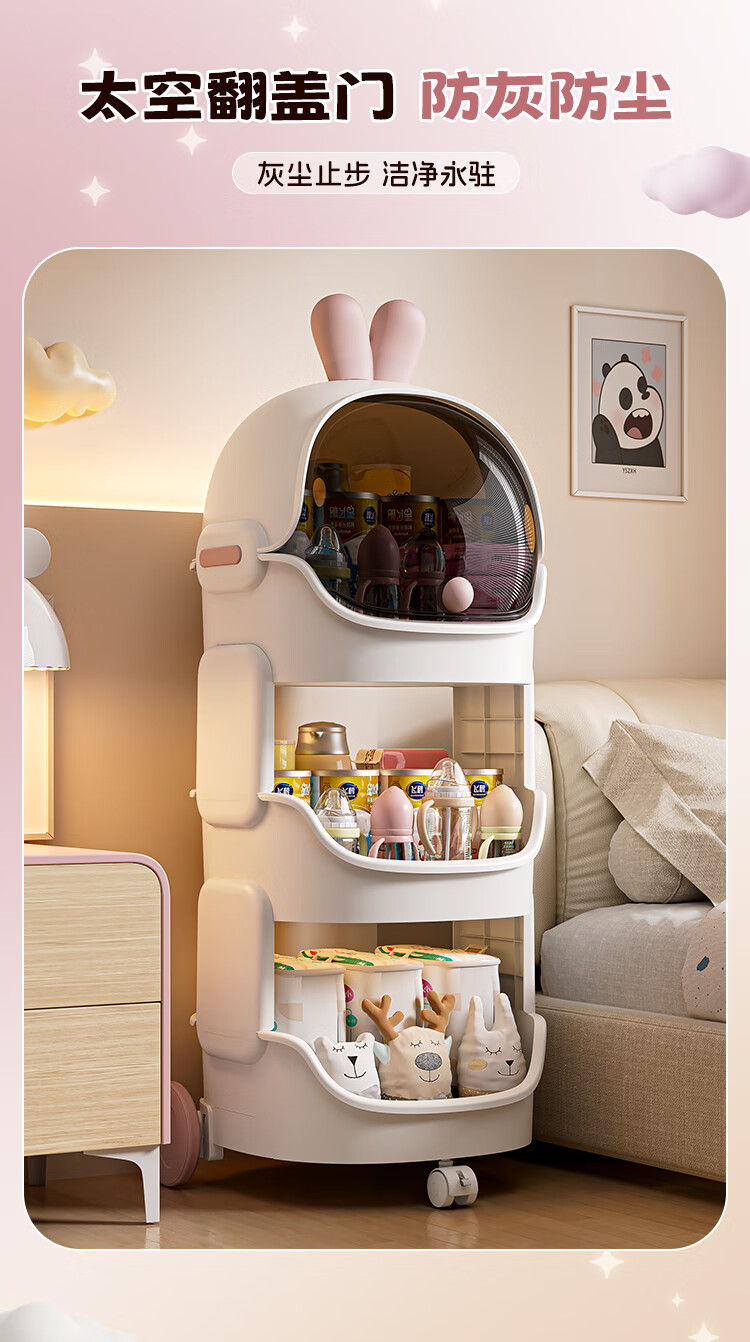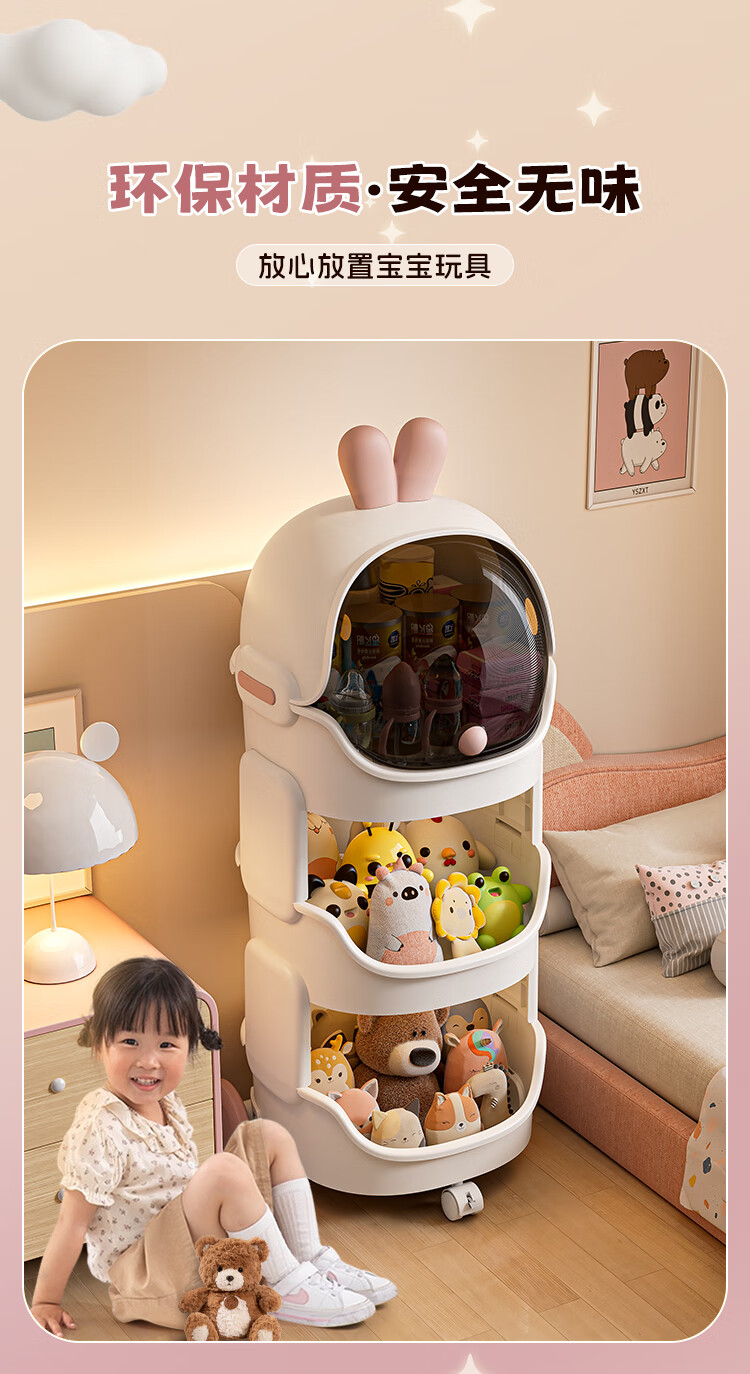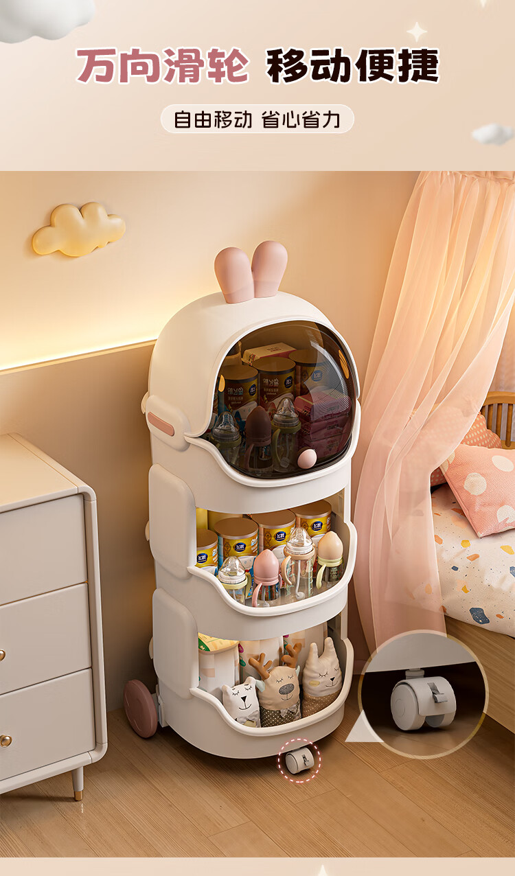 BABY VIEW儿童玩具收纳架零食置物柜多层绘本书架家用可移动整理架 暖白色