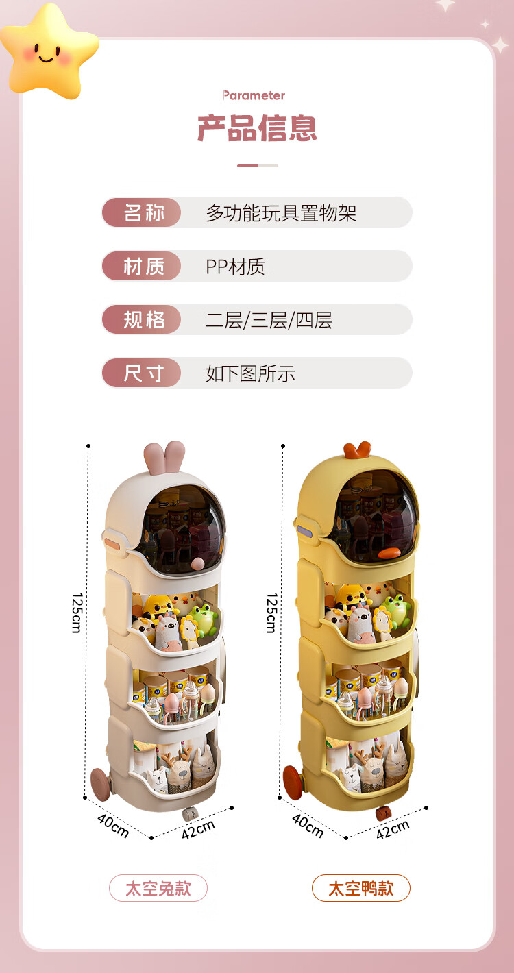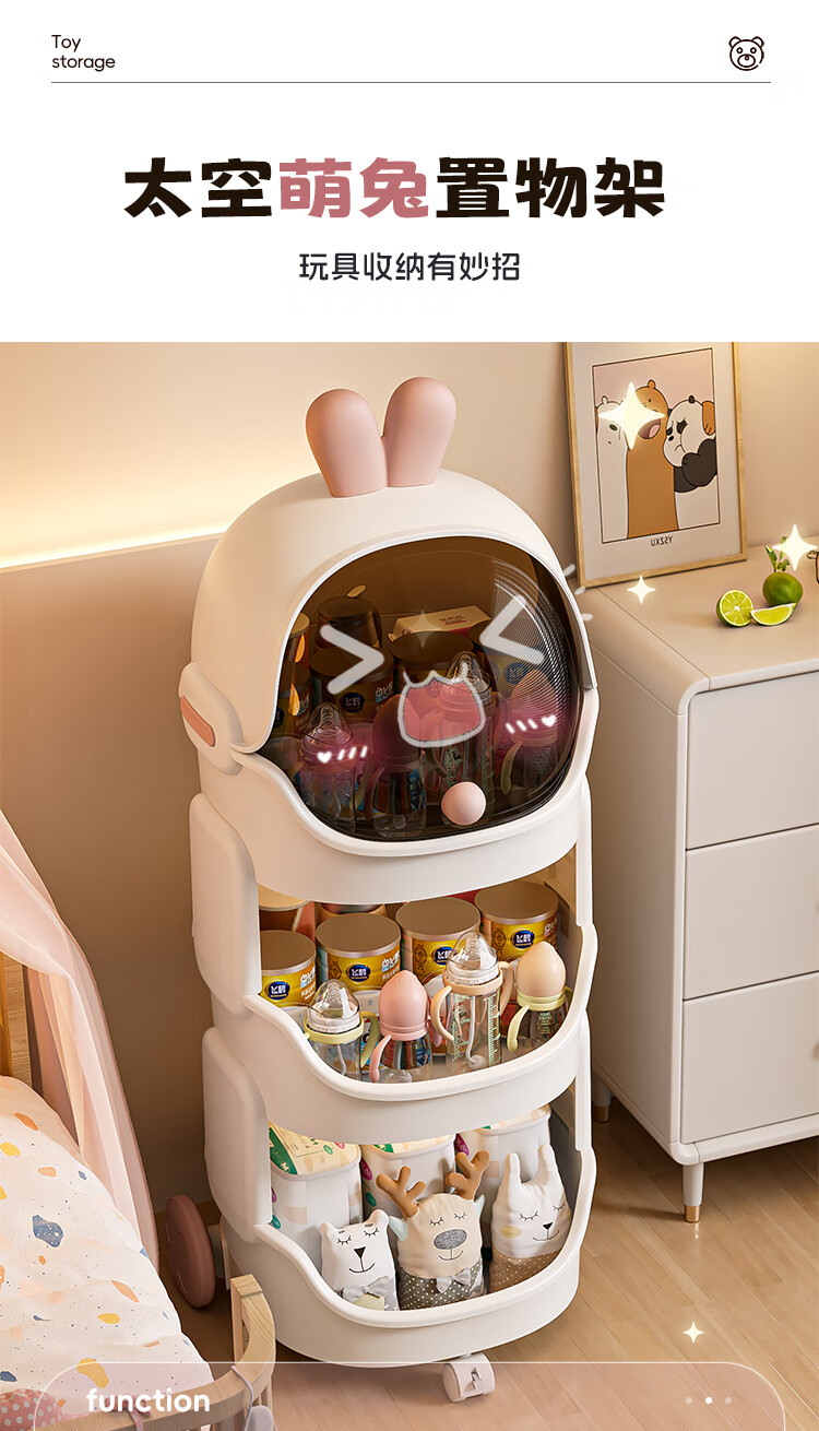 WCZ德国卡通床头置物架婴儿物品零食玩具收纳架床边夹缝多层可移动 气可爱太空兔 2层