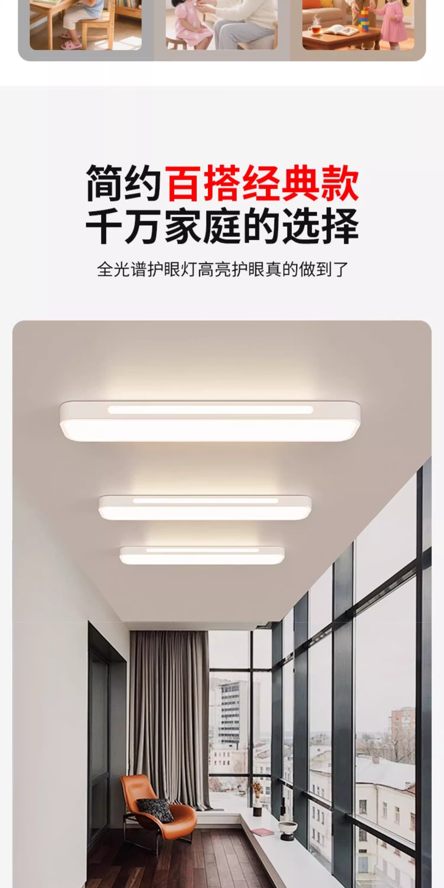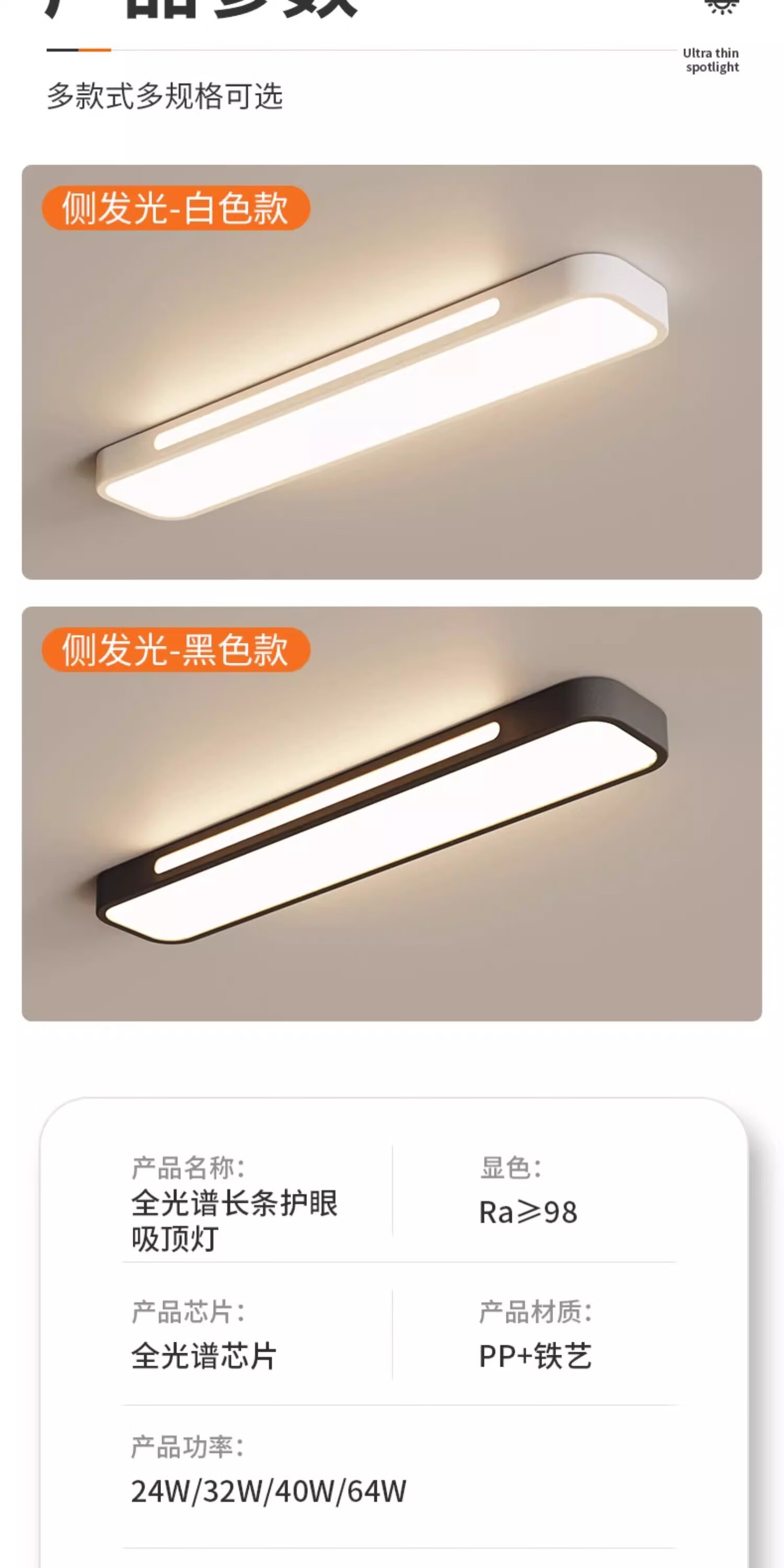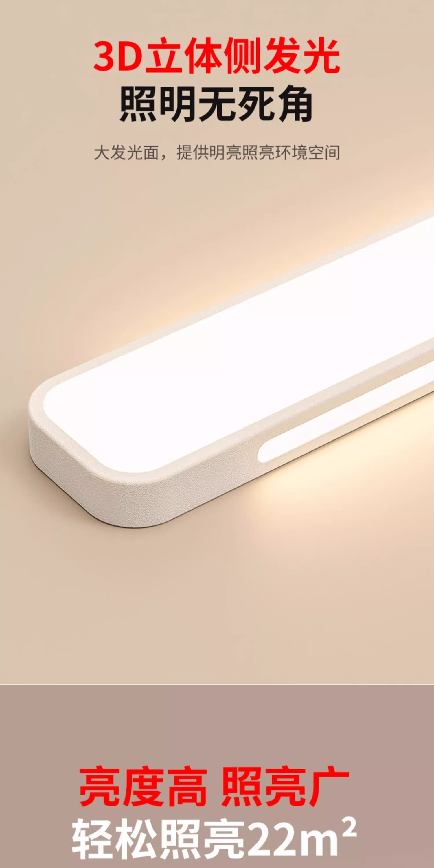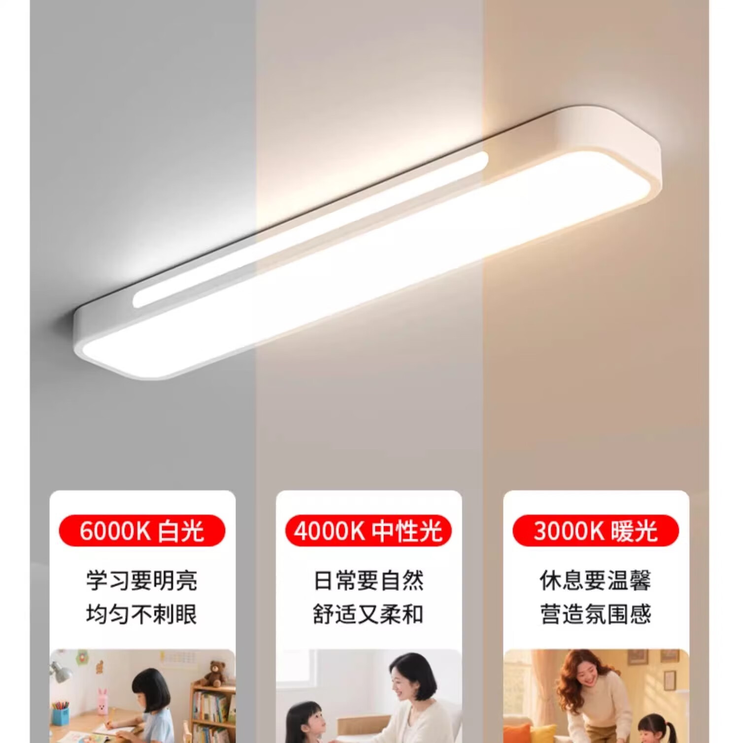 拉伯塔(LABOT)办公护眼长条吸顶灯全光谱led条形灯明亮教室商场超市健身房专用 雅白-40W-80cm-三色变光 【全光谱长条灯】
