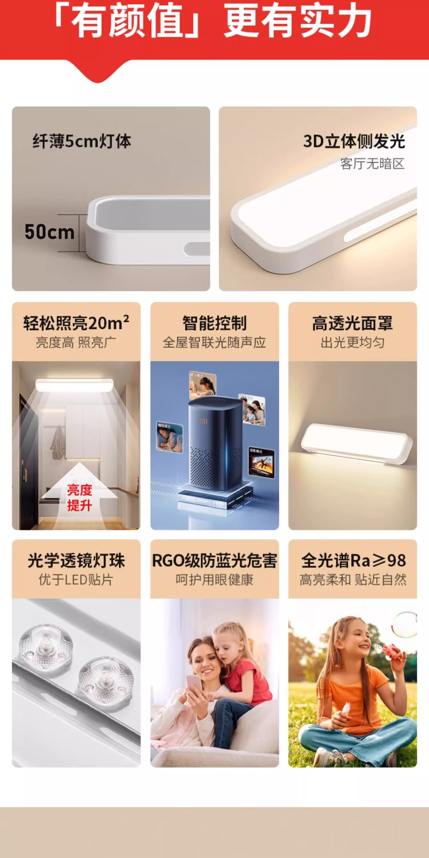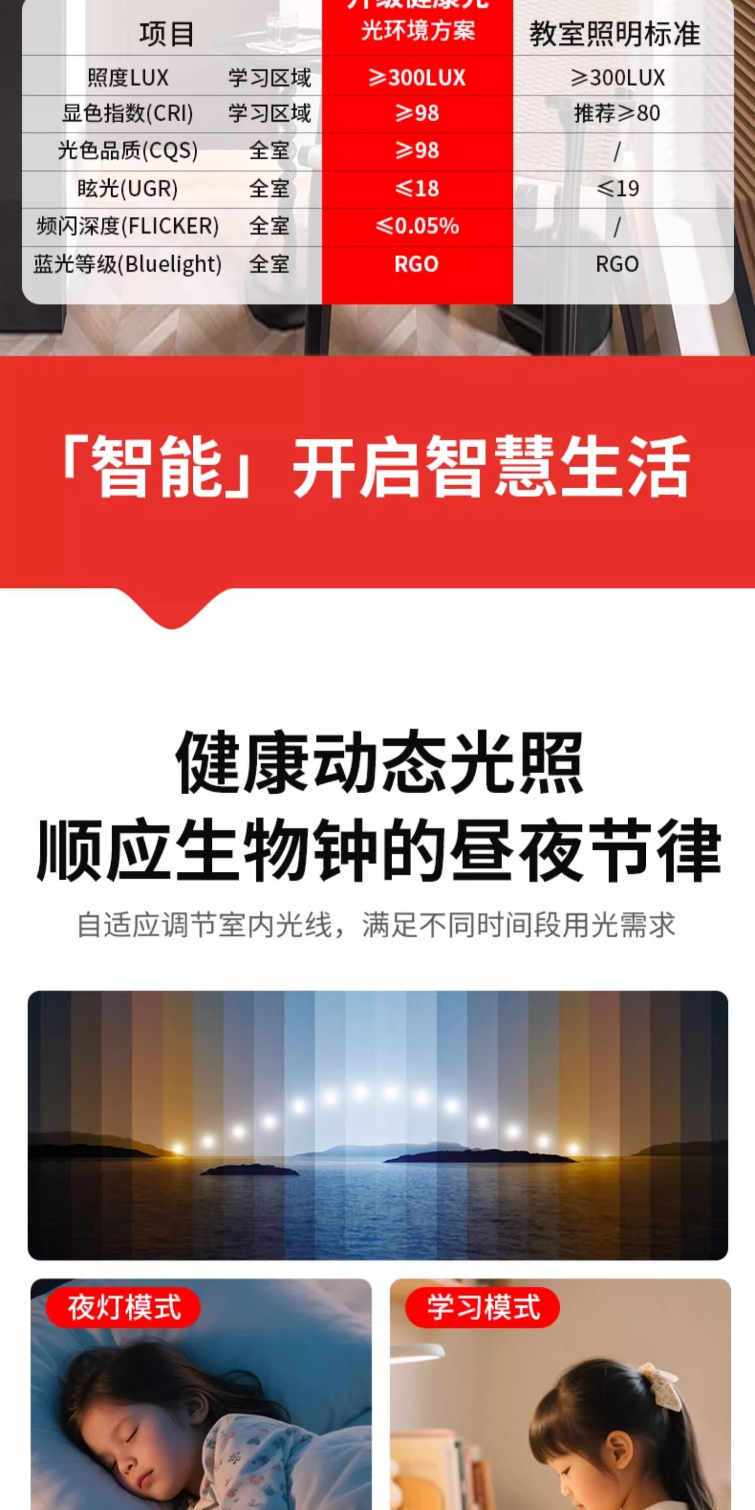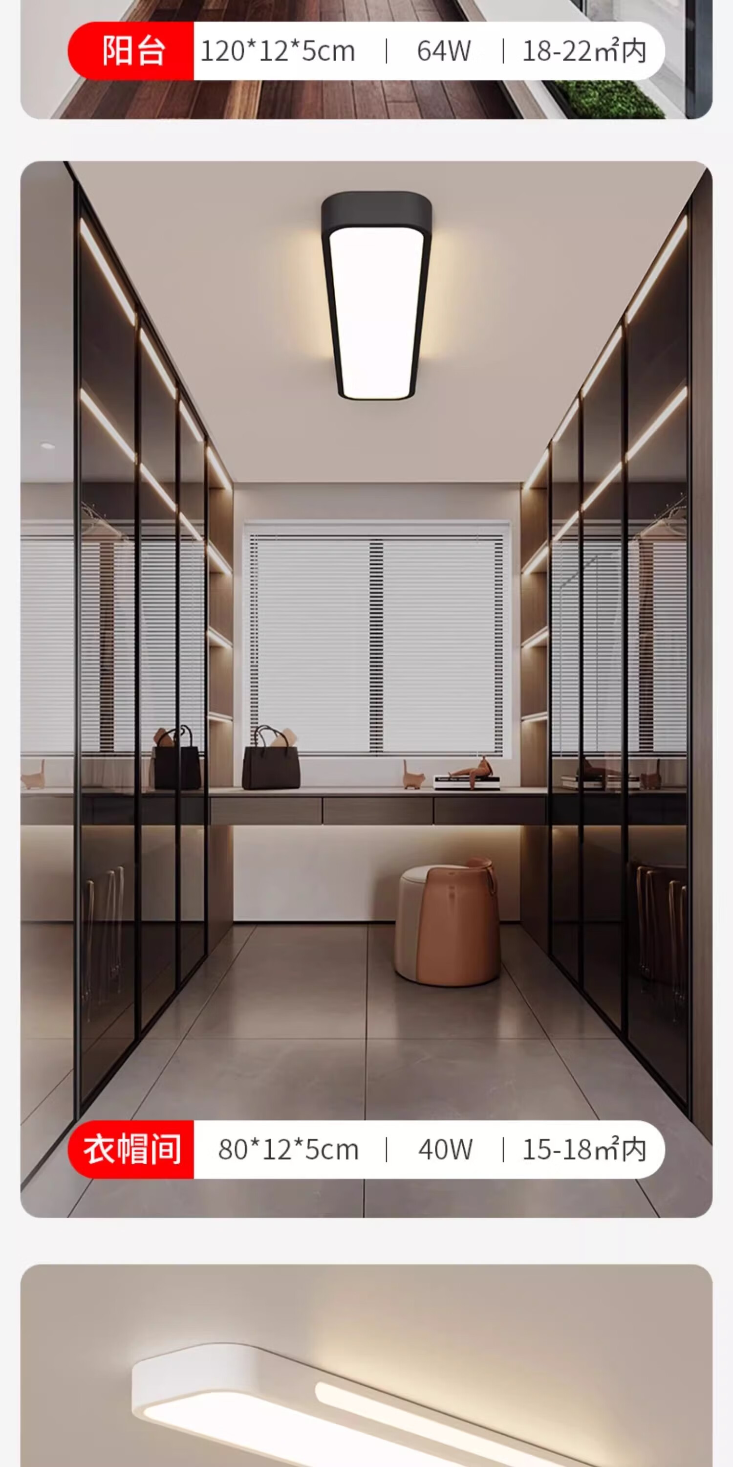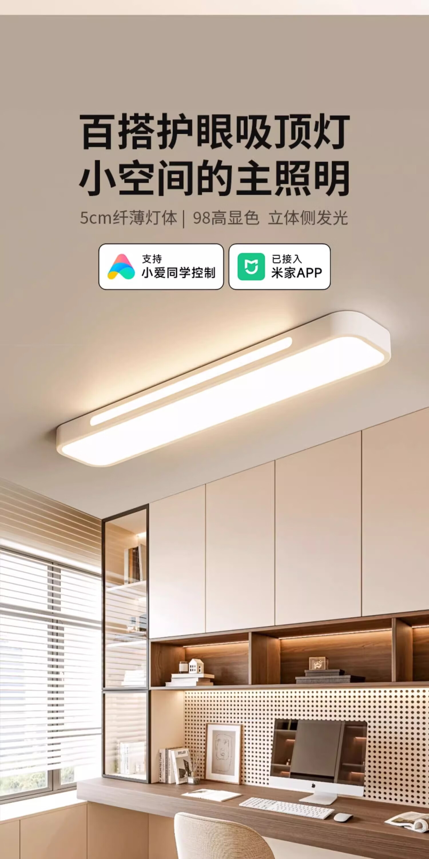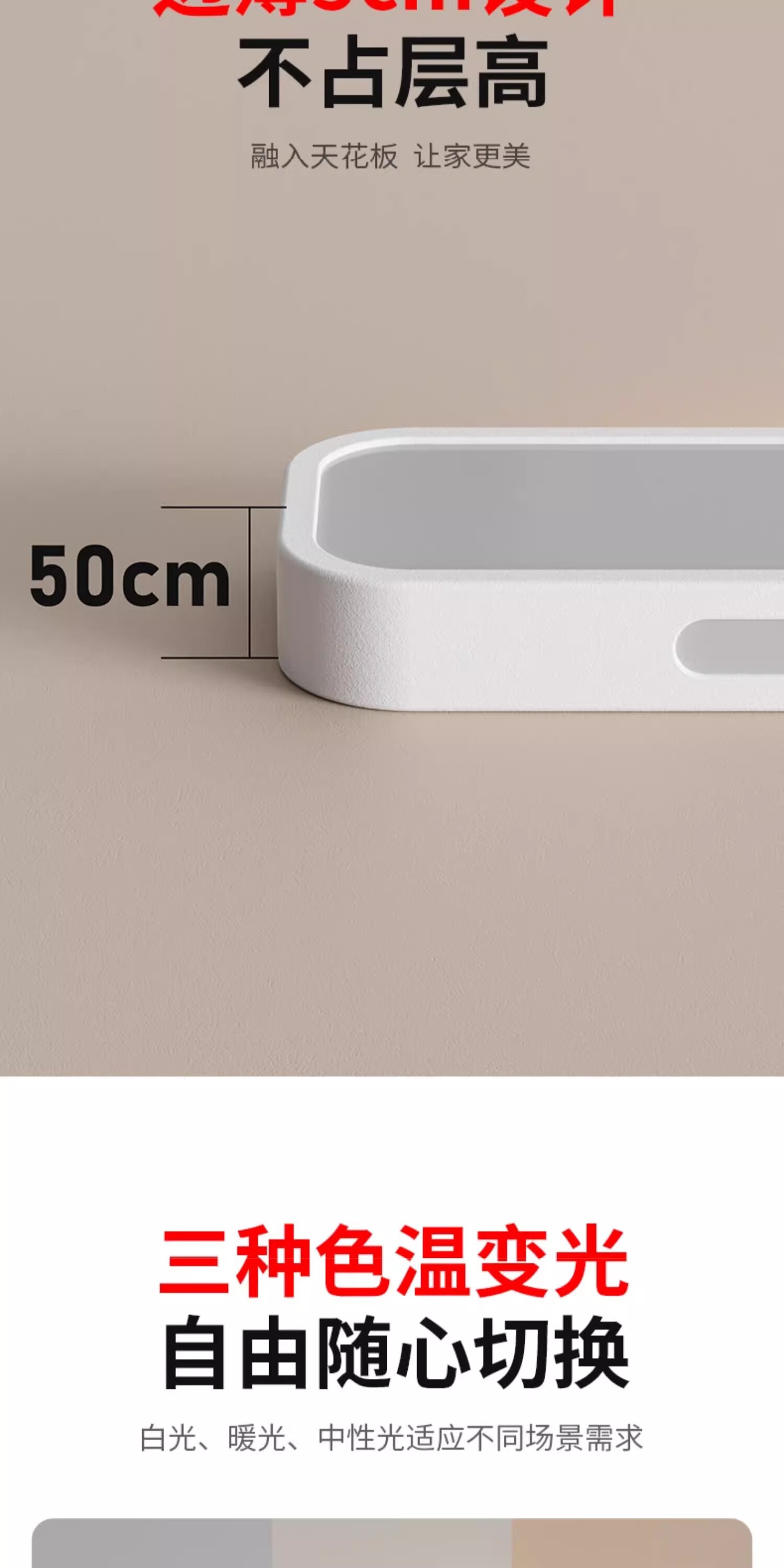 拉伯塔(LABOT)办公护眼长条吸顶灯全光谱led条形灯明亮教室商场超市健身房专用 雅白-40W-80cm-三色变光 【全光谱长条灯】