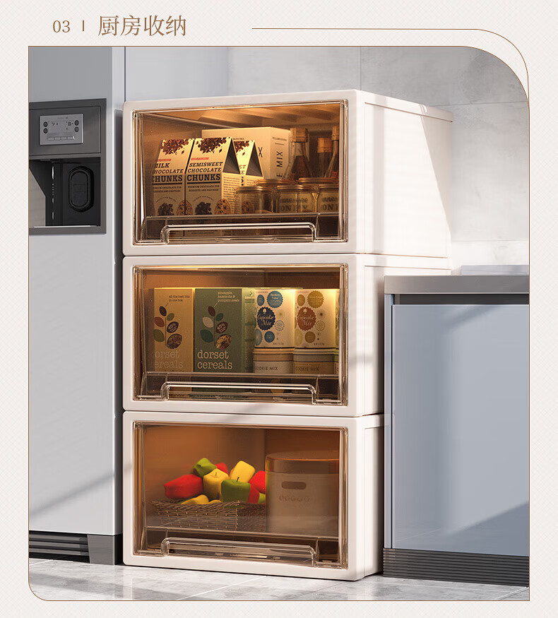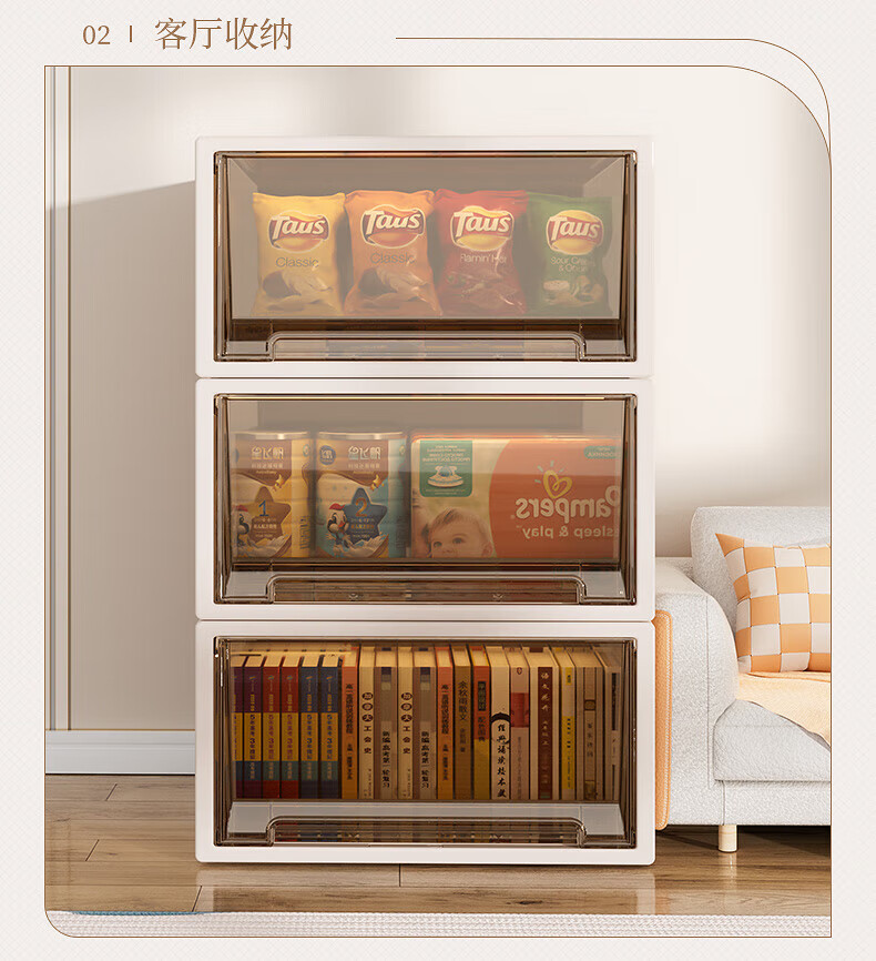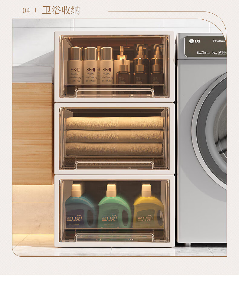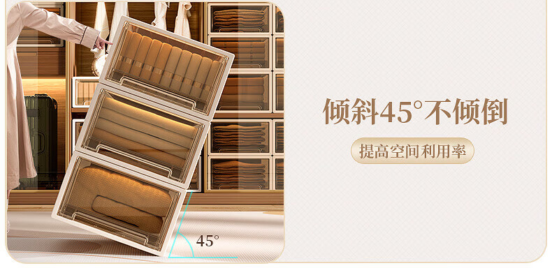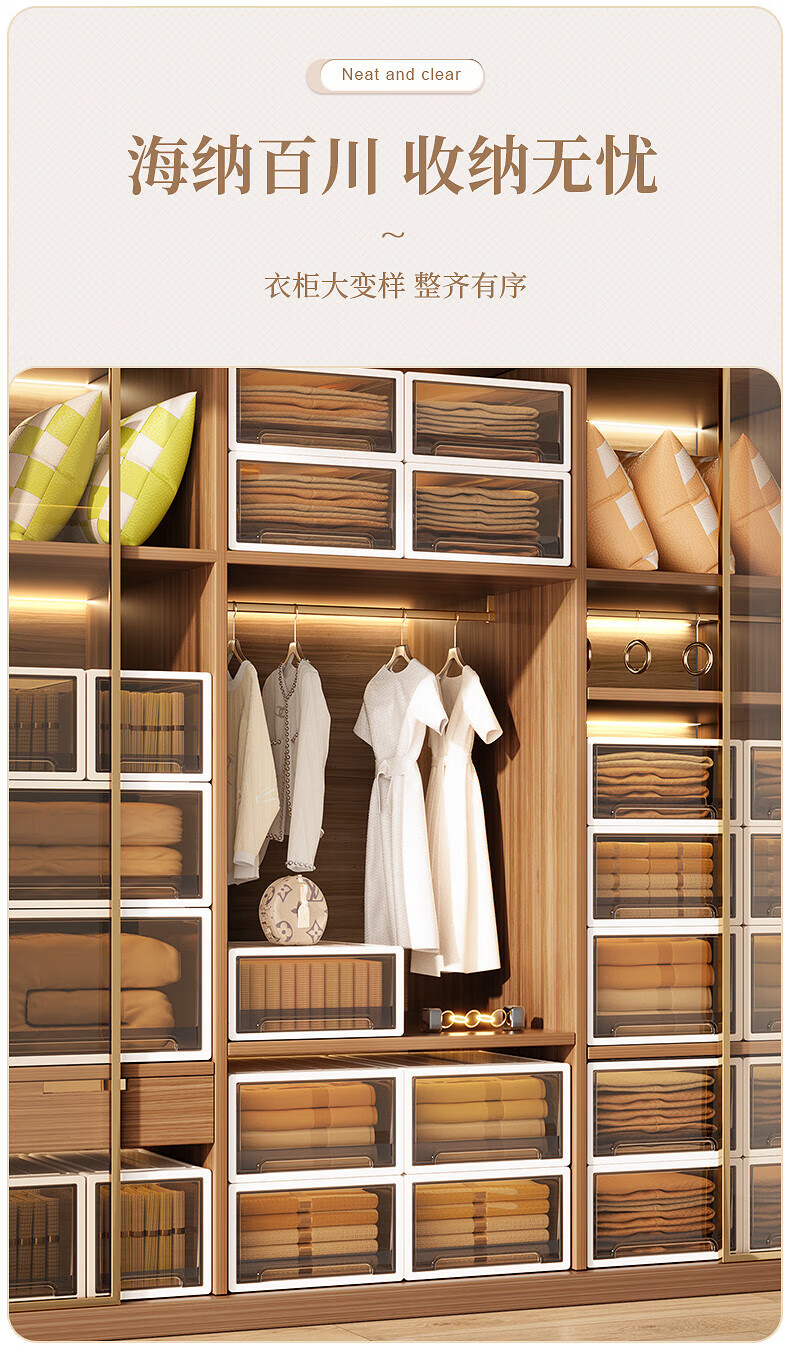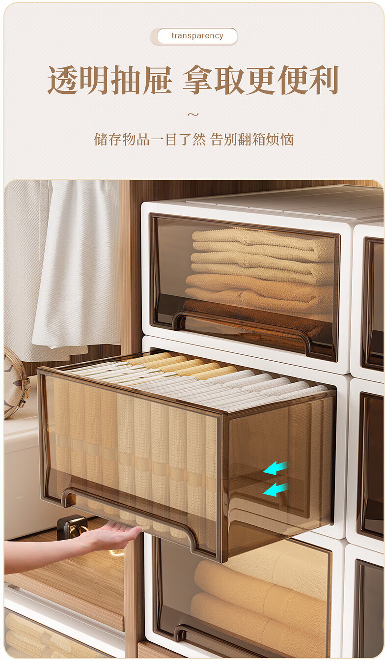 稻草熊(DOCOXO)抽屉式收纳箱透明衣柜大号衣服整理箱超大号储物箱塑料收纳柜子 深37*宽26*高14.2 杏色外壳+茶色抽屉【1个装】