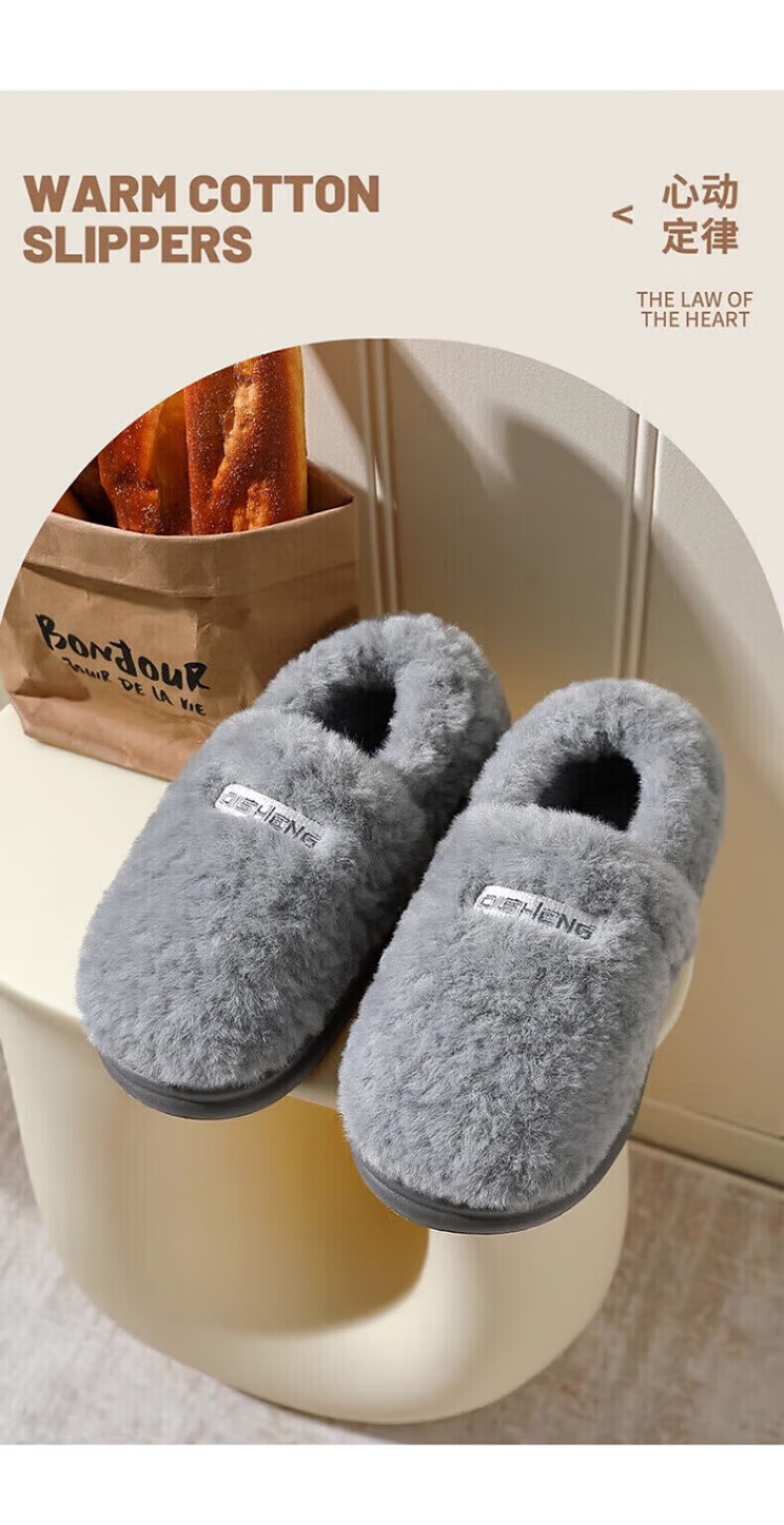 DEATKN德国买1送1棉拖鞋情侣秋冬季室内家居一对保暖厚底毛毛绒女 皮红+灰色[居家] 38-39 女+男42-43