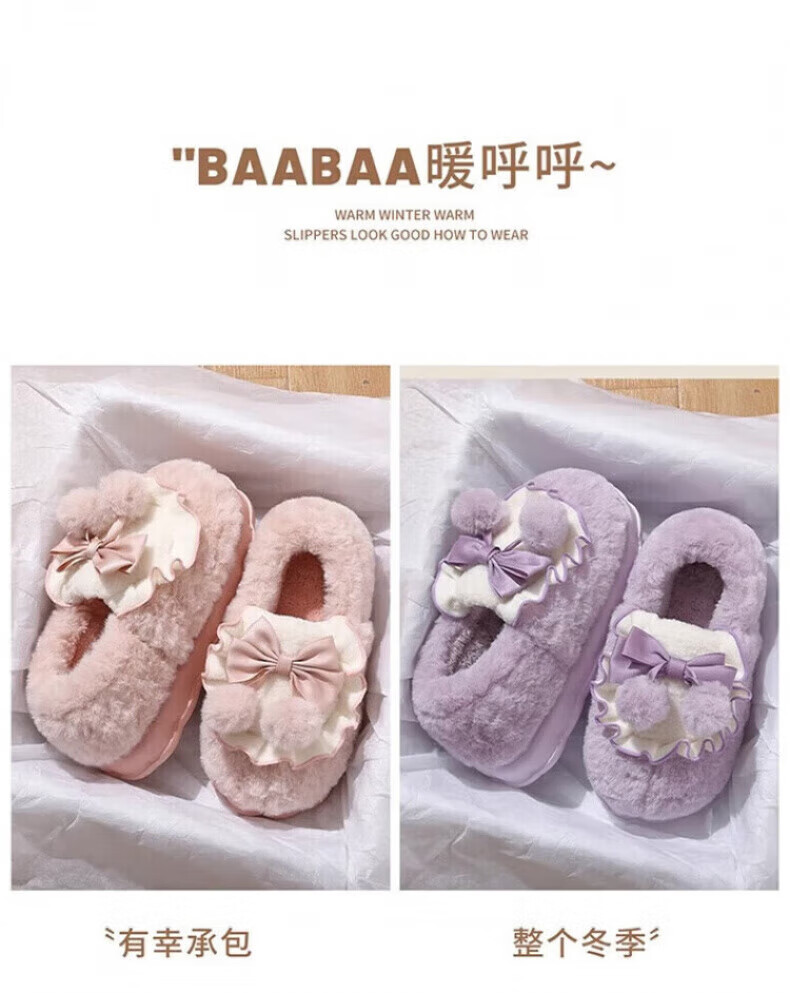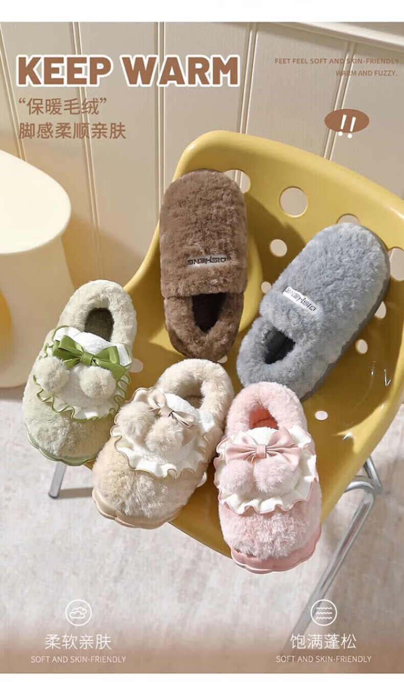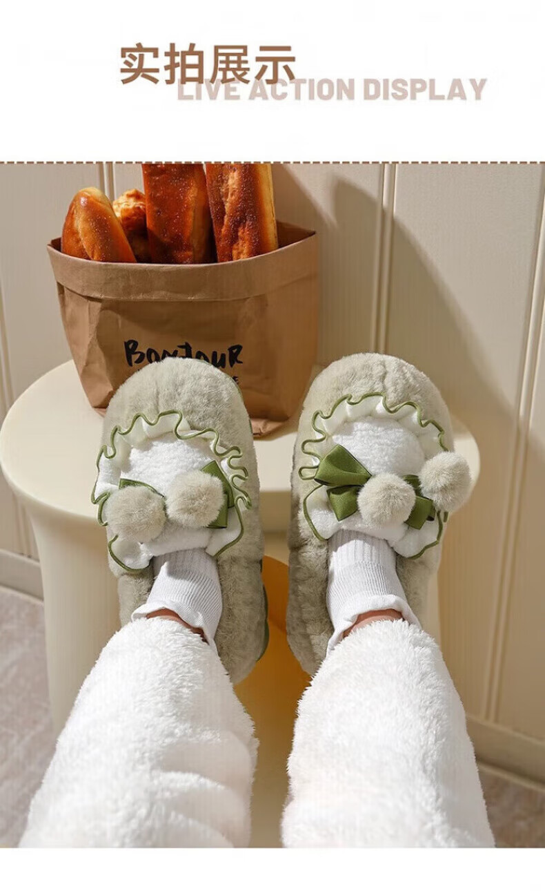 DEATKN【德国】棉拖鞋女士秋冬季2025新款包跟孕妇居家防滑厚底保 绿色[蝴蝶结] 36-37 (建议35/36的脚)
