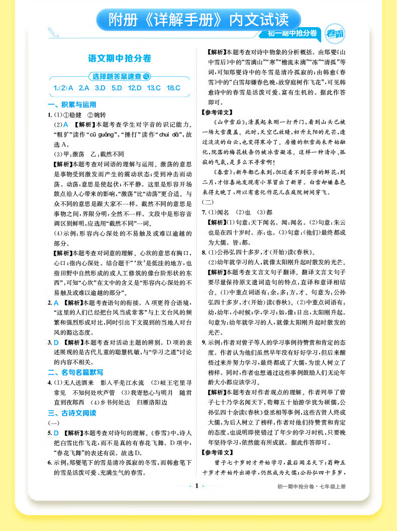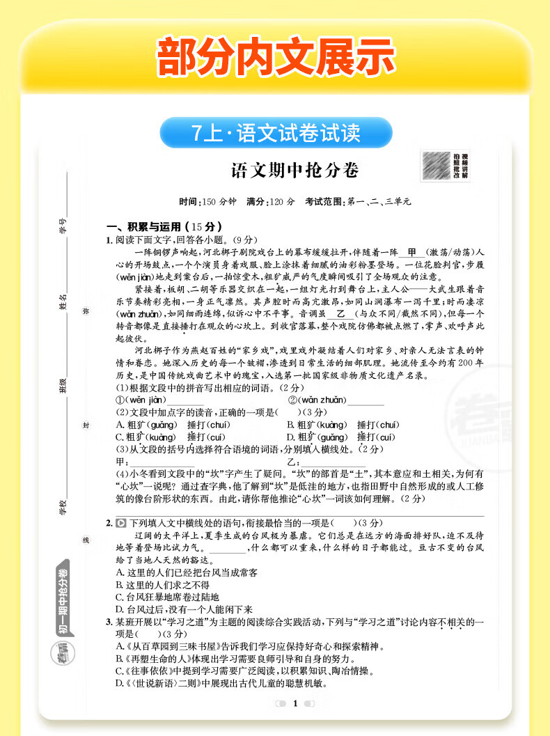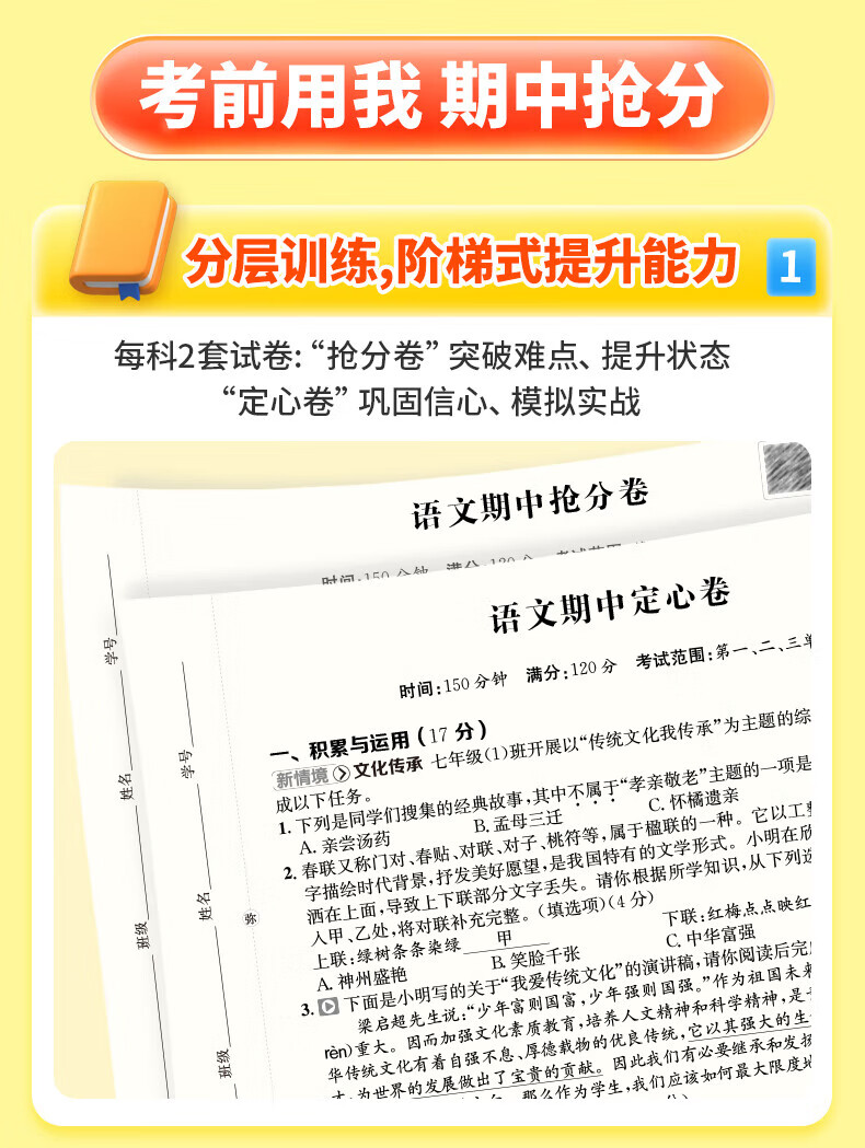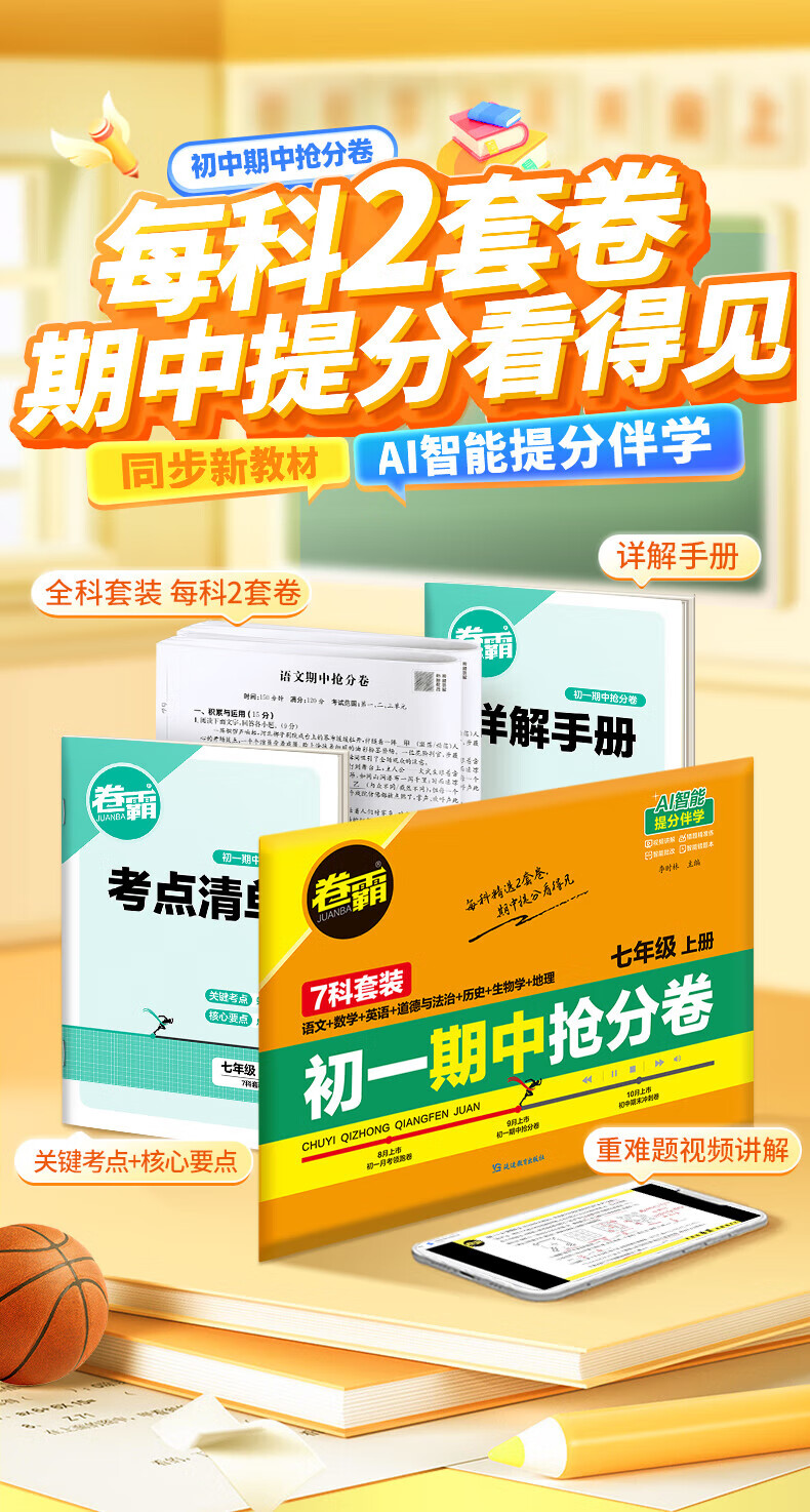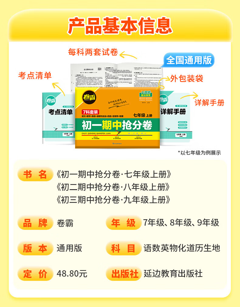 2026卷霸初中期中抢分卷初一初二初三语文数学英语生物历史地理道德与法治七八九年级总复习期末冲刺测试卷人教版练习题期中抢分卷 【七年级上册】语数英政史地生(7科套装)