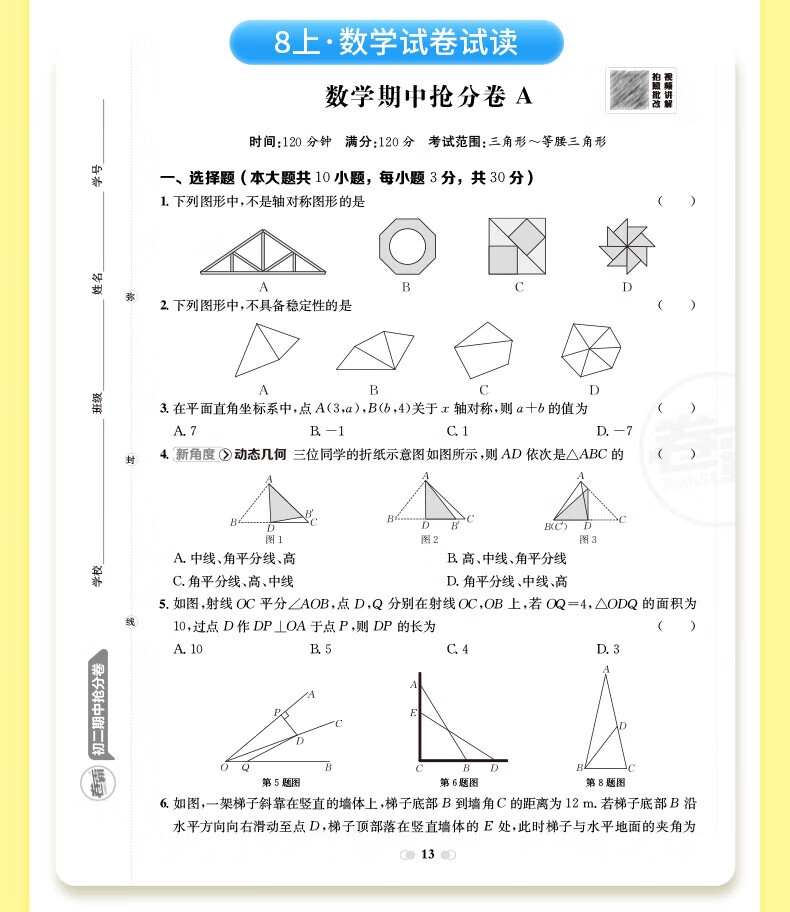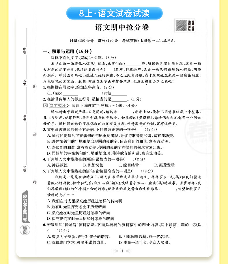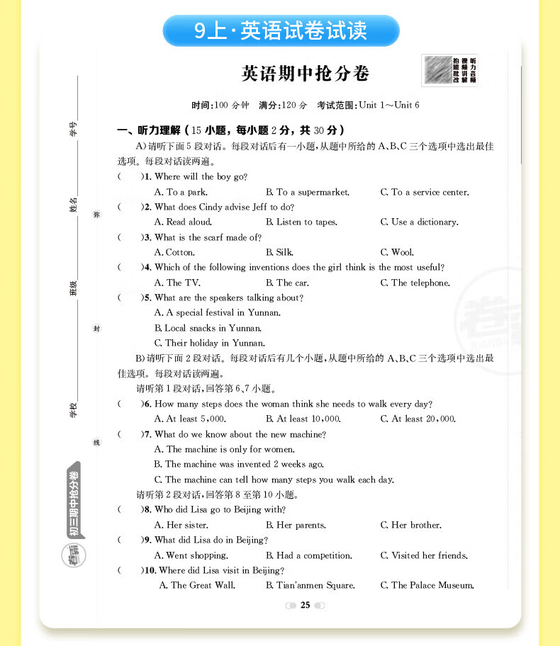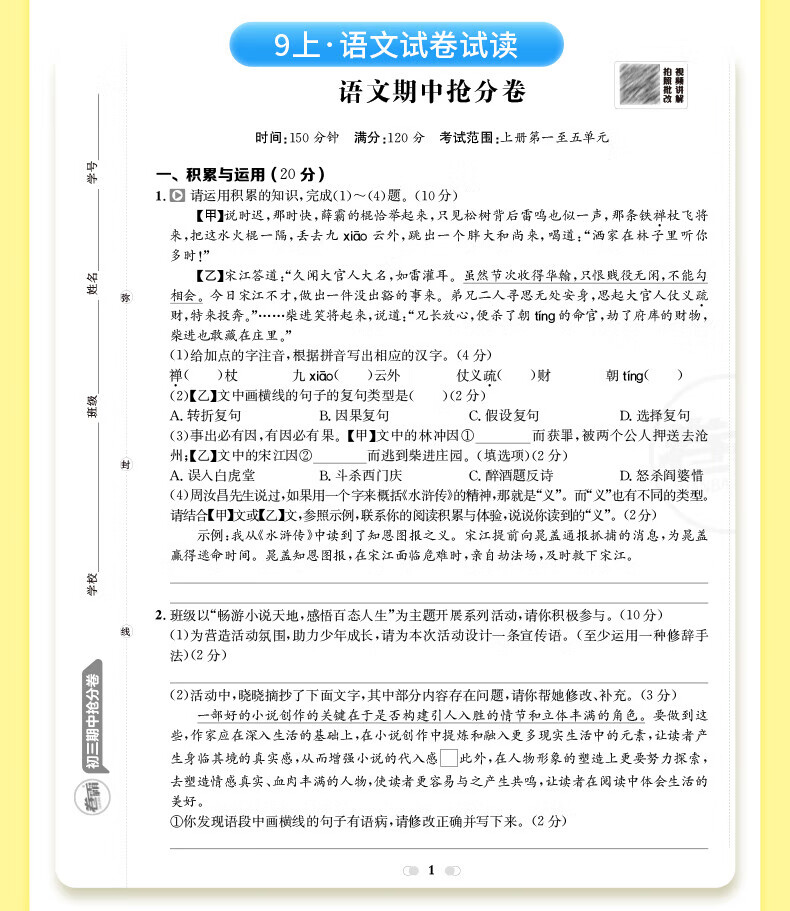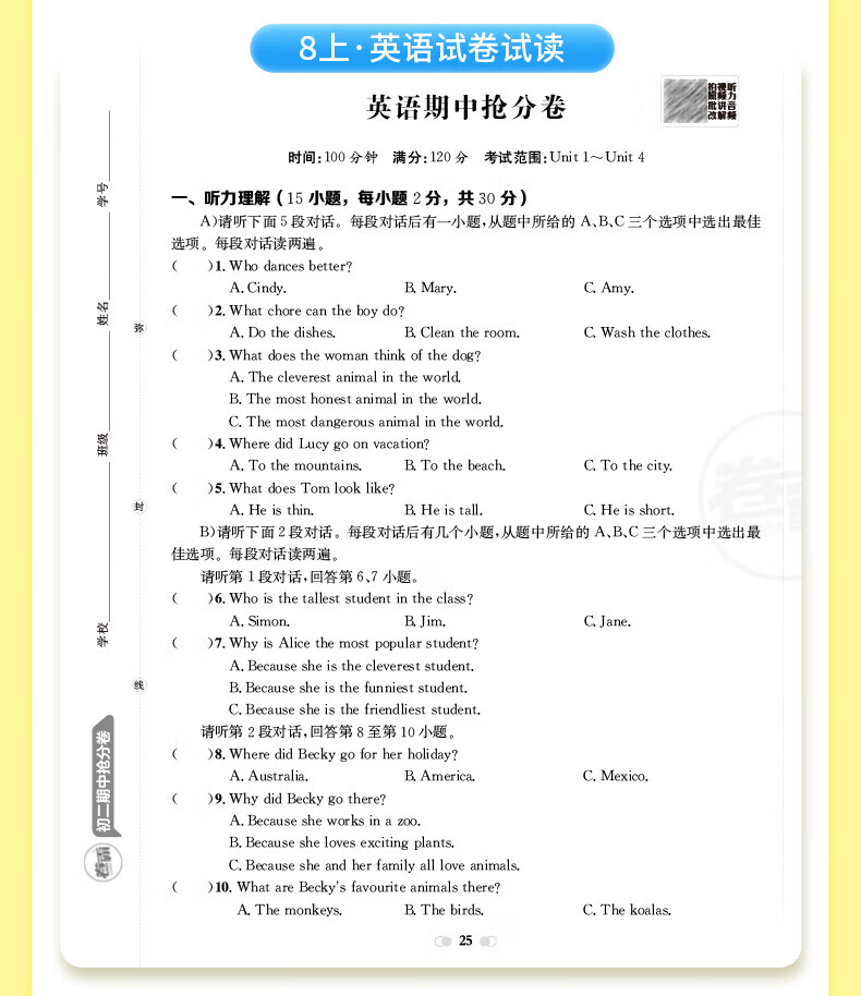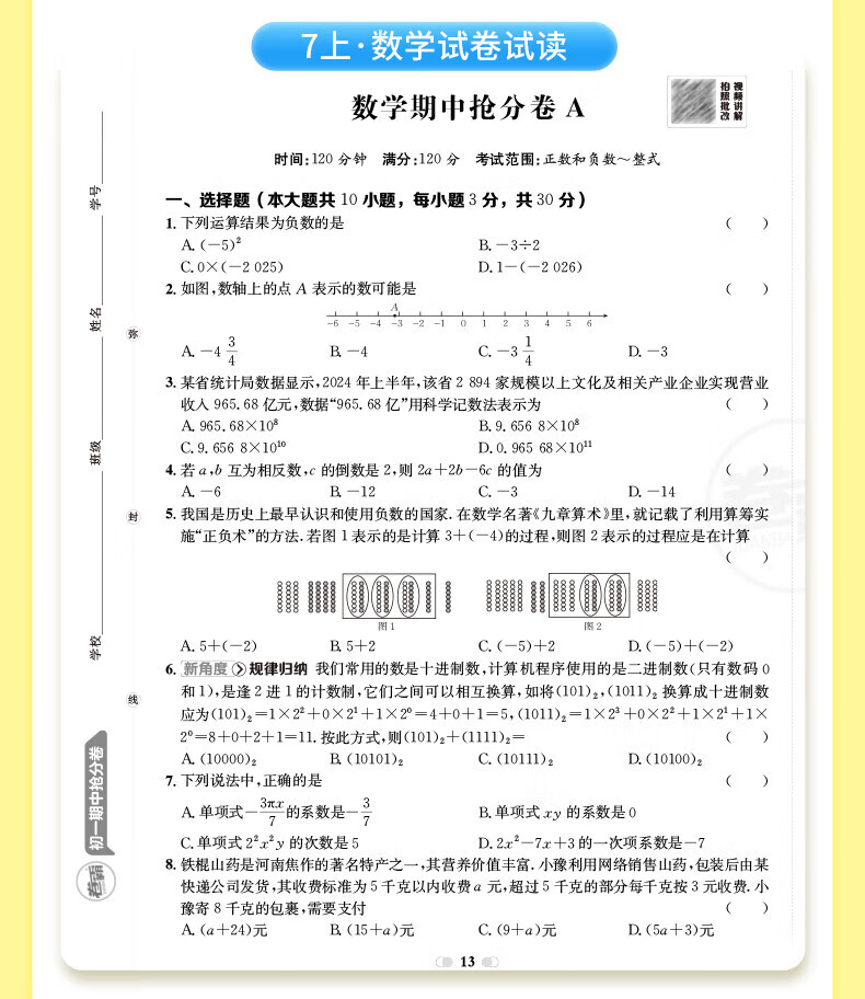 2026卷霸初中期中抢分卷初一初二初三语文数学英语生物历史地理道德与法治七八九年级总复习期末冲刺测试卷人教版练习题期中抢分卷 【七年级上册】语数英政史地生(7科套装)