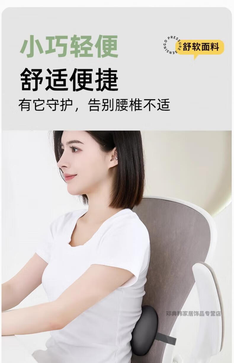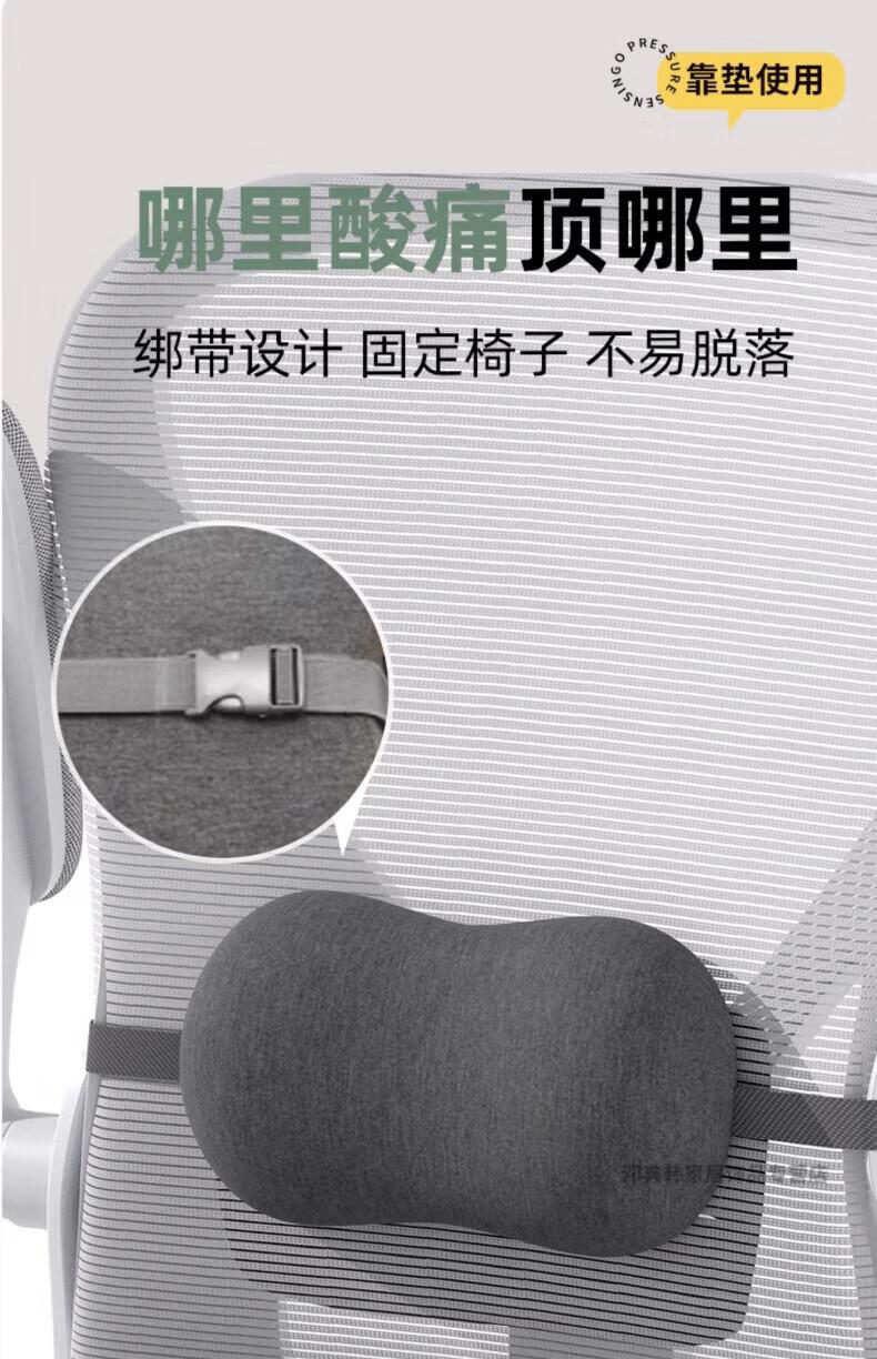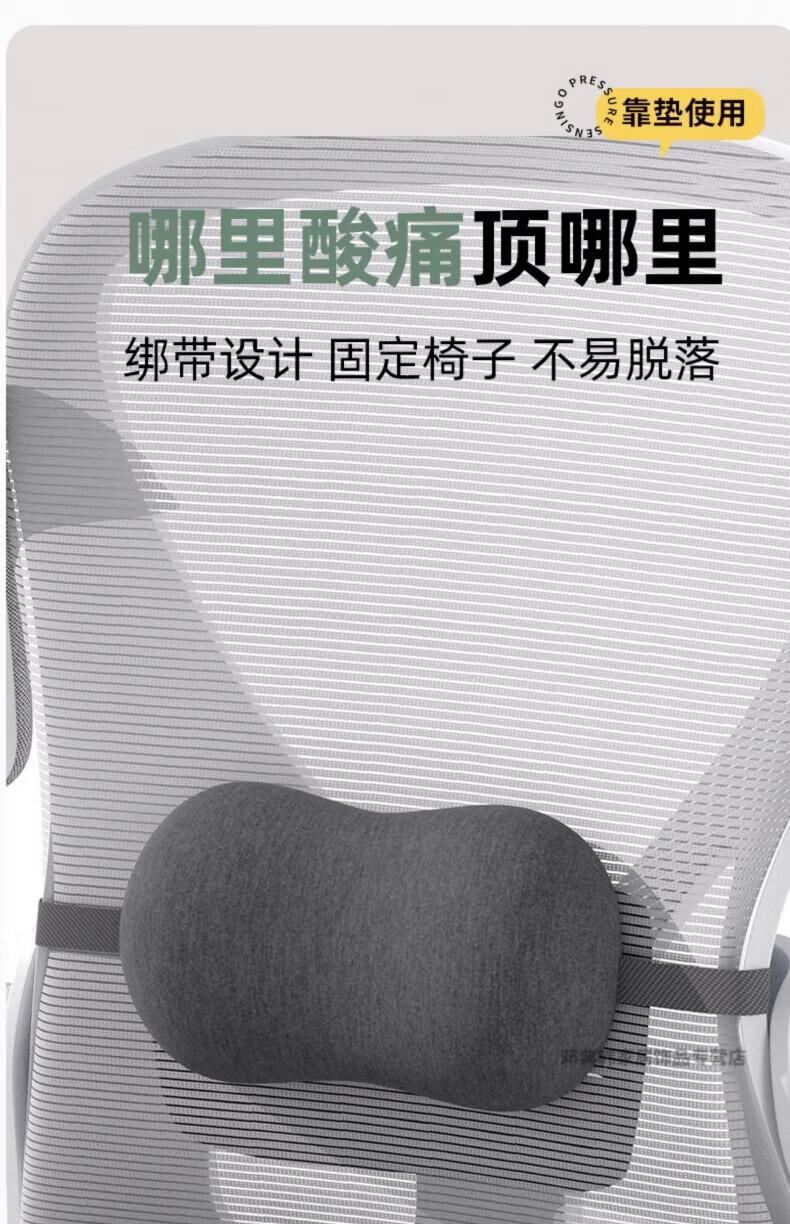 DEATKN德国腰枕办公椅护腰靠背垫腰靠靠垫座椅腰部支撑睡觉工位久坐神器 【舒适款-有绑带】深灰色腰突专用_靠垫 靠垫_午睡枕__枕头_腰枕_汽车头枕多功能使用
