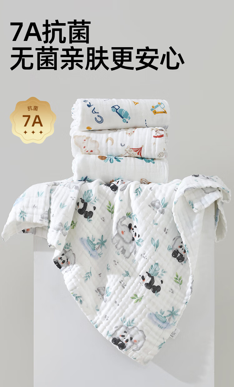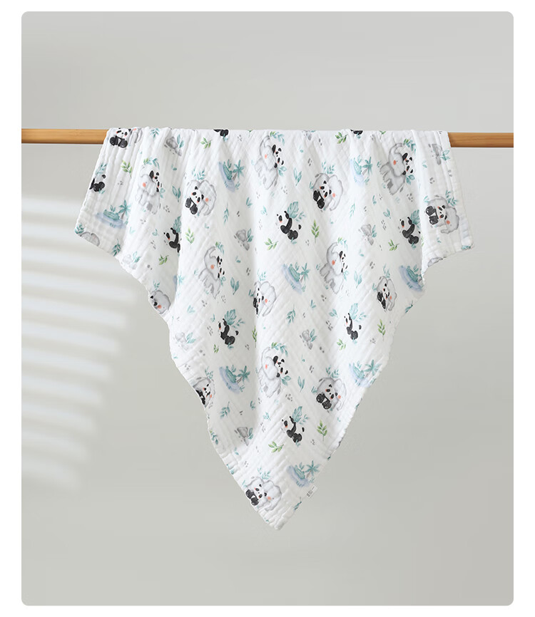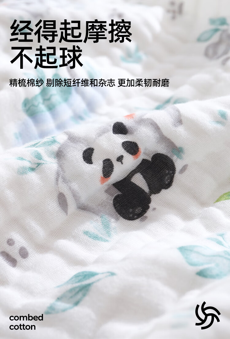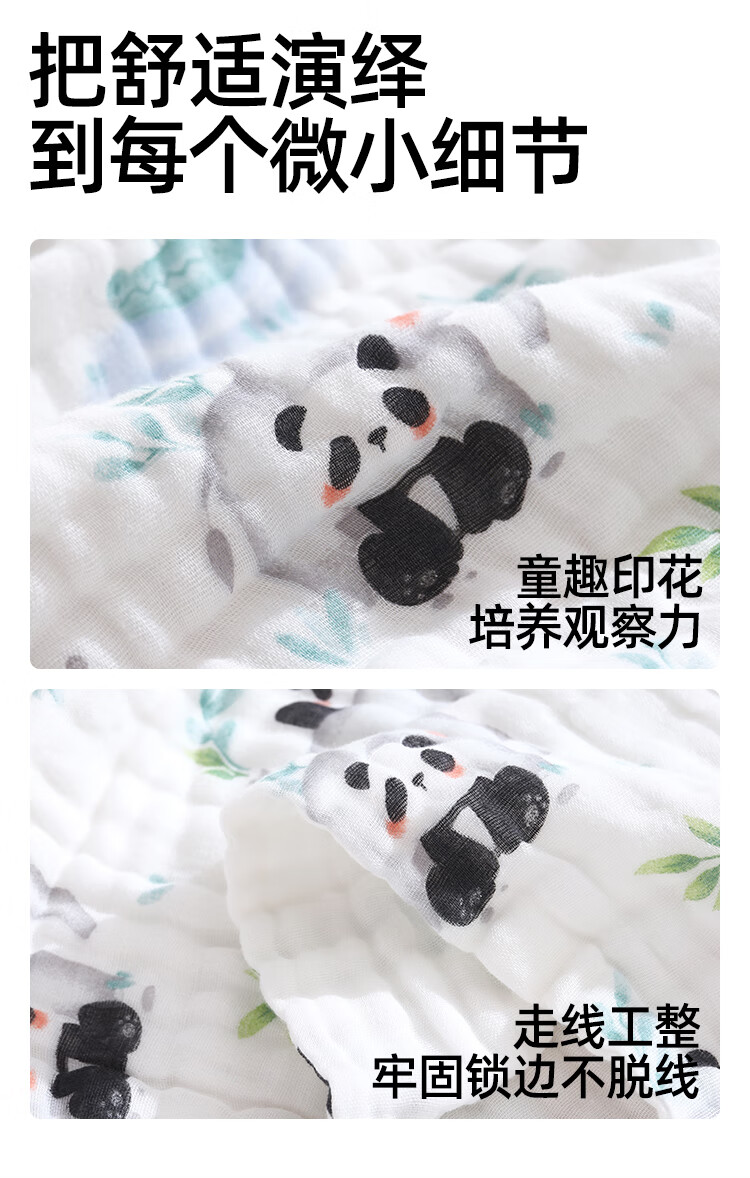 婧麒(JOYNCLEON)纱布浴巾婴儿7A抗菌宝宝新生儿童纯棉六层高密加厚洗澡包裹巾四季 熊猫乐园【六层高密 7A抗菌】 100*100cm