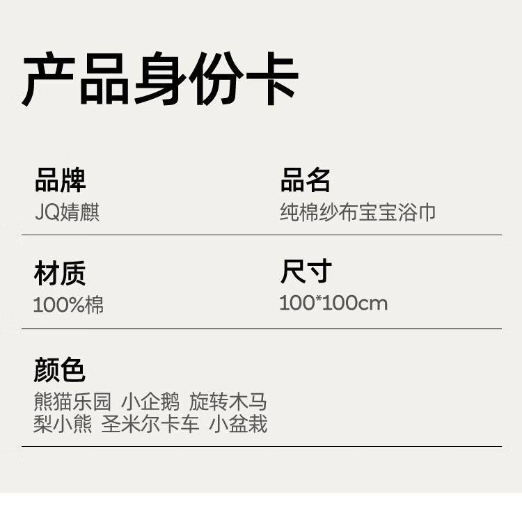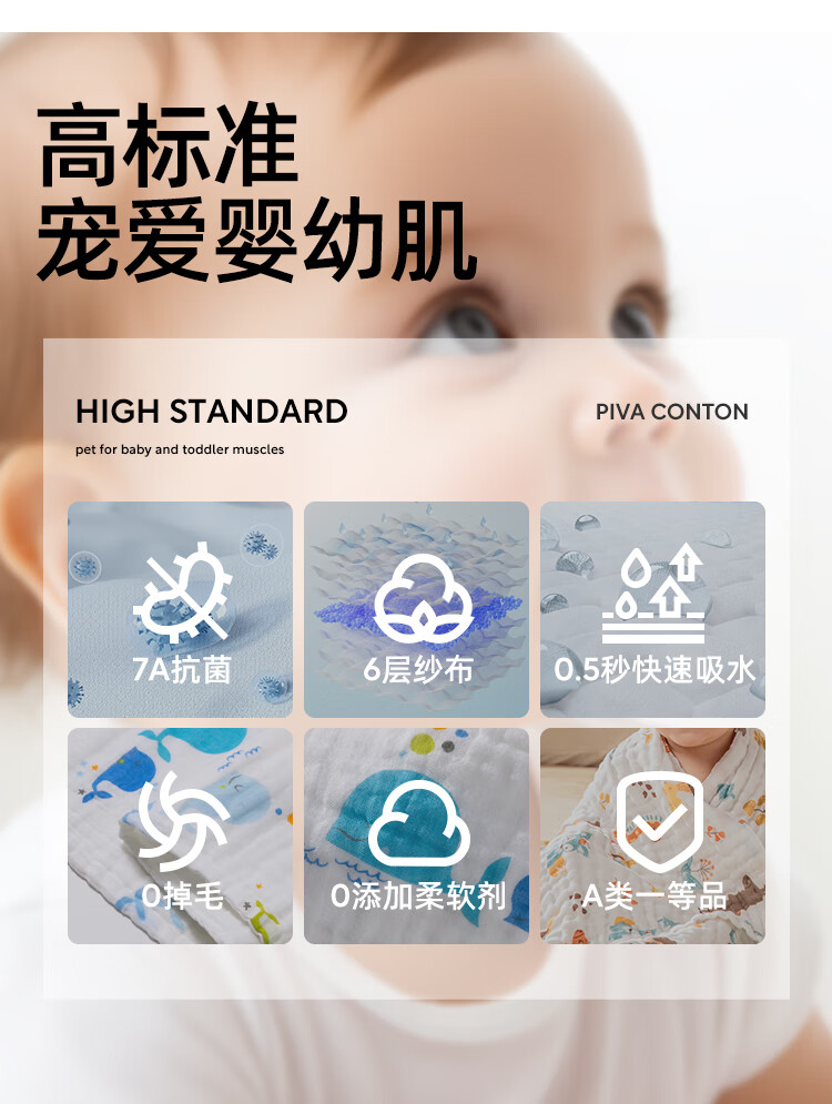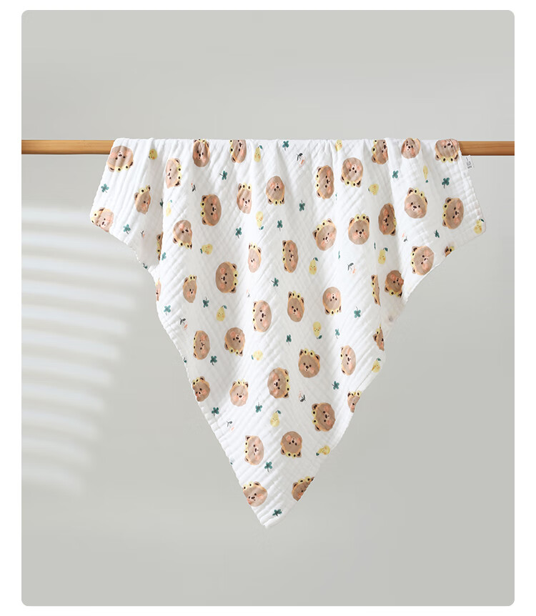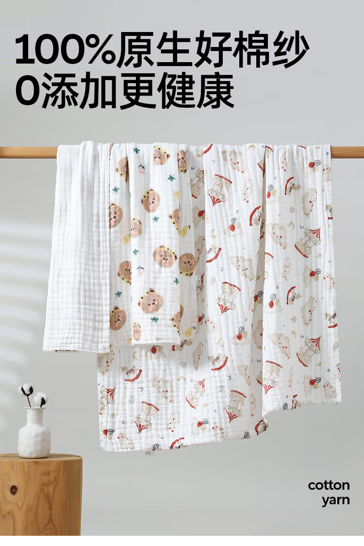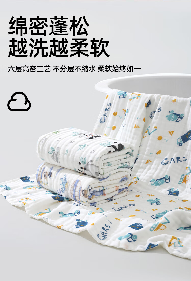 婧麒(JOYNCLEON)纱布浴巾婴儿7A抗菌宝宝新生儿童纯棉六层高密加厚洗澡包裹巾四季 熊猫乐园【六层高密 7A抗菌】 100*100cm