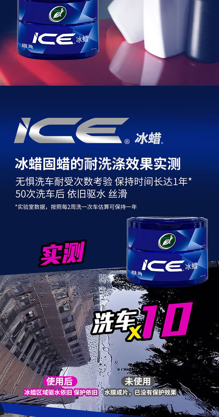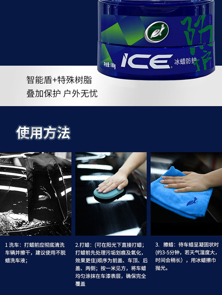 龟牌(Turtle Wax)冰蜡汽车蜡白车黑车蜡新车水晶打蜡保护上光新能源去油膜镀膜划痕 冰蜡固蜡100g【体验装】