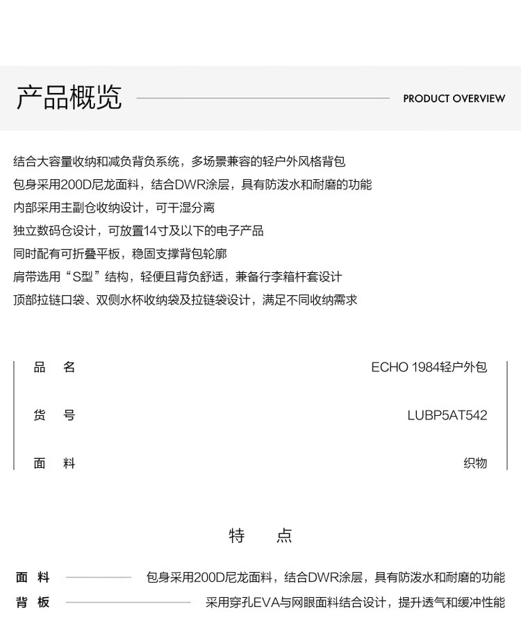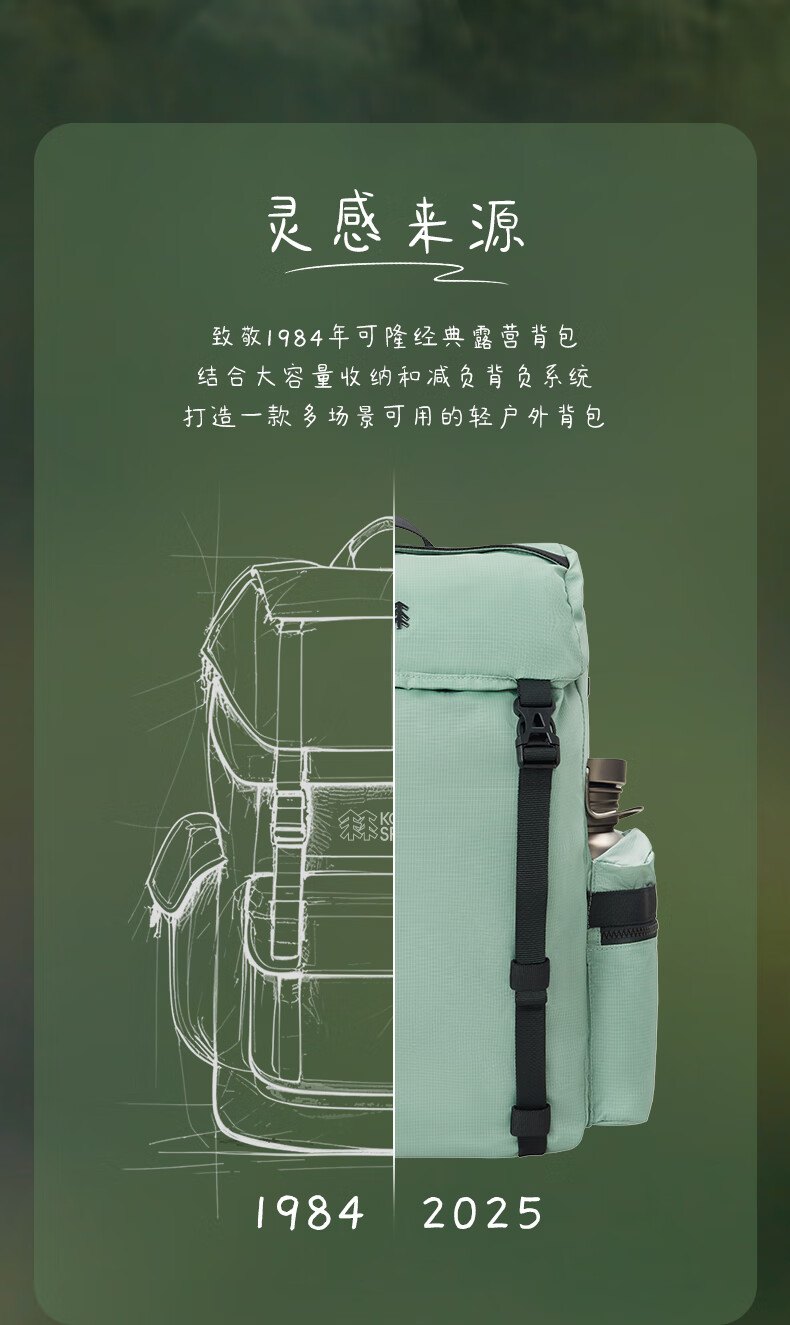 KOLON SPORT可隆轻户外双肩背包 徒步露营通勤防泼水耐磨18L ECHO 1984