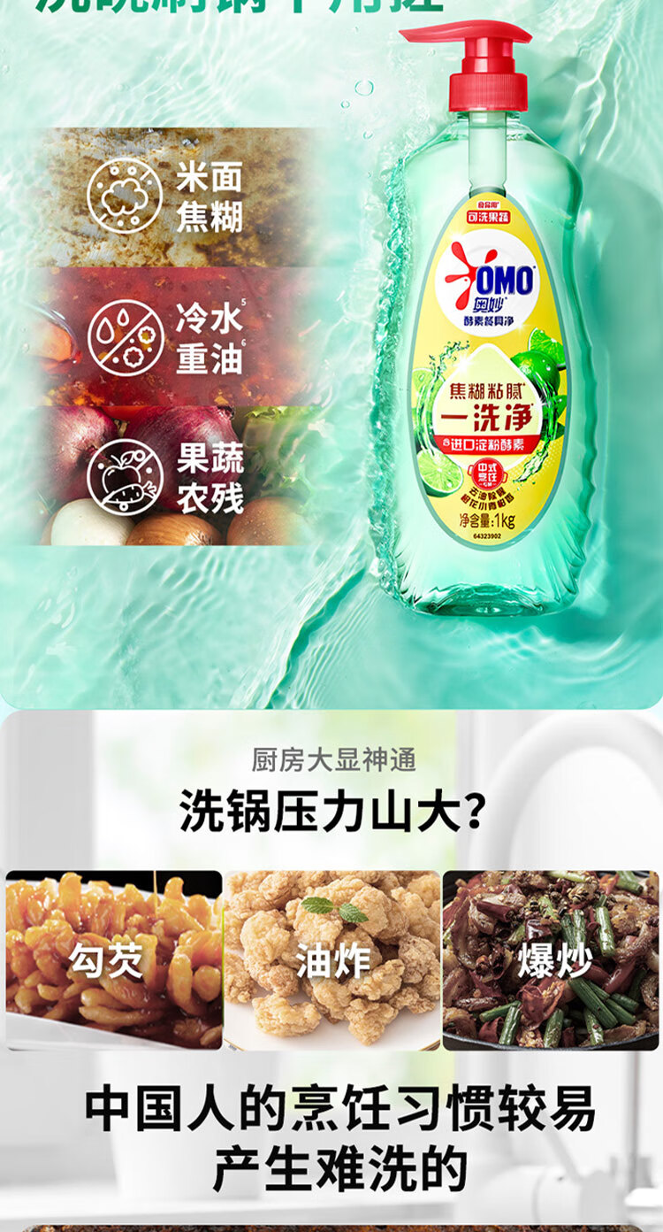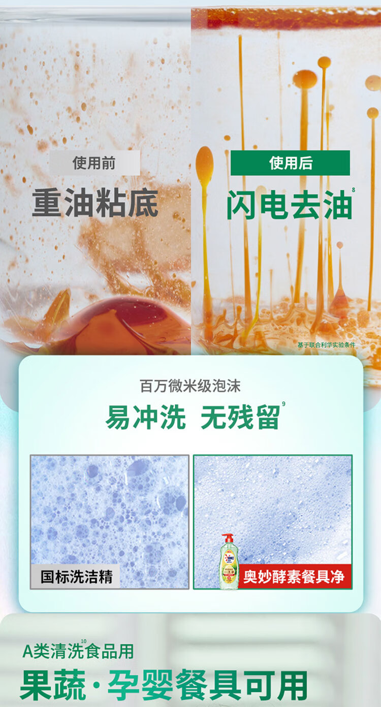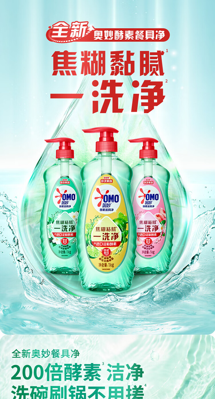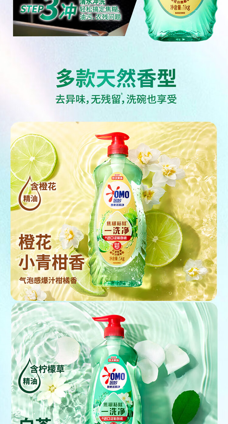 奥妙大桶酵素餐具净洗洁精 橙花小青柑1KG*4+500g*2 6瓶装去锅具焦糊