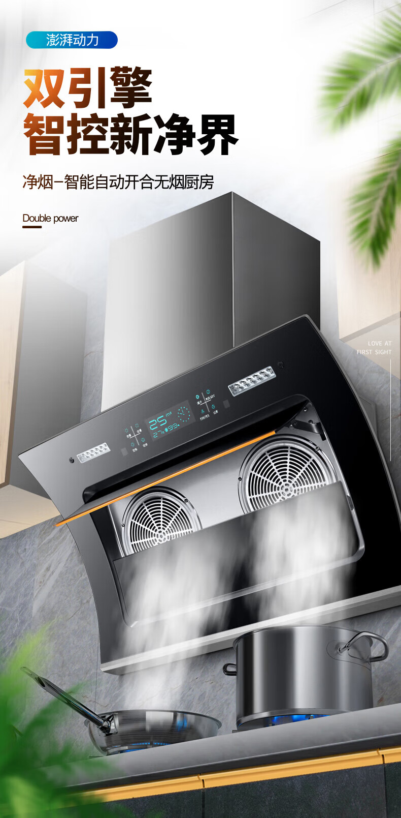 万宝抽油烟机侧吸式油烟机双电机家用厨房大吸力一级能效吸油烟机燃气灶烟灶套装 90cm五键智能体感+自动清洗|上门安装