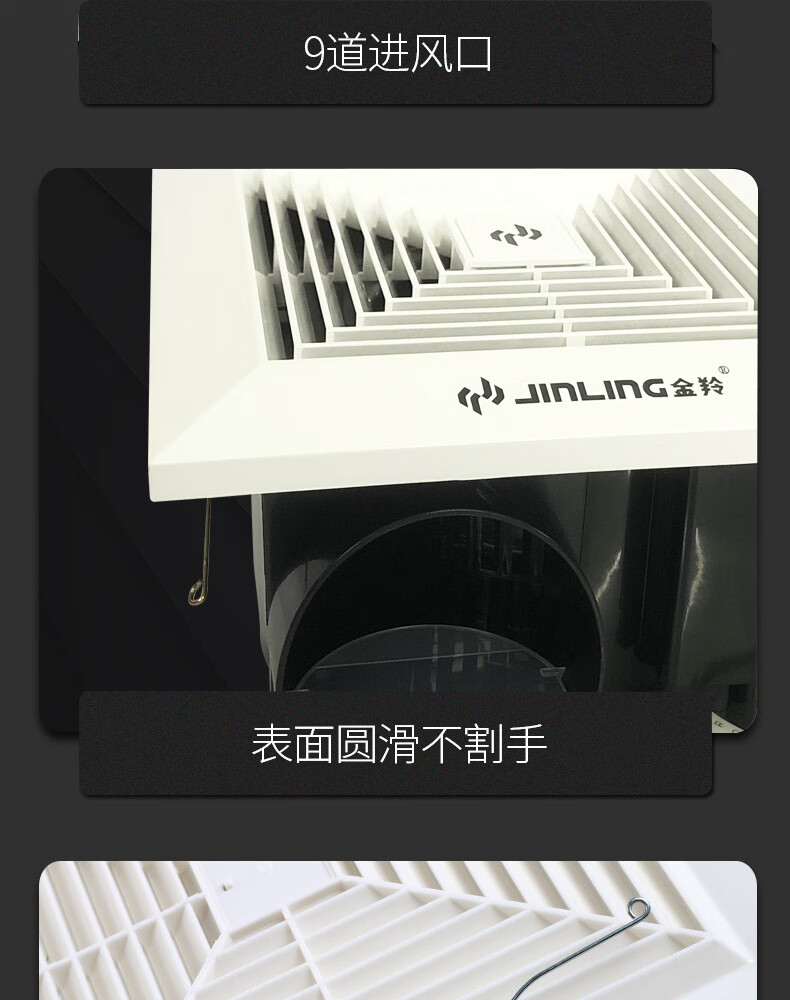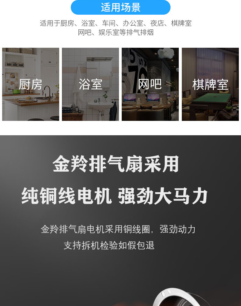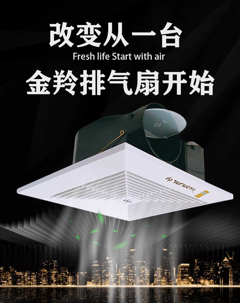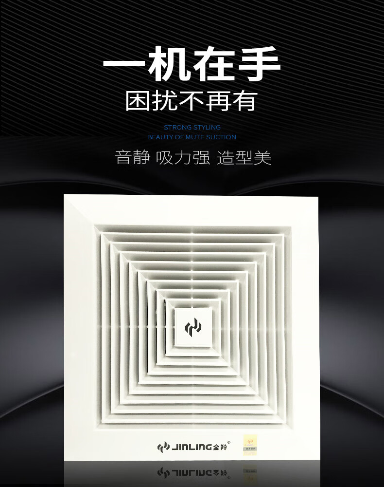 金羚排气扇家用天花管道石膏板吊顶排风扇厨房卫生间薄款风机 8寸超薄机身款200*200mm