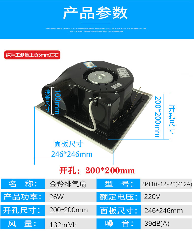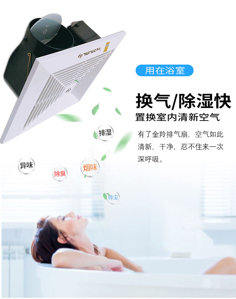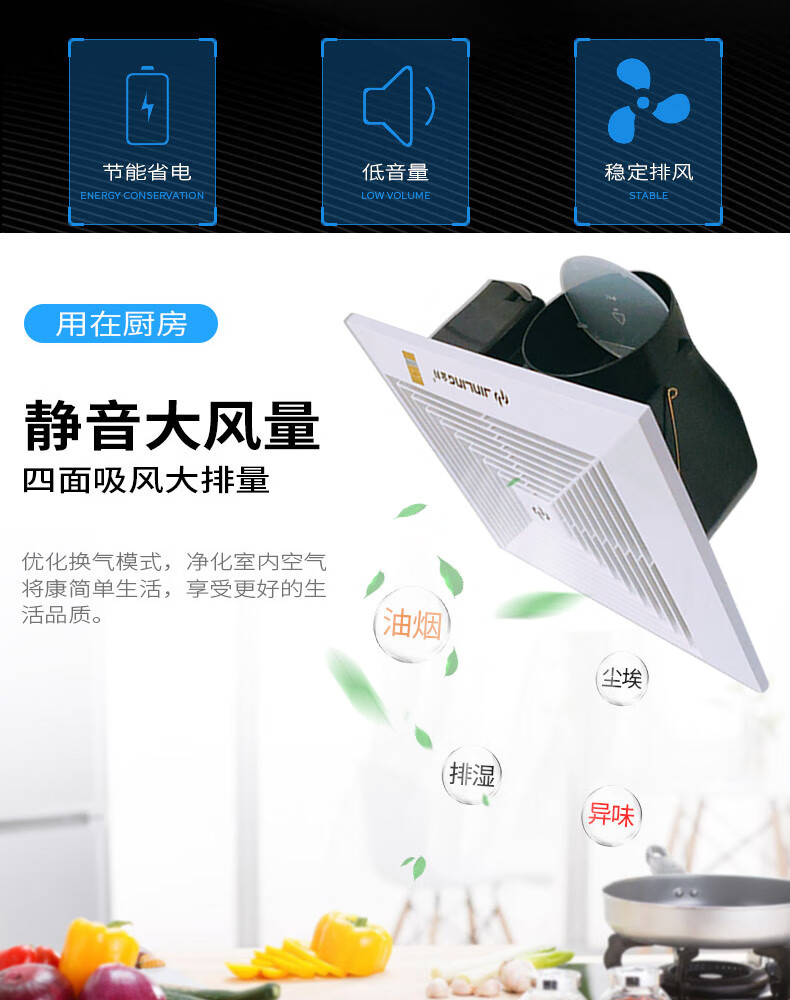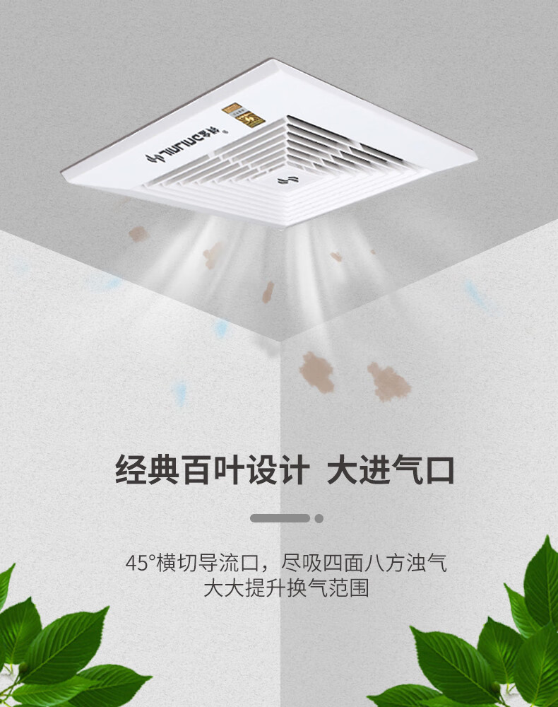 金羚排气扇家用天花管道石膏板吊顶排风扇厨房卫生间薄款风机 8寸超薄机身款200*200mm
