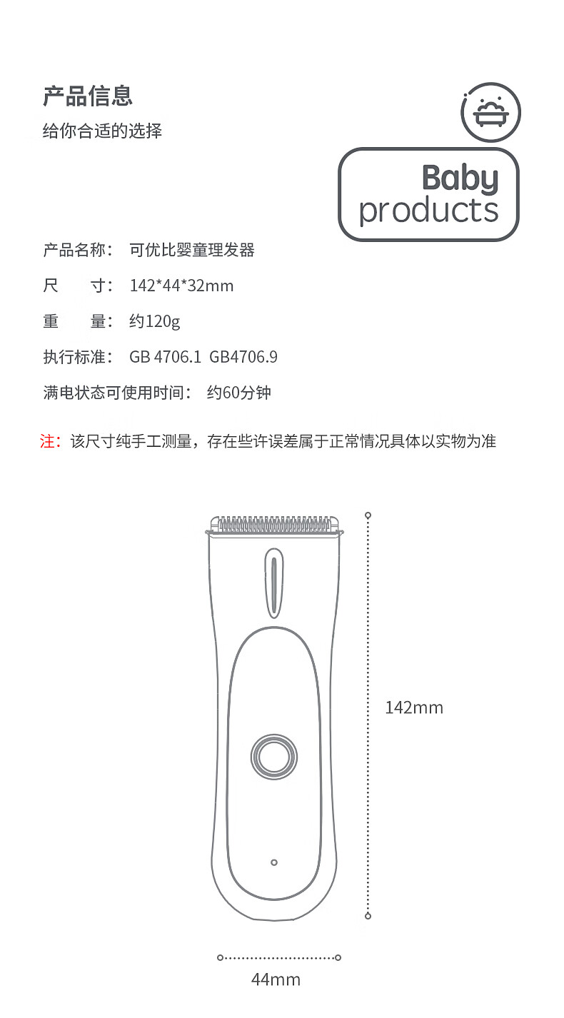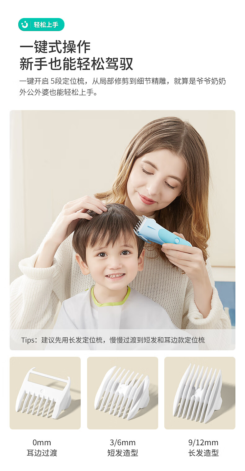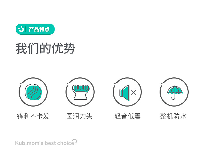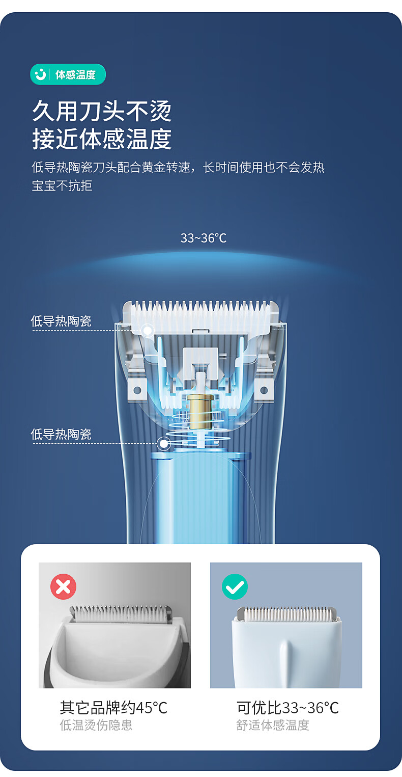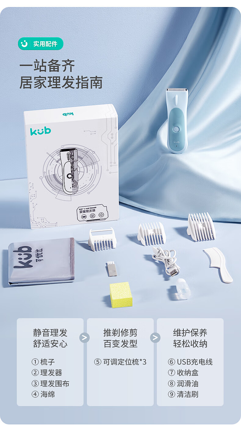 可优比(KUB)婴儿理发器防水宝宝剃头电推子剃发剃胎毛儿童剃发 尼罗蓝