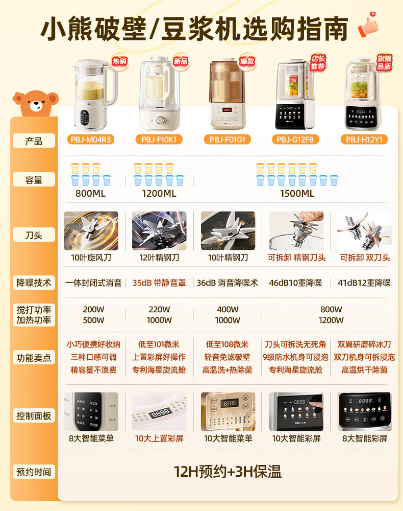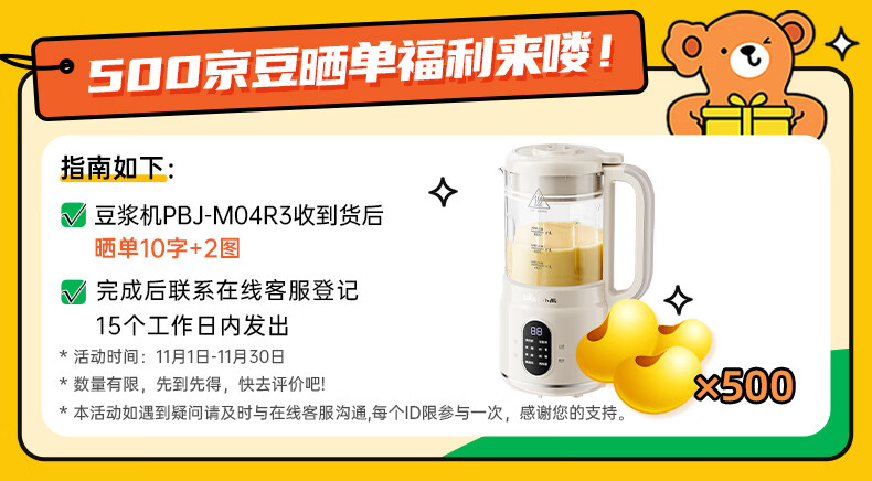 小熊(Bear)破壁机家用小型豆浆机迷你0.8L低音降噪榨汁机料理机多功能全自动免煮新款静音PBJ-M04R3