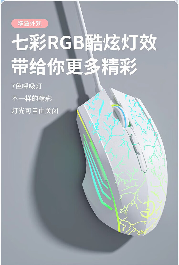 DEATKN德国高端鼠标有线电竞笔记本游戏办公高颜值电脑通用 7键-3200dpi-熏衣紫