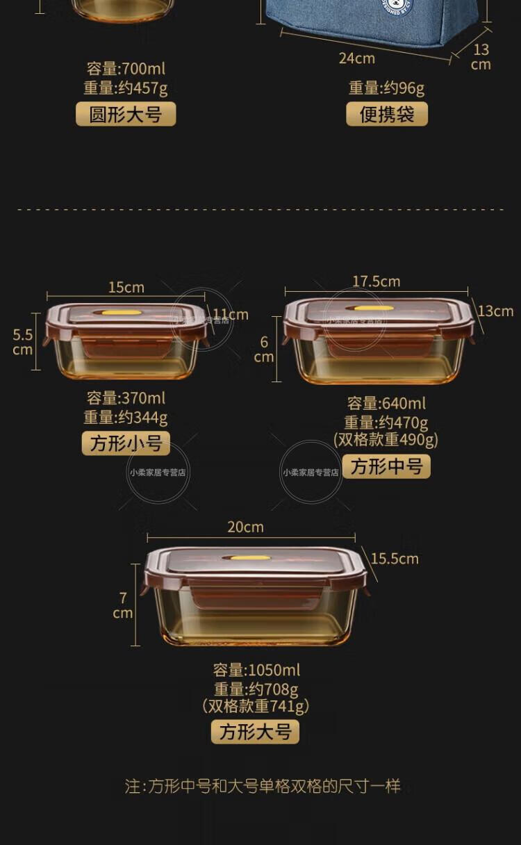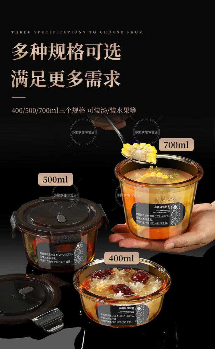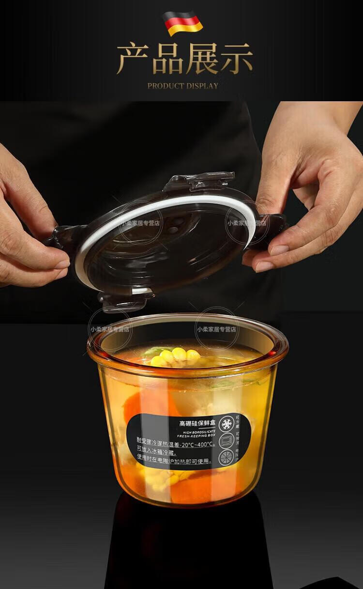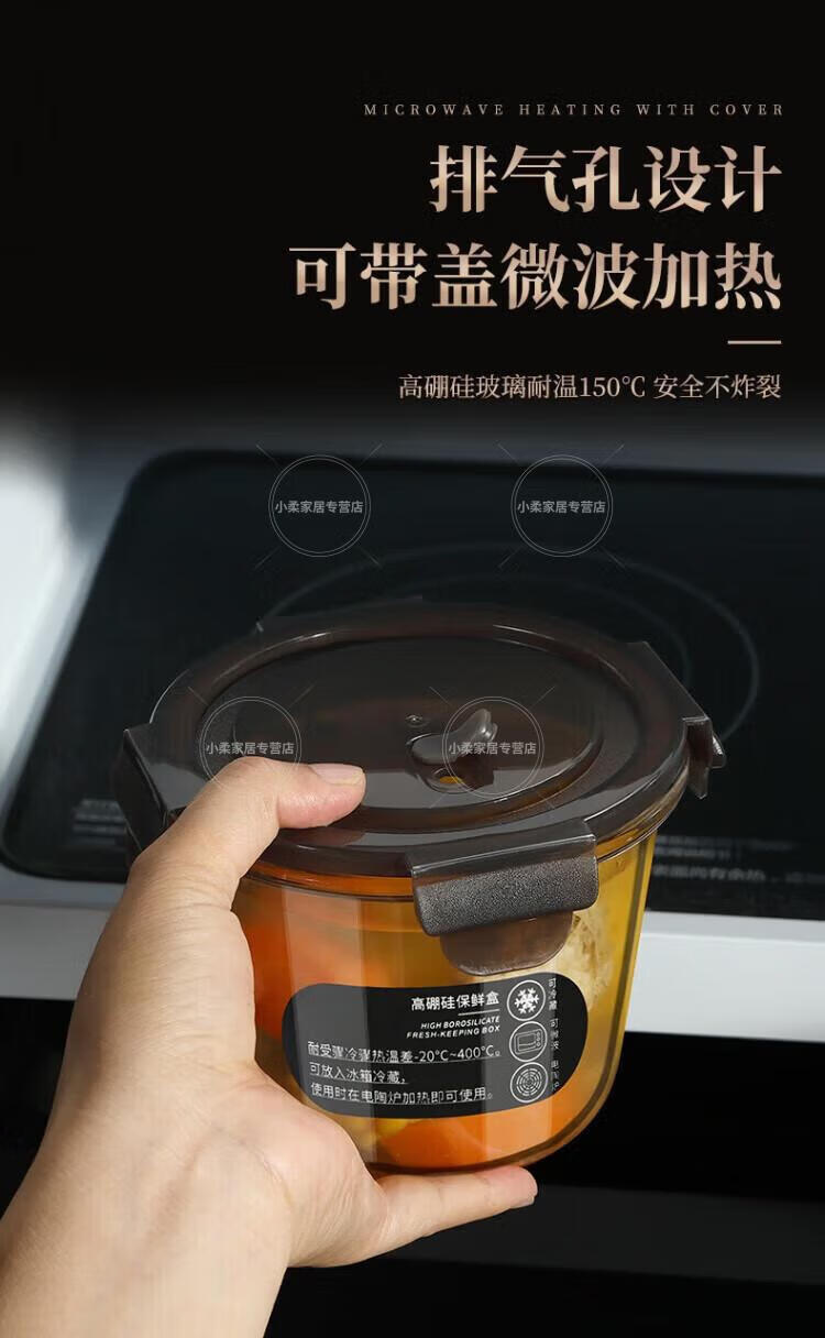 WCZ德国高端玻璃保鲜盒微波炉加热专用饭盒冷冻保鲜碗上班族便当盒 中号2个装 500ml