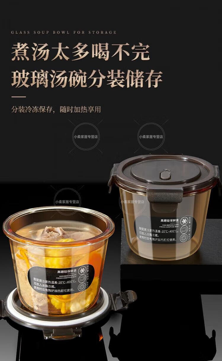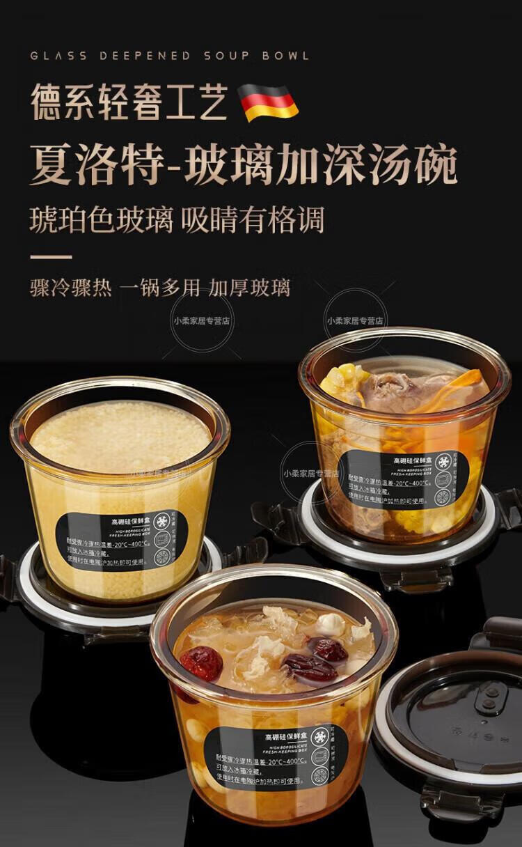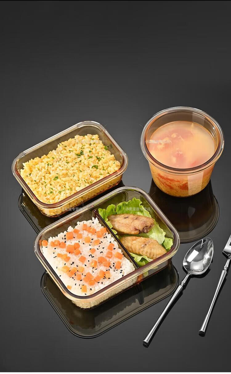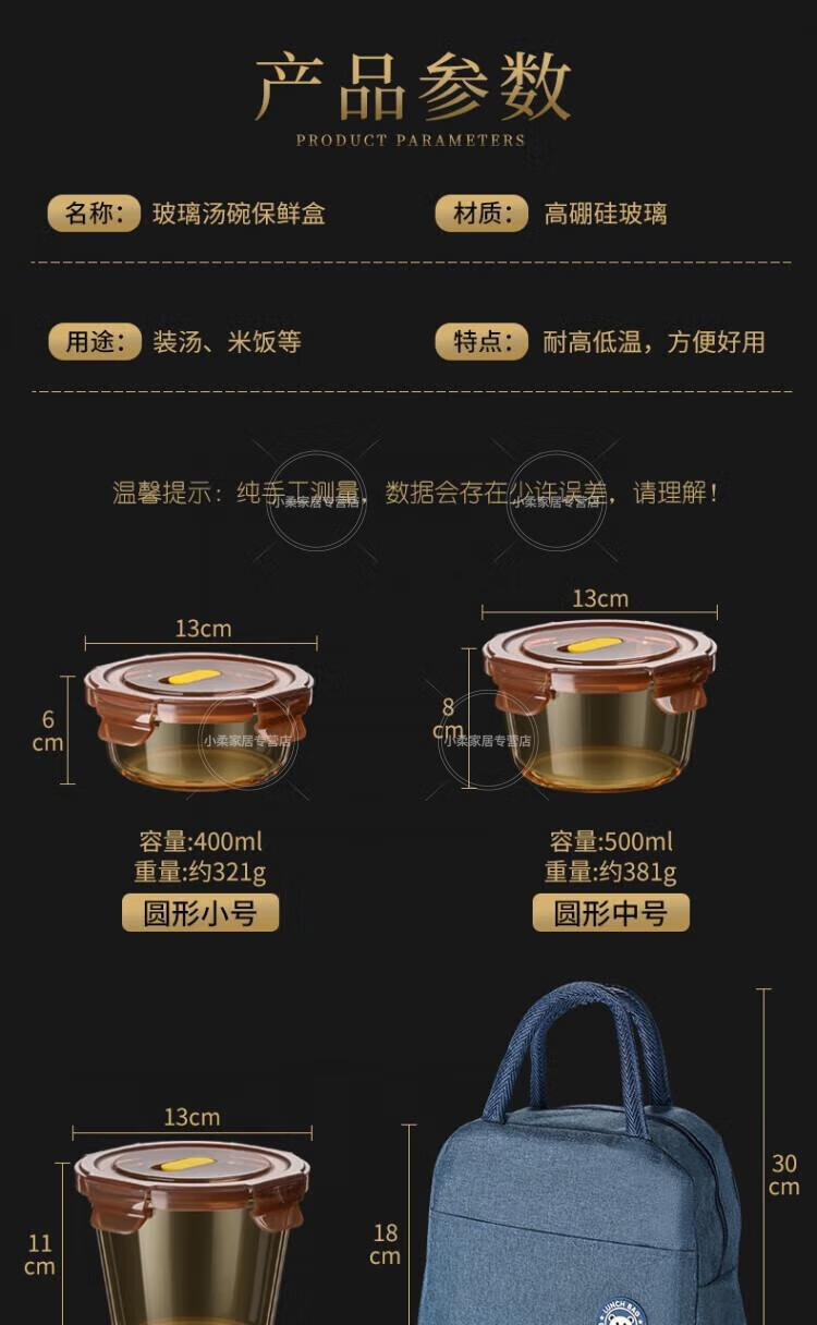 WCZ德国高端玻璃保鲜盒微波炉加热专用饭盒冷冻保鲜碗上班族便当盒 中号2个装 500ml