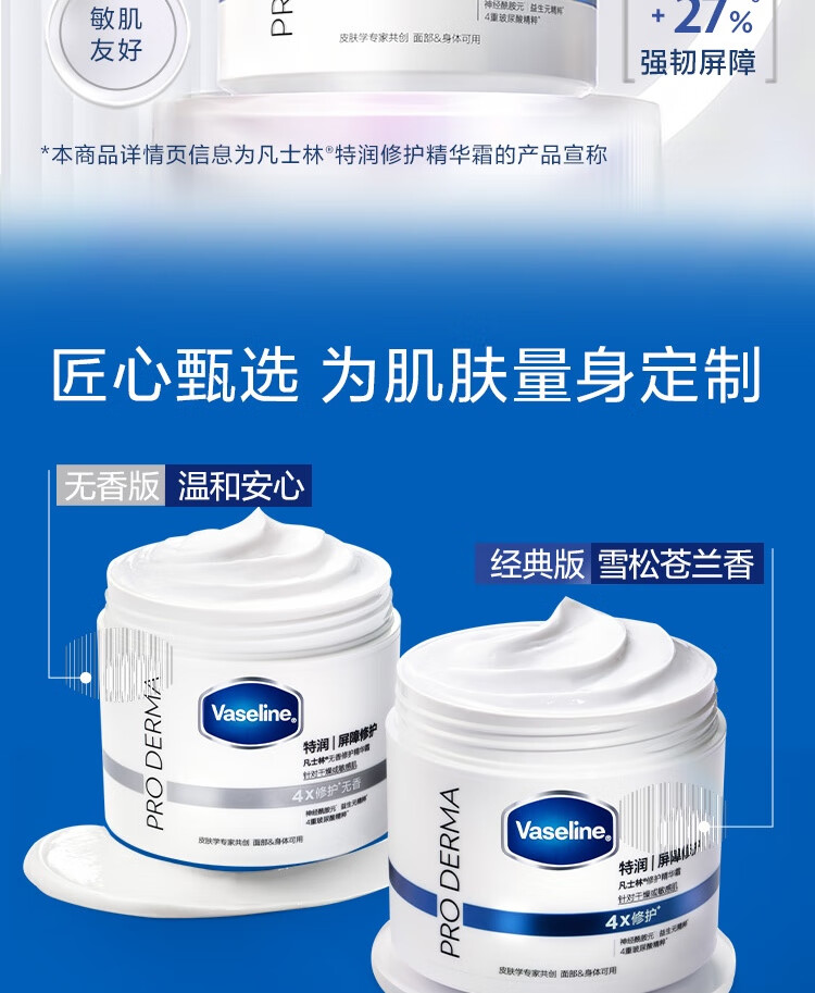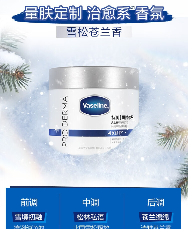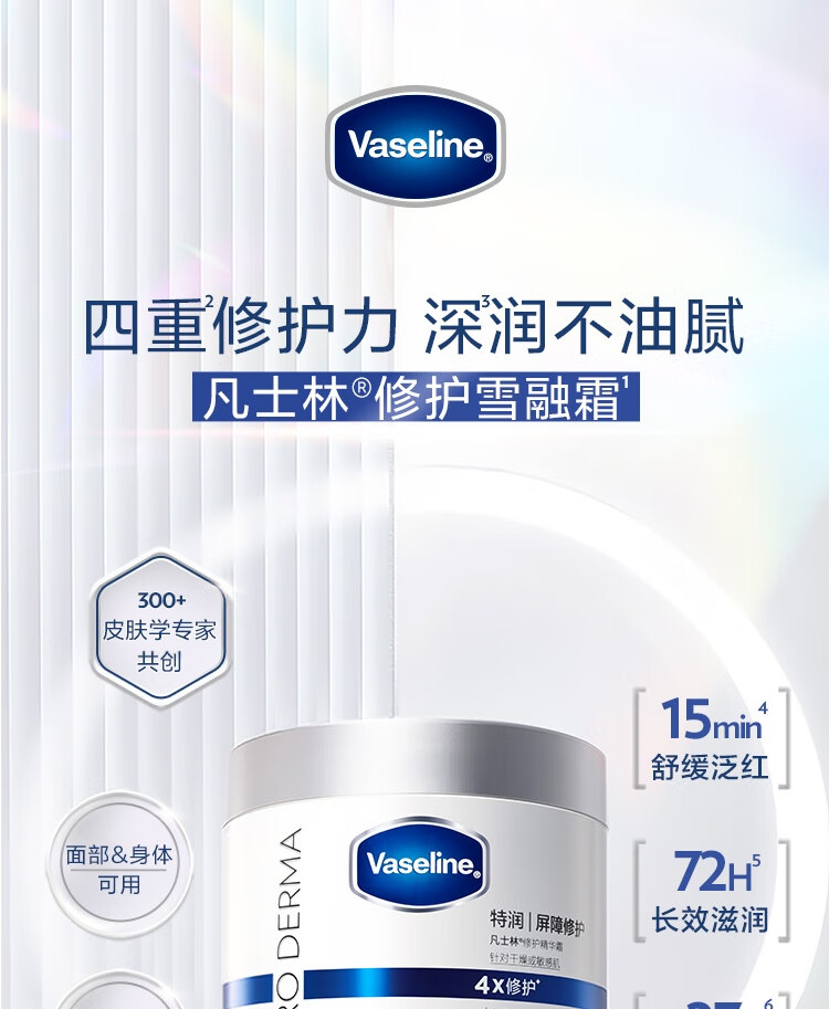 凡士林【章昊同款】雪融霜特润保湿修护身体乳舒缓温和面霜大白罐190g