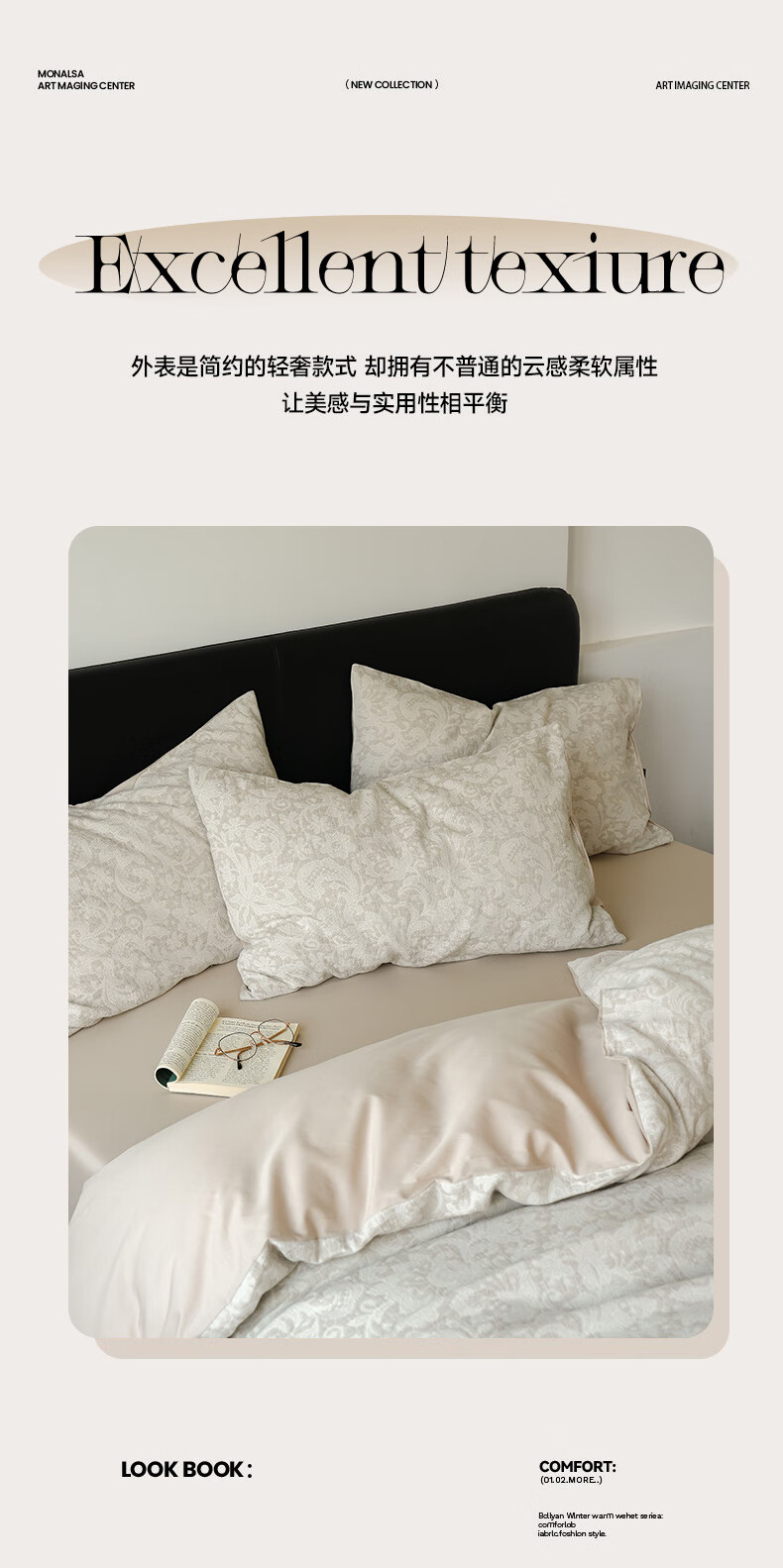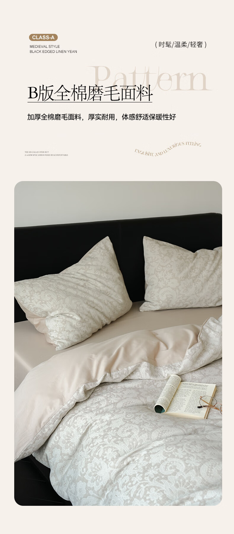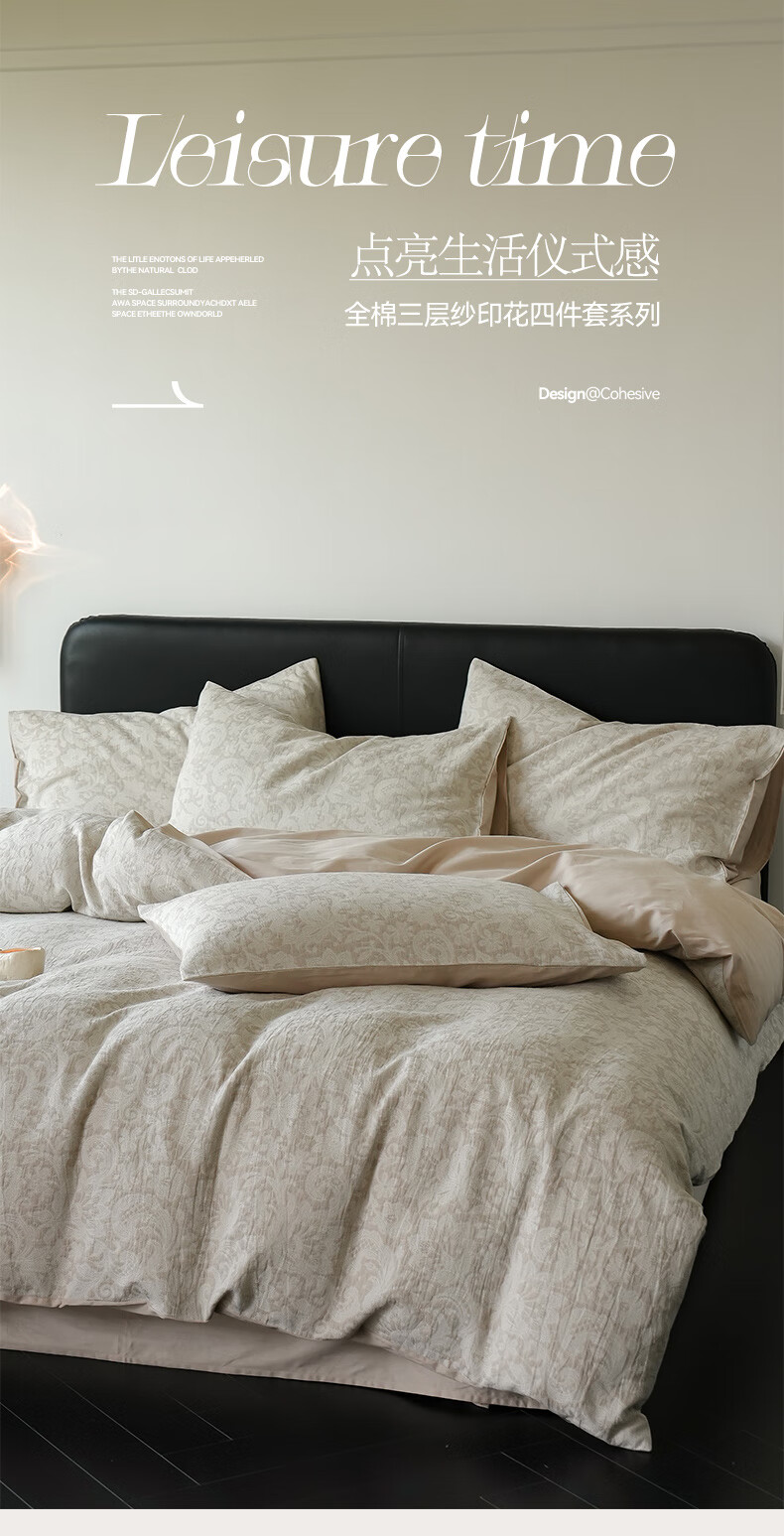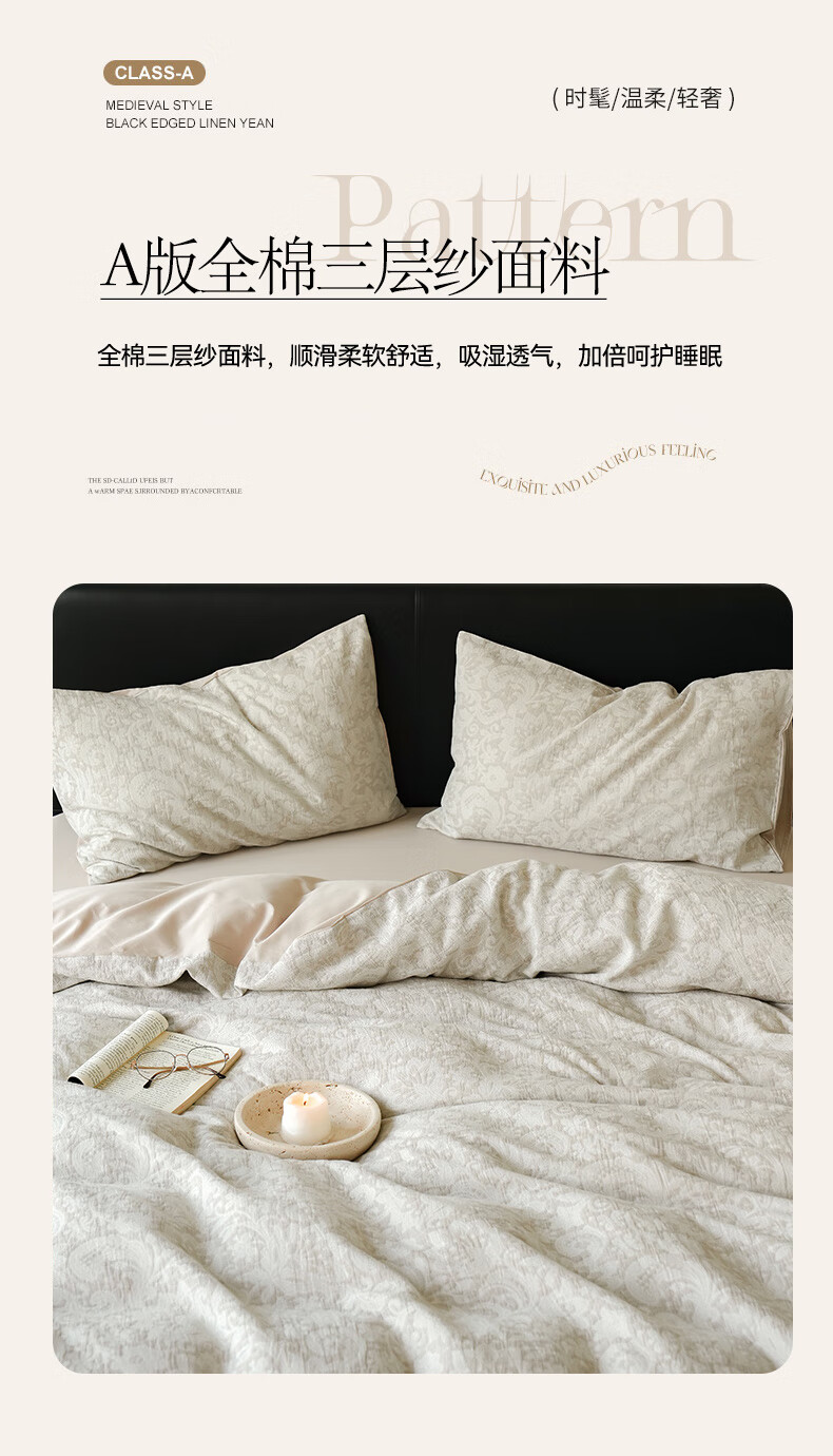 苏萱A类三层纱全棉磨毛床上四件套纯棉2025新款秋冬加厚被套床单床笠4 夏目-米灰 1.8m 床单款 四件套-被套200x230cm